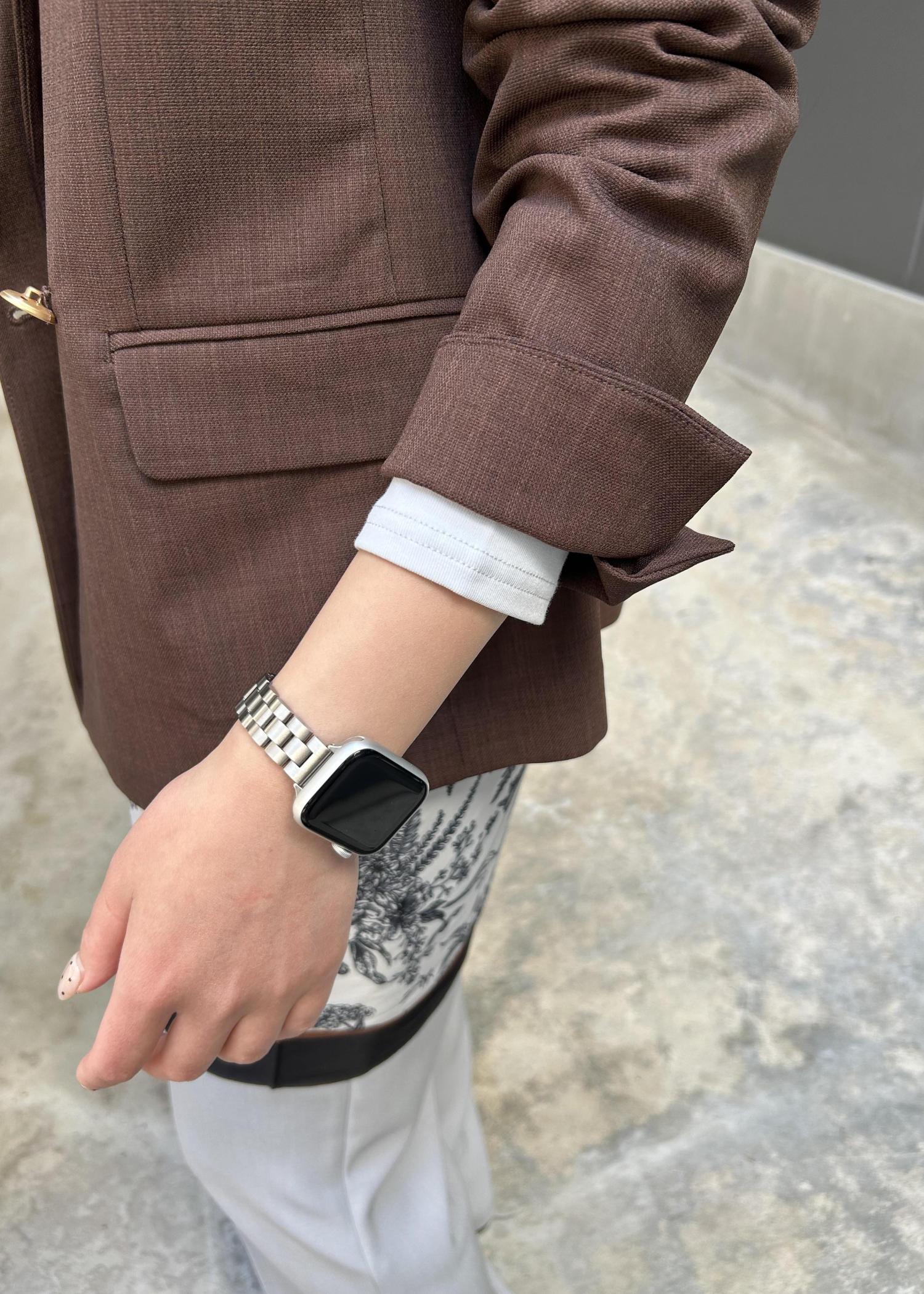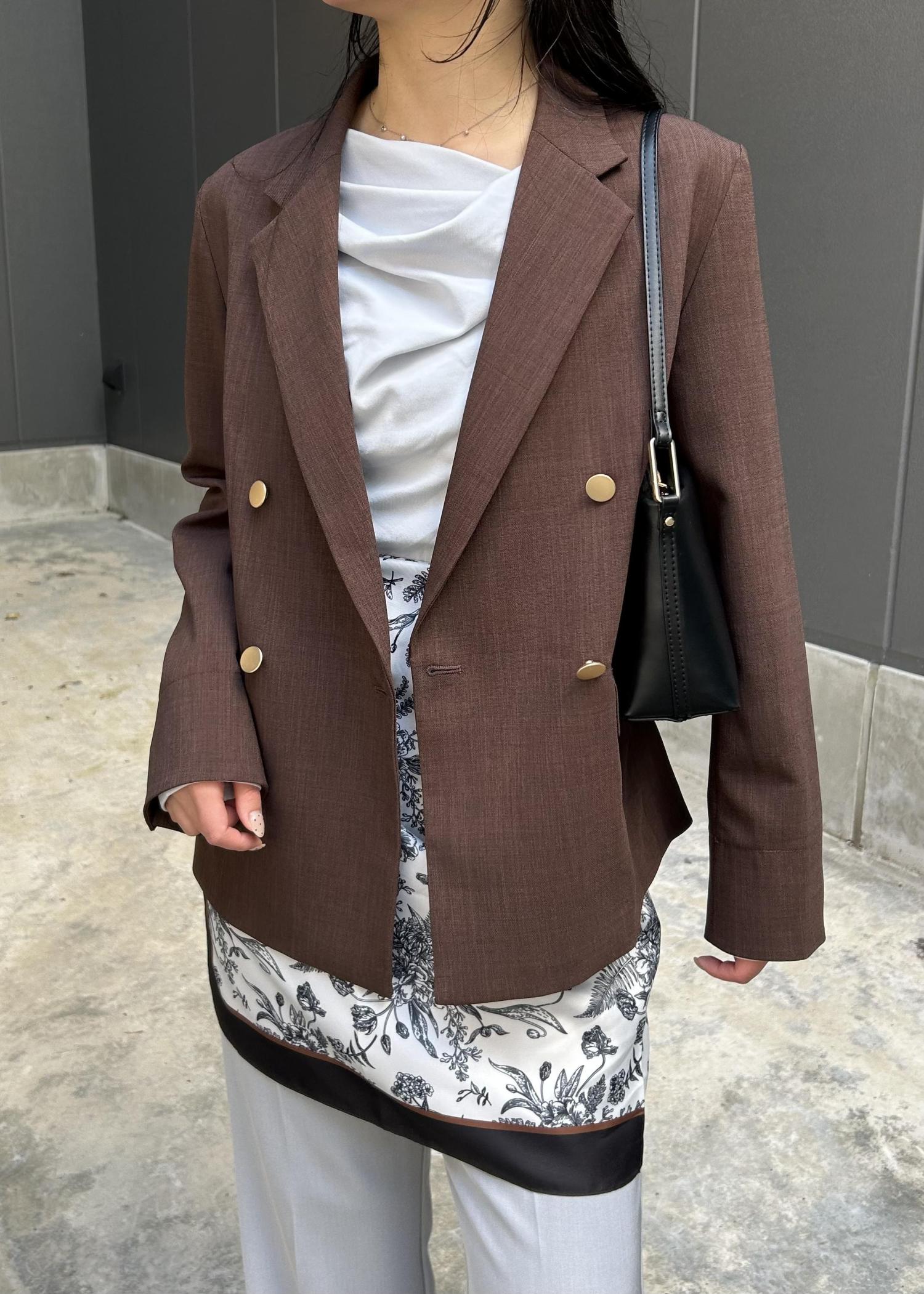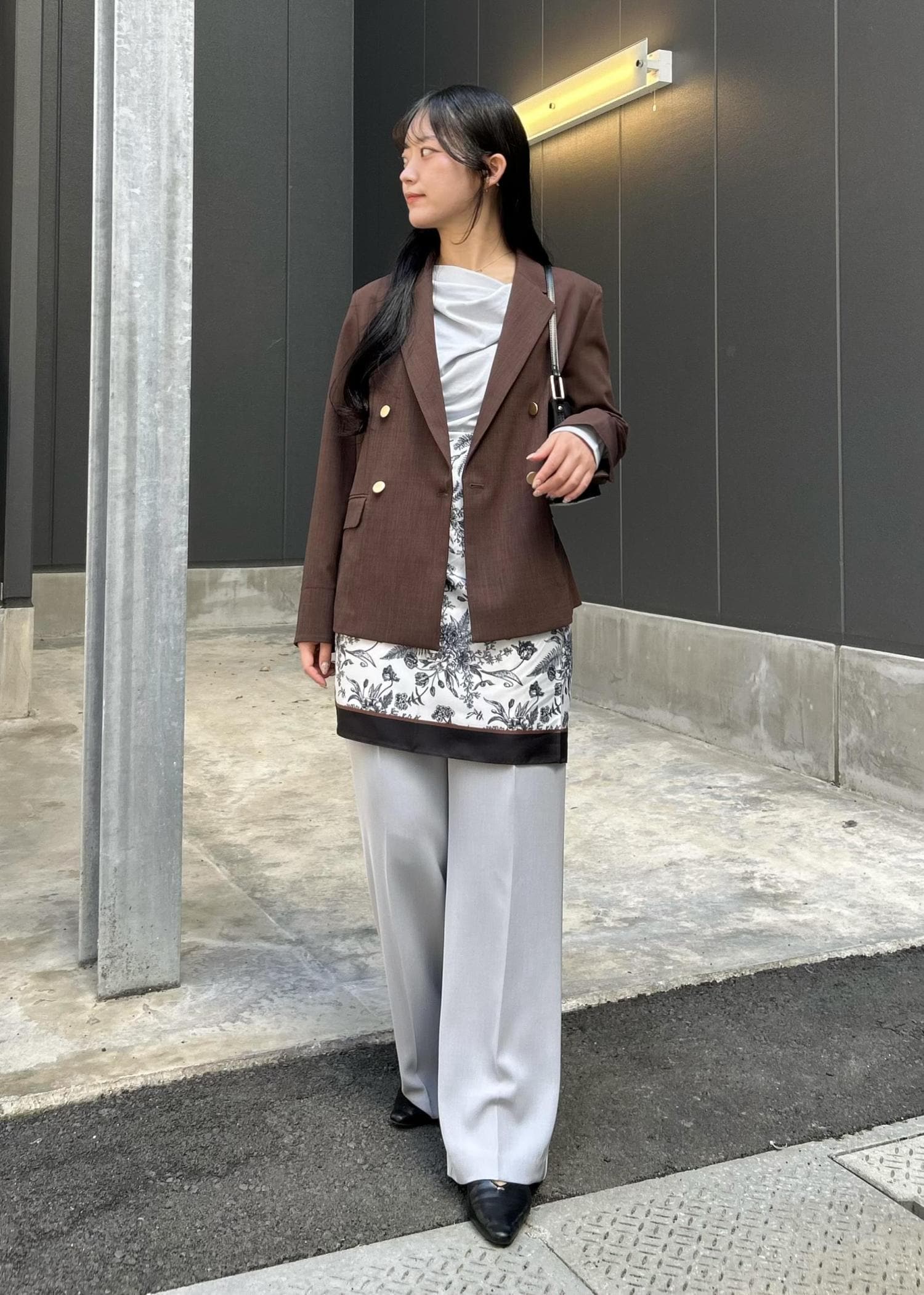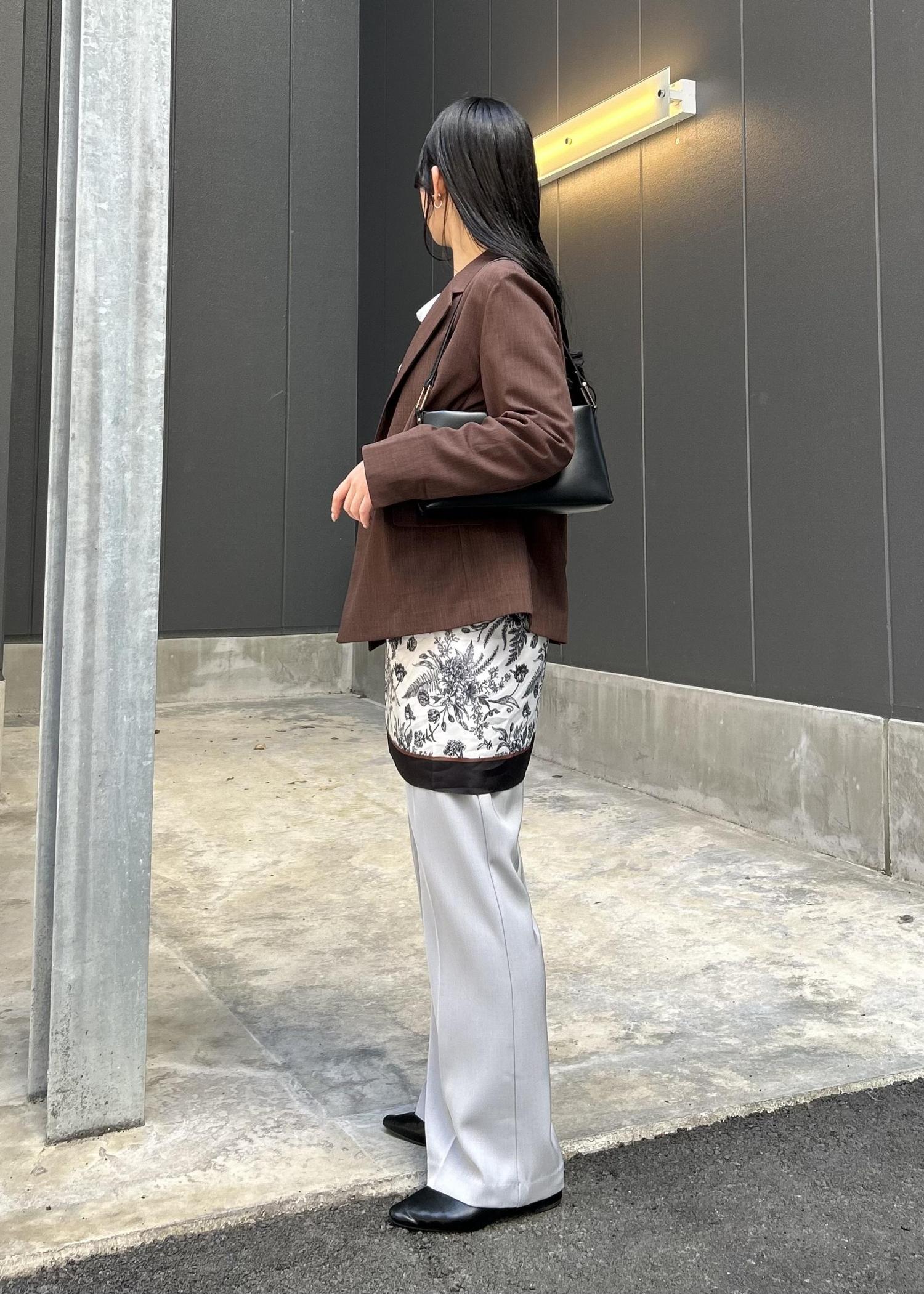そこにブラウンのジャケットを重ねることで一気に締まりが出る感じがしっくりきています。