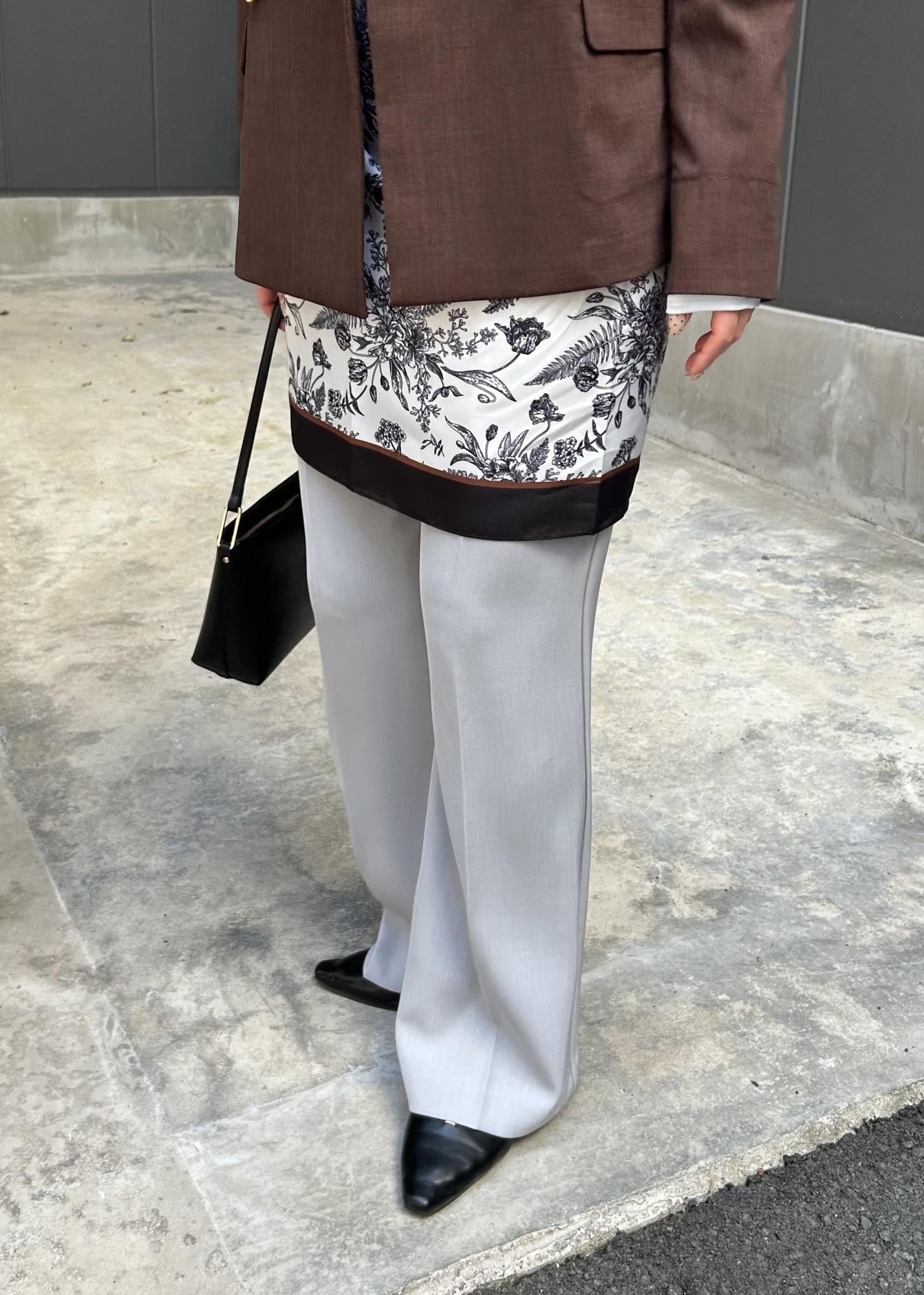 ワイドパンツは落ち感がきれいに出るものを選んでいて、