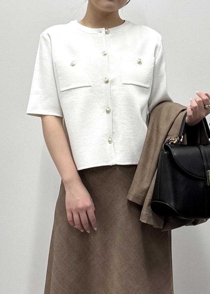 予約ROPÉ PICNICミラノリブ金ボタン半袖カーディガンオフホワイト / F¥5,489レビュー161cm/Fサイズ着用で腰骨上にくるくらいのやや短め丈。柔らかくサラッとした肌あたりで着心地のよいサマーニットです。