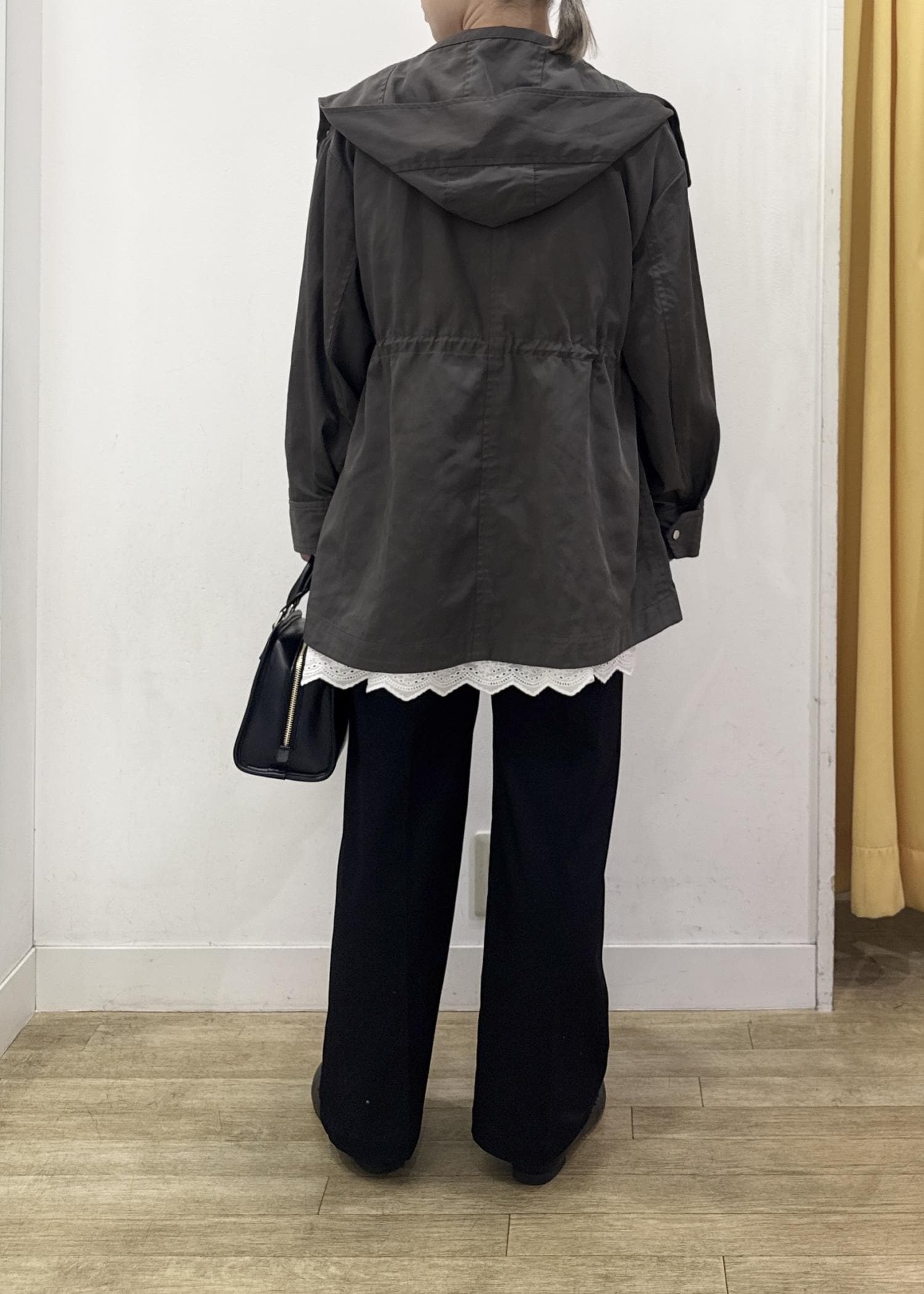 2BUY10%OFFROPÉ PICNICミドル丈マウンテンパーカー スプリングコート/花粉ガード・撥水チャコール / F¥11,880レビューゆったりオーバーシルエットのミドル丈マウンテンパーカーは、ヒップが隠れる着丈で安心感◎
