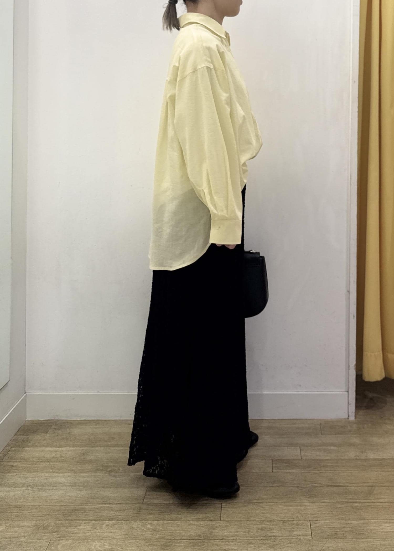 透け感のある少し薄手の素材感なのでインナー合わせは必須!