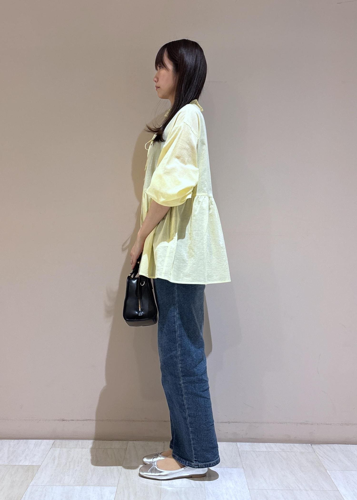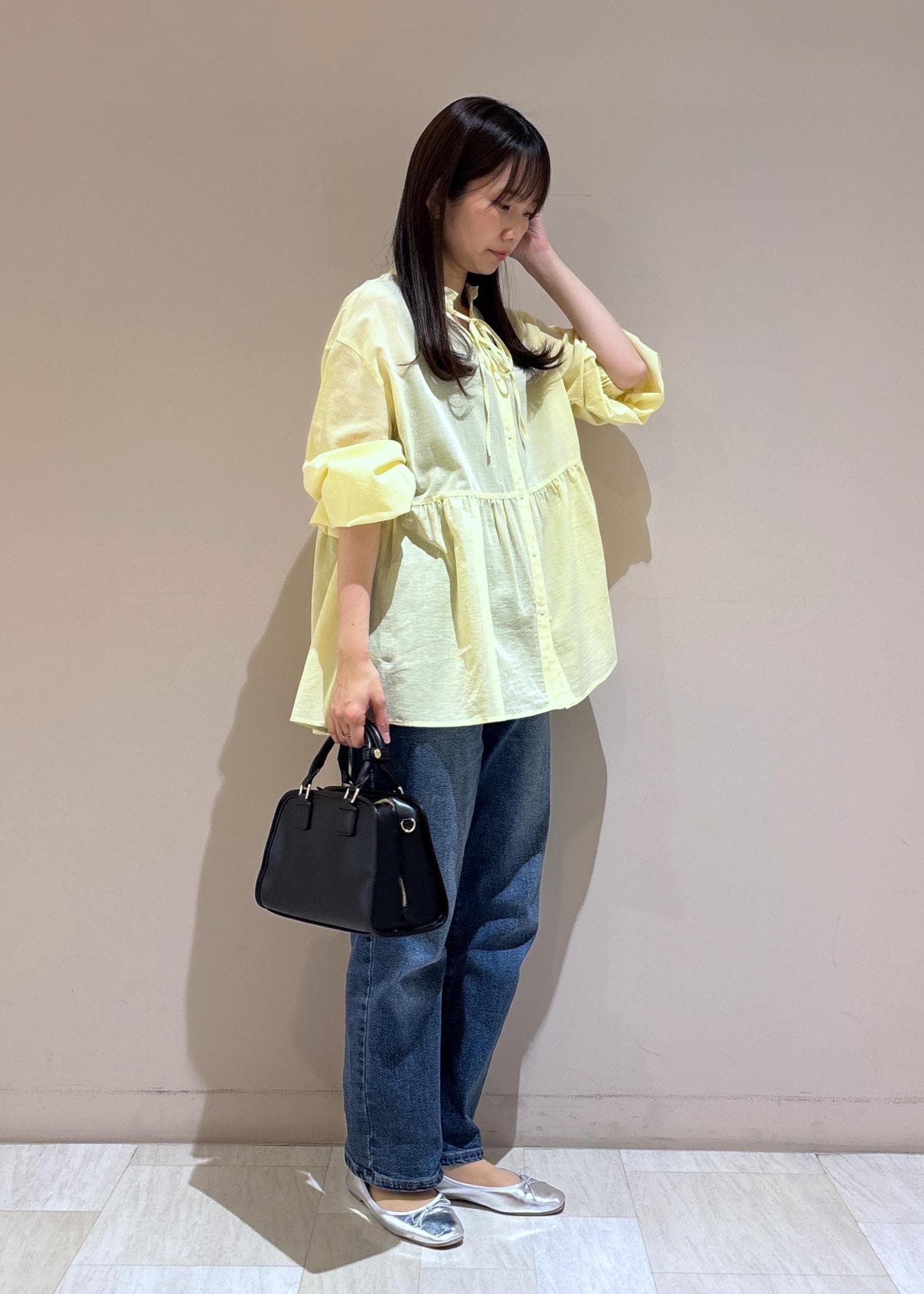 ゆったりしたシルエットなので袖口をたくし上げ手首を見せてすっきりさせるのがオススメ。 -