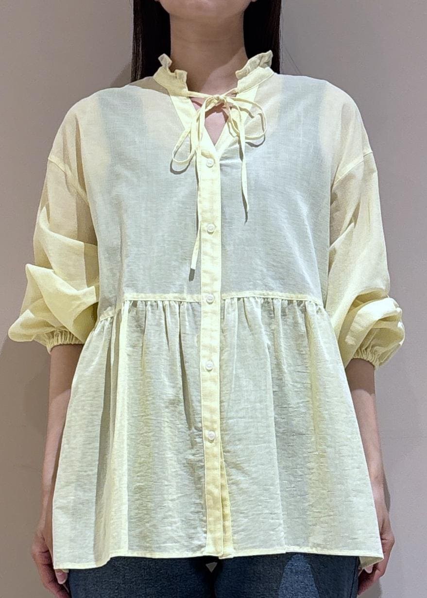 予約 2BUY10%OFFROPÉ PICNICお着軽シャツシリーズ コットンボイルスタンドフリルシャツ/接触冷感・通気性イエロー / F¥4,994レビューサラッとした肌触りのペプラムシルエットのシャツです。