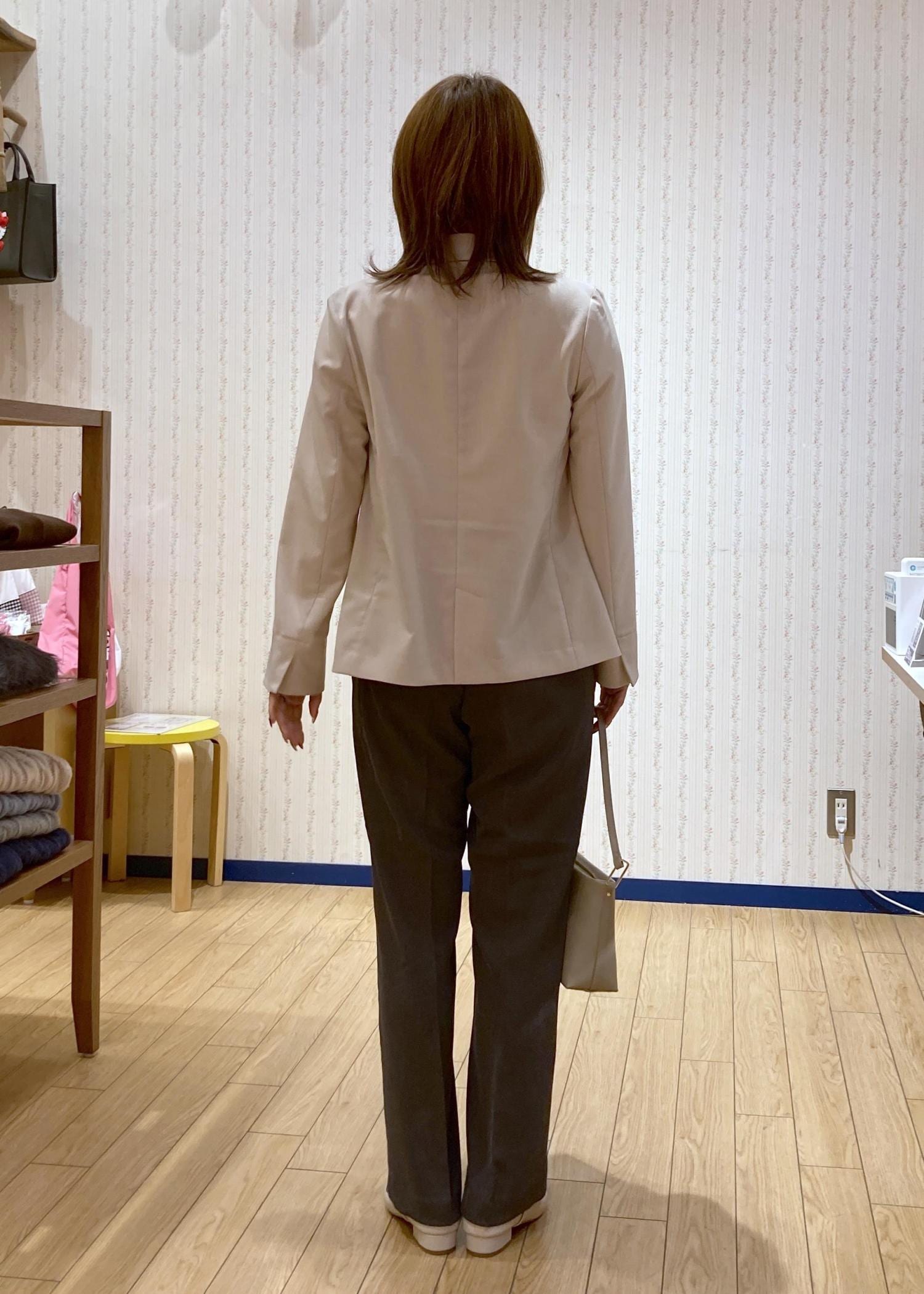 裏地がないのでシャツ感覚で羽織るだけできちんと感がプラスできる万能アイテムです。 -