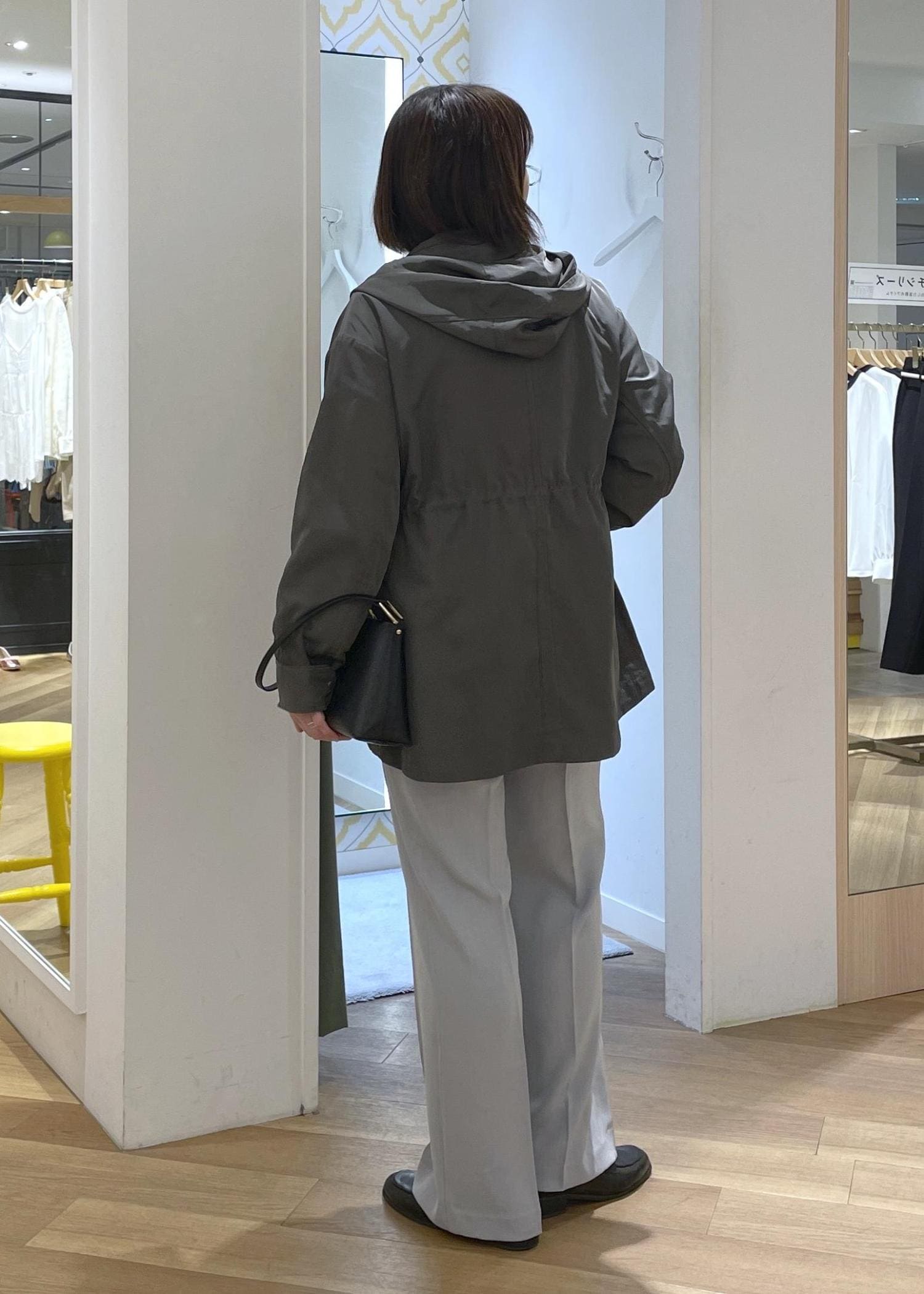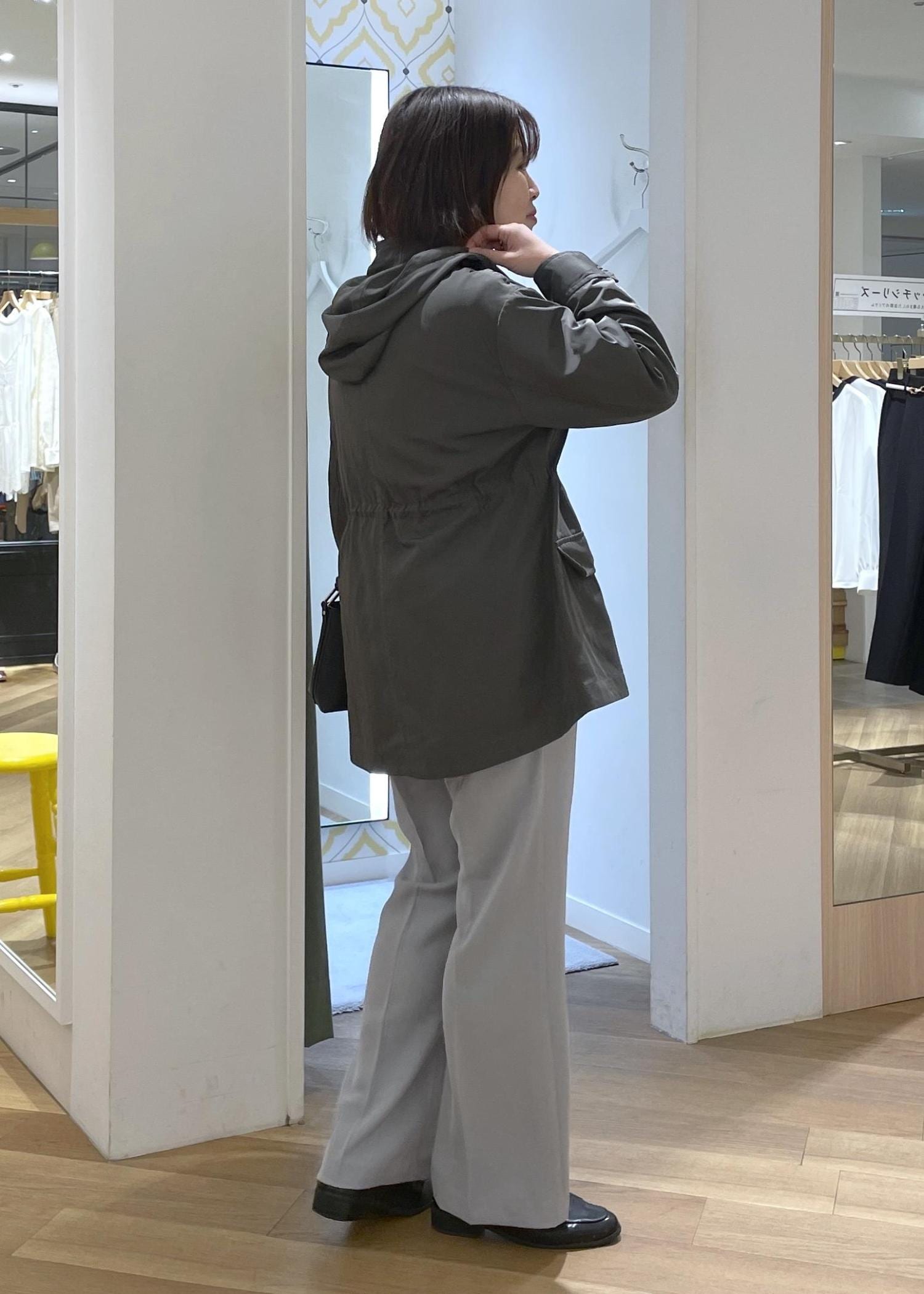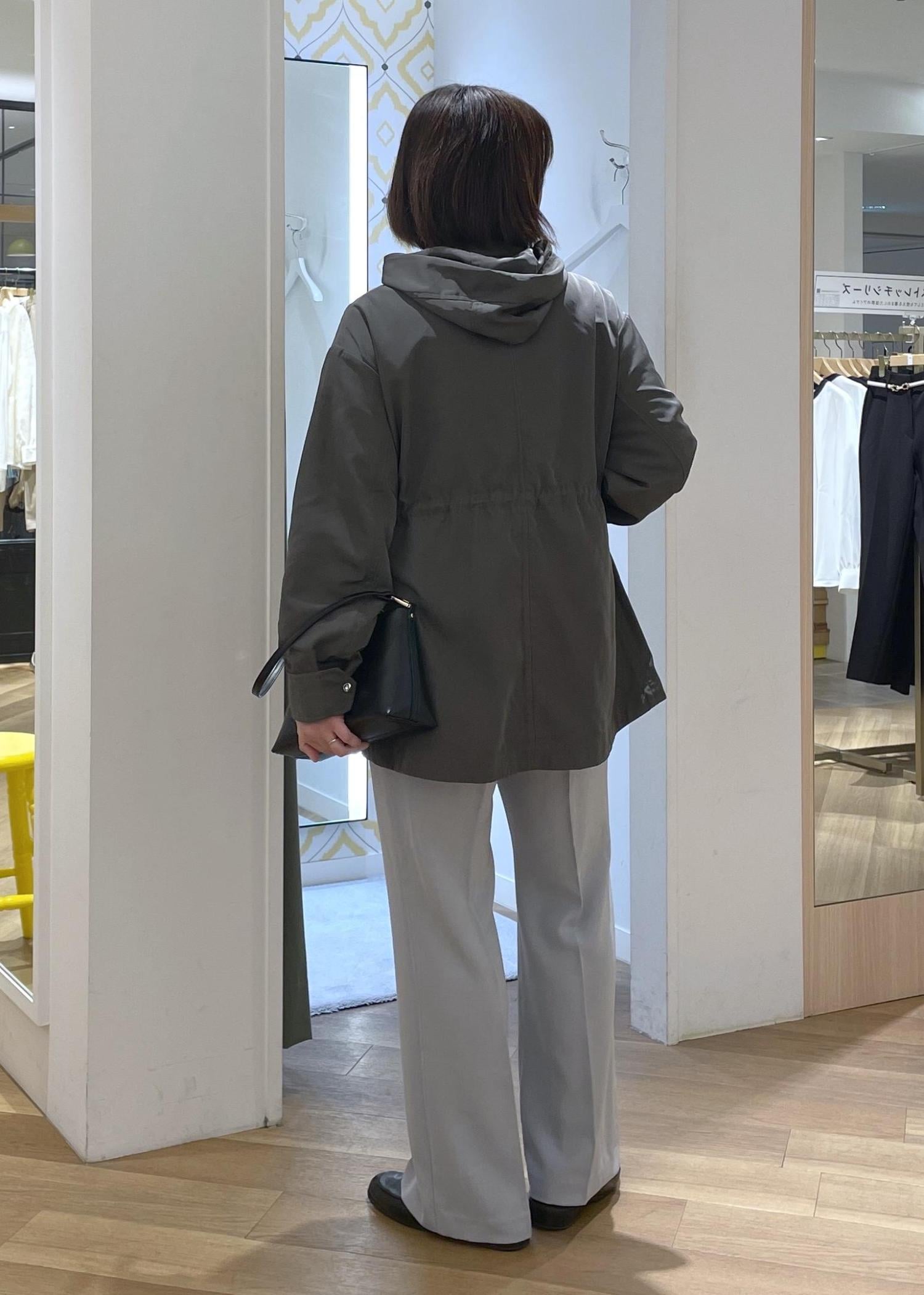ROPÉ PICNICミドル丈マウンテンパーカー スプリングコート/花粉ガード・撥水チャコール / F¥11,880レビュー柔らかな生地感のマウンテンパーカーで、軽く羽織り心地も良いです。身頃はゆったりしているので、厚手のトップスを合わせてもごわつかずに着用できます。着丈はヒップが隠れるくらいの長さです。ウエストは絞ることもできるので、メリハリを付けたい時や女性らしいシルエットでお召し頂きたい時はウエストを絞って頂くのがおすすめです。