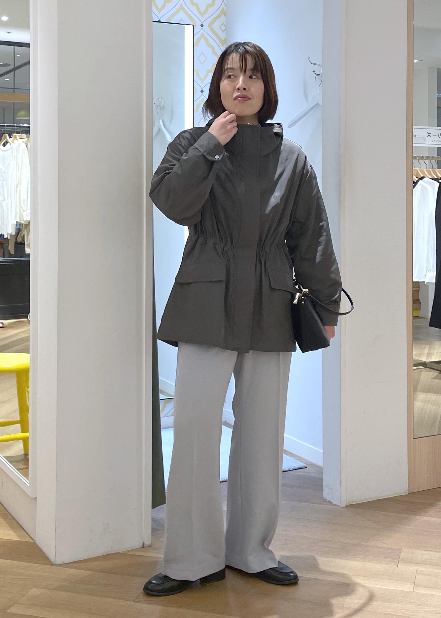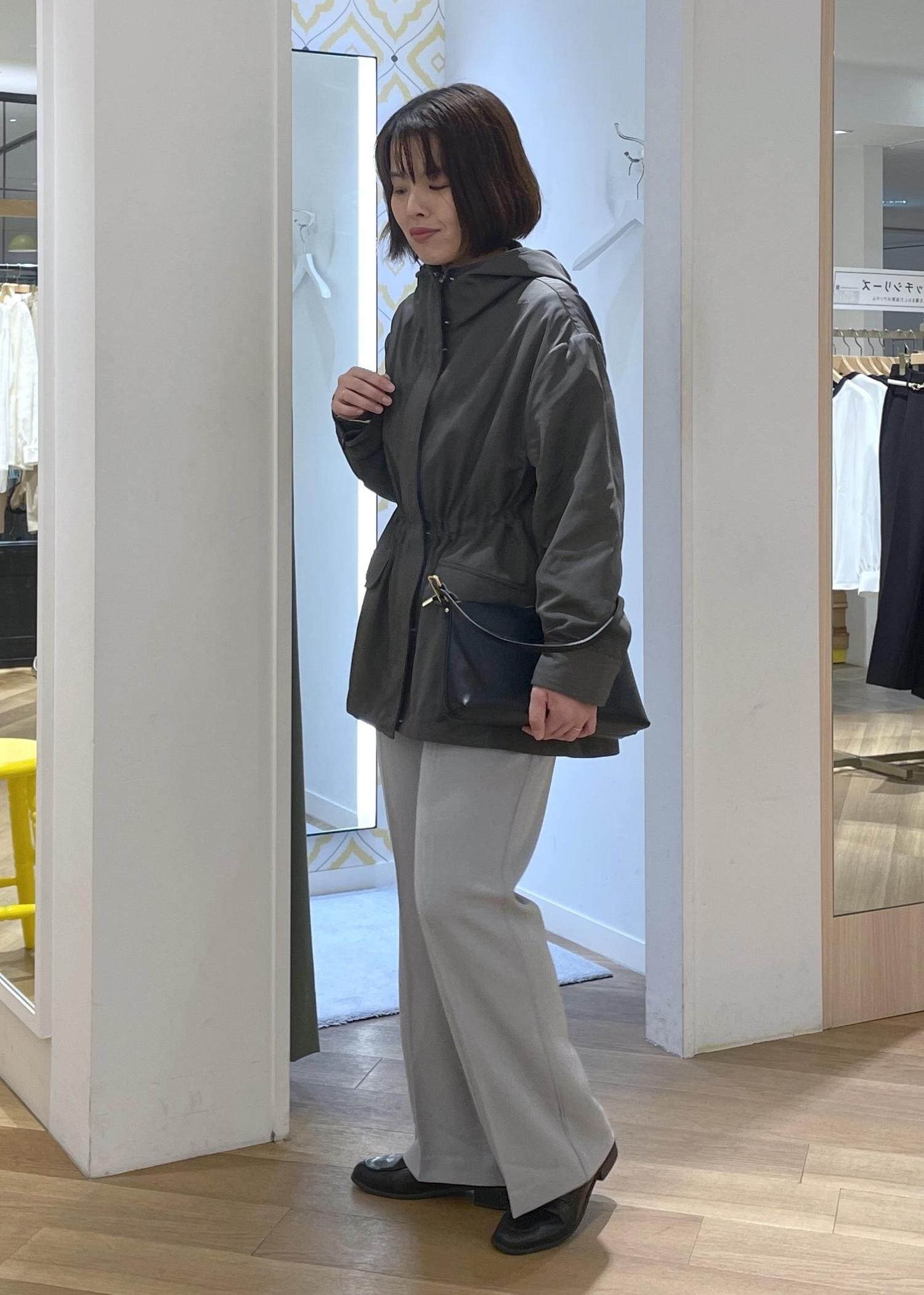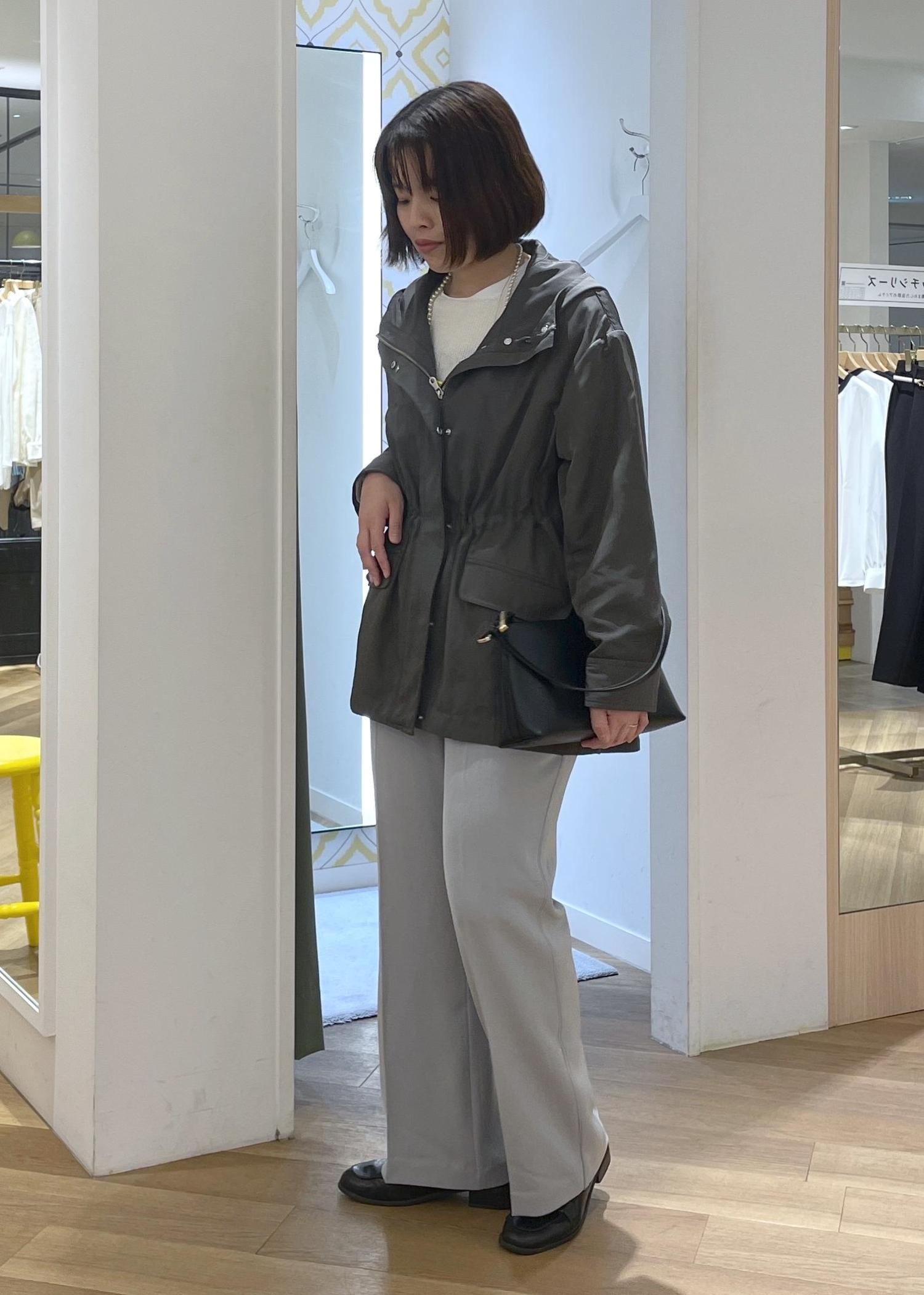 ROPÉ PICNICミドル丈マウンテンパーカー スプリングコート/花粉ガード・撥水チャコール / F¥11,880レビュー柔らかな生地感のマウンテンパーカーで、軽く羽織り心地も良いです。身頃はゆったりしているので、厚手のトップスを合わせてもごわつかずに着用できます。着丈はヒップが隠れるくらいの長さです。ウエストは絞ることもできるので、メリハリを付けたい時や女性らしいシルエットでお召し頂きたい時はウエストを絞って頂くのがおすすめです。