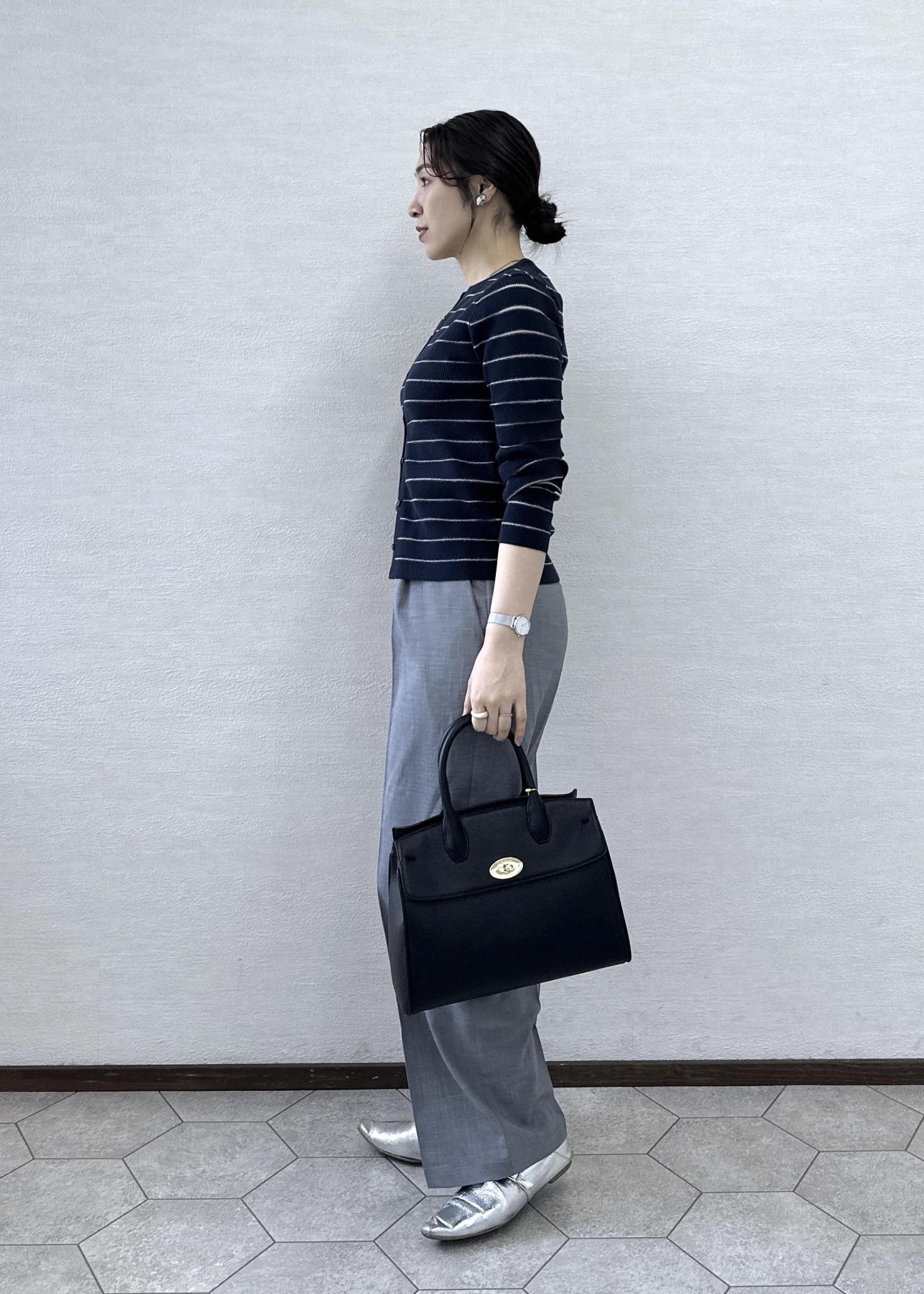 落ち着いたカラーでまとめたオフィスにもオススメのコーデ。