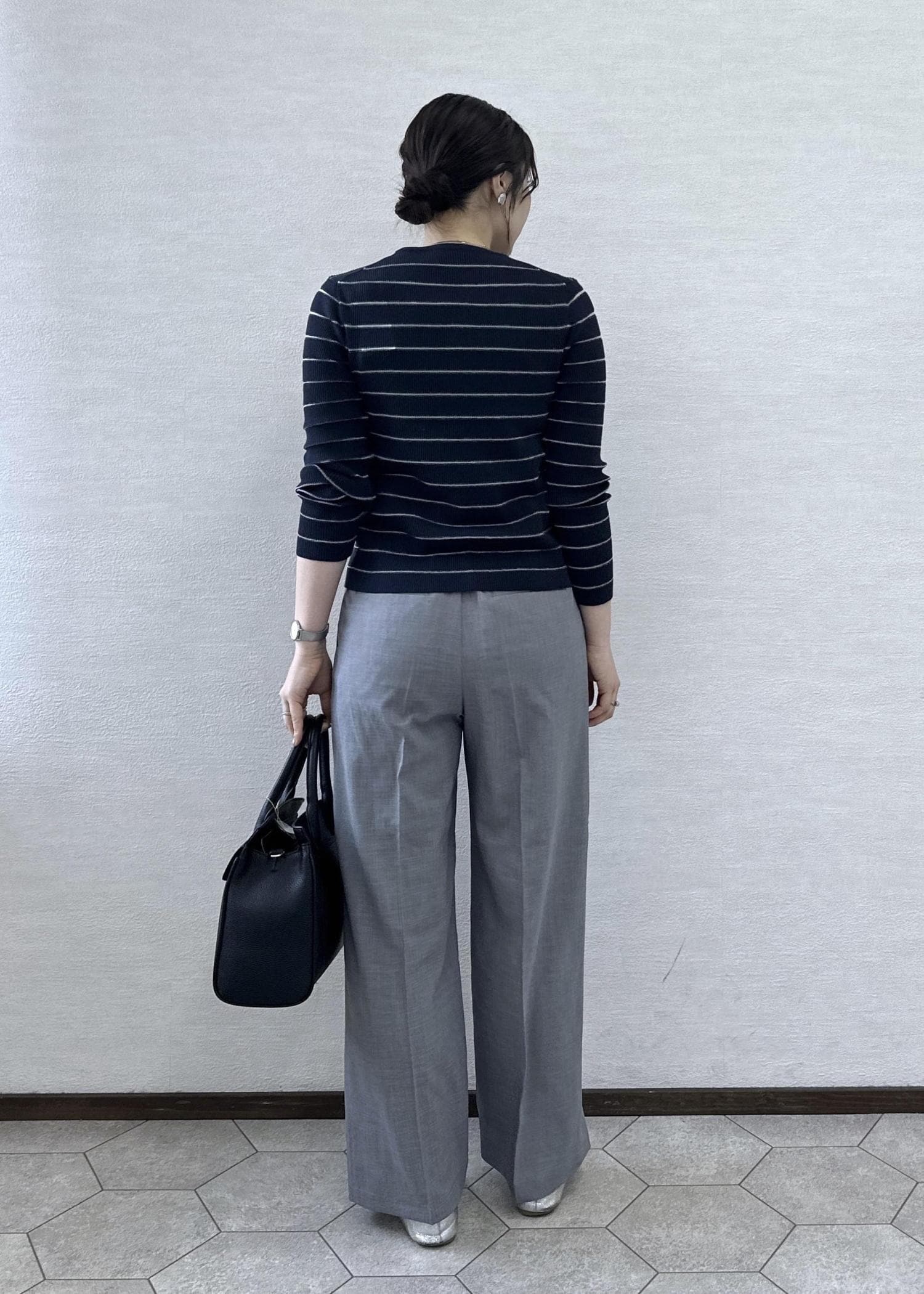 パンツはスタイルアップするワイドパンツで大人っぽくまとめました!