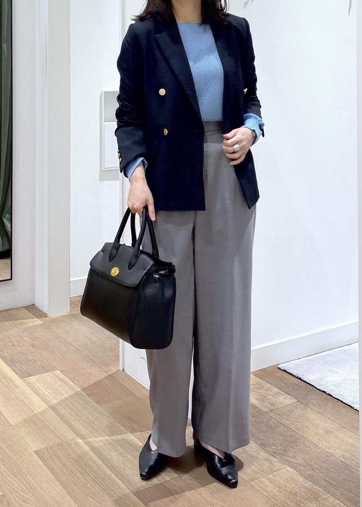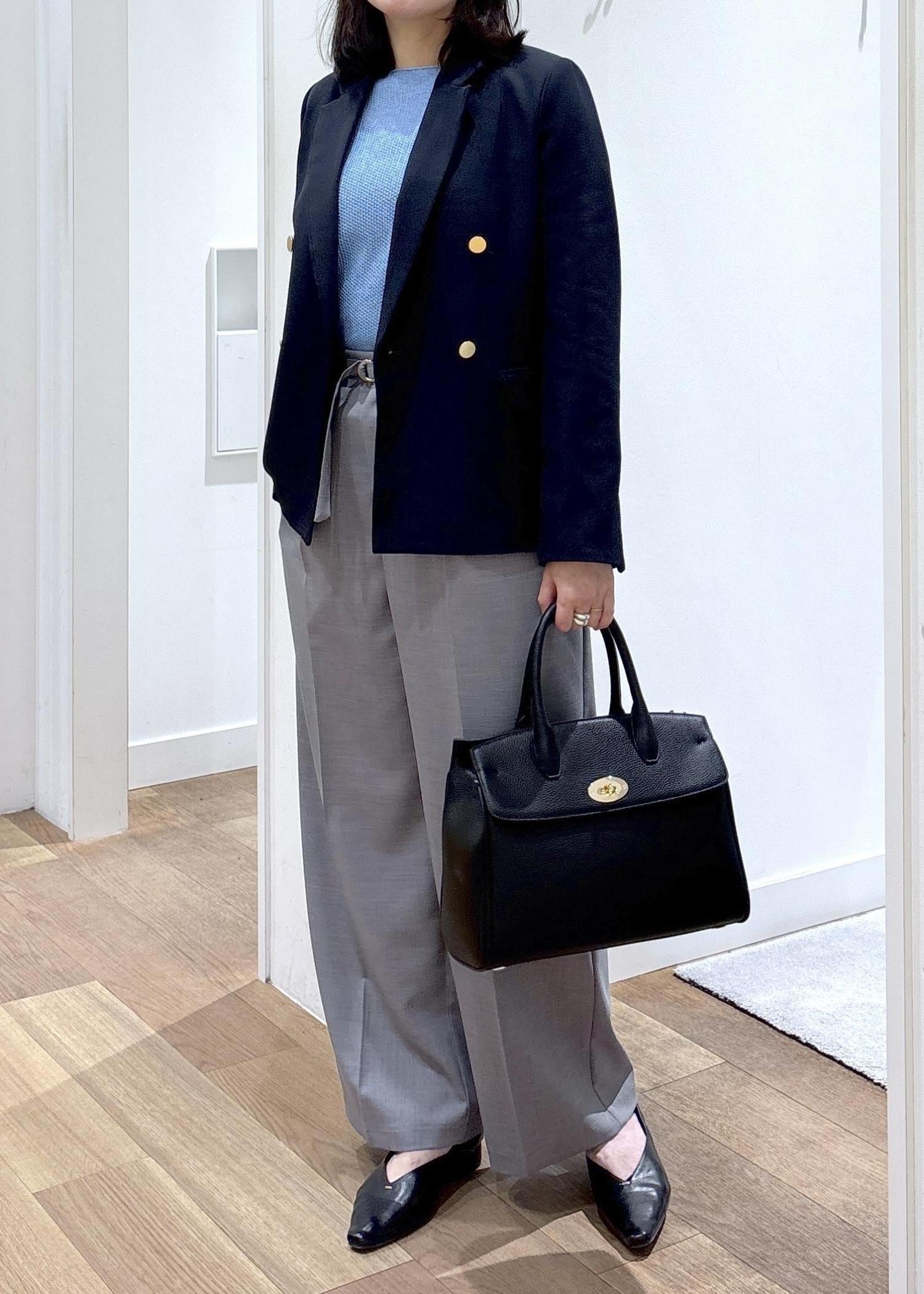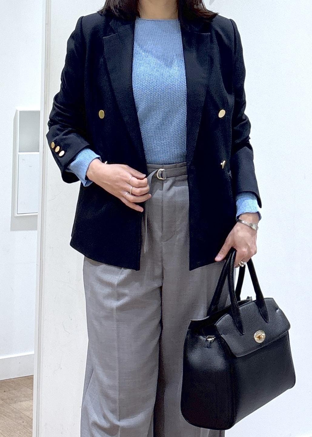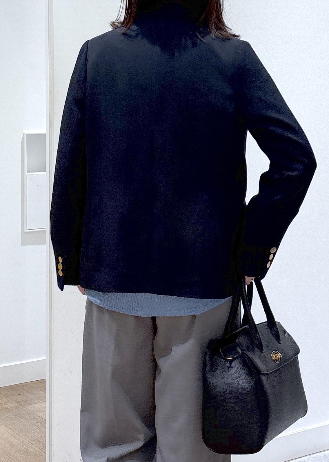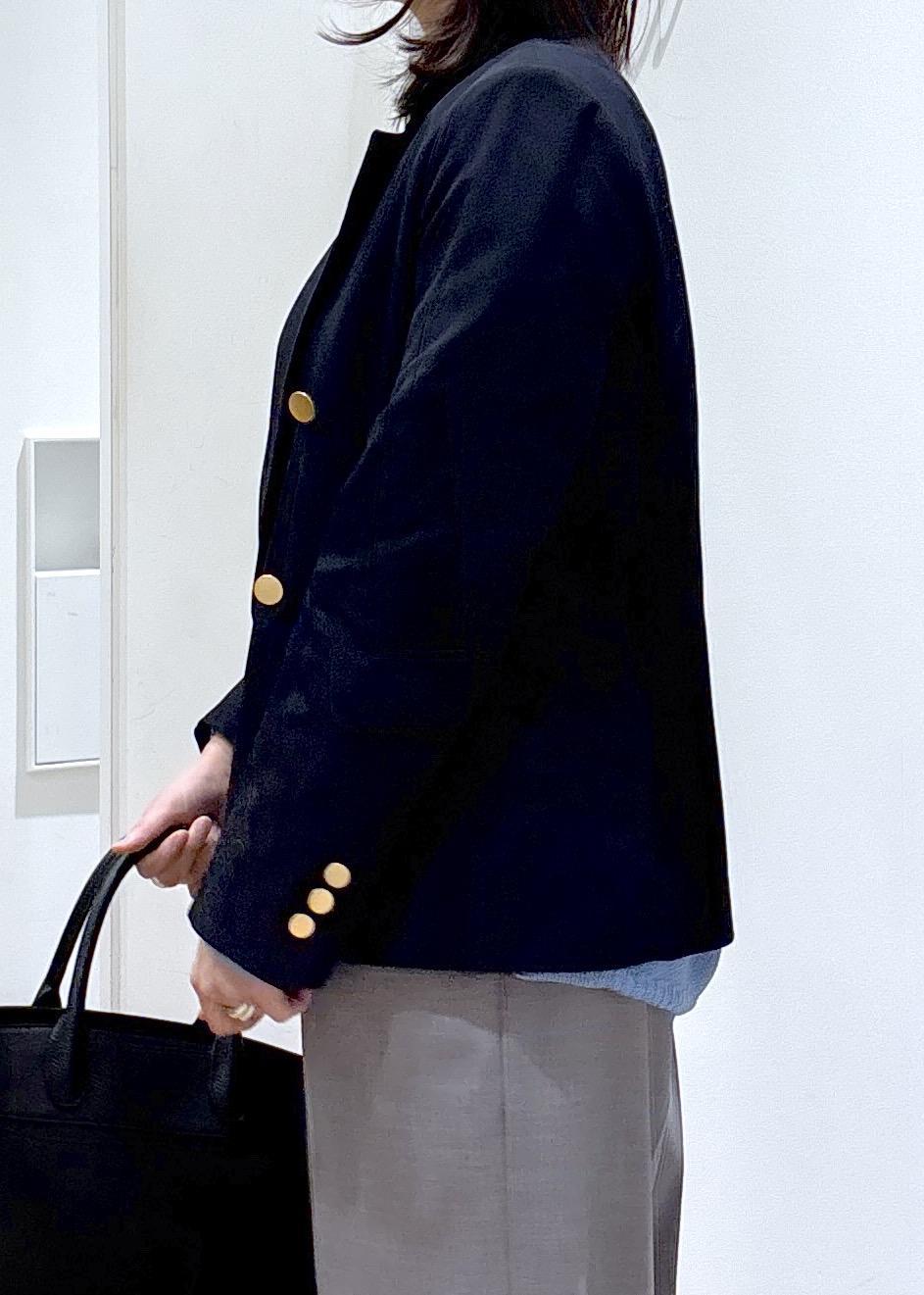 身幅にゆとりのあるデザインなので、インナーに薄手のニットも着ていただけます。 -