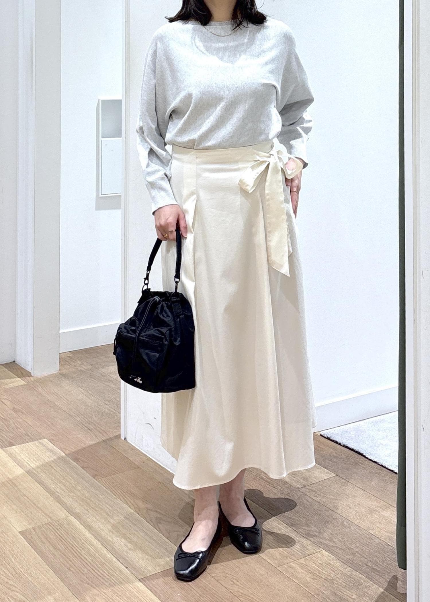 ROPÉ PICNICウエストリボンラップボリュームスカートキナリ / M¥6,490レビュー162㎝Mサイズで足首が出るくらいの長さでした。ウエストはフィット感があり、裾に向かって広がりのあるメリハリのある女性らしい綺麗なシルエットです。