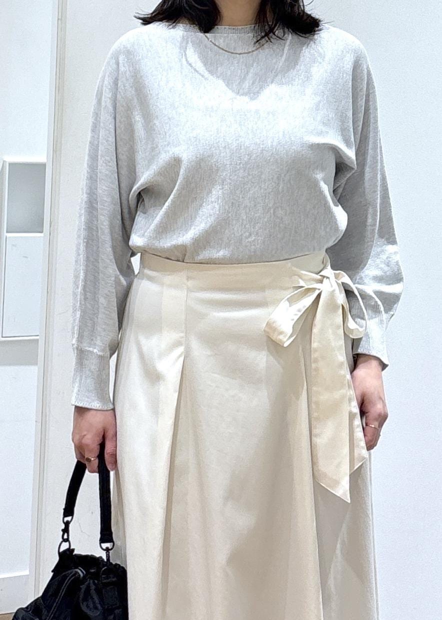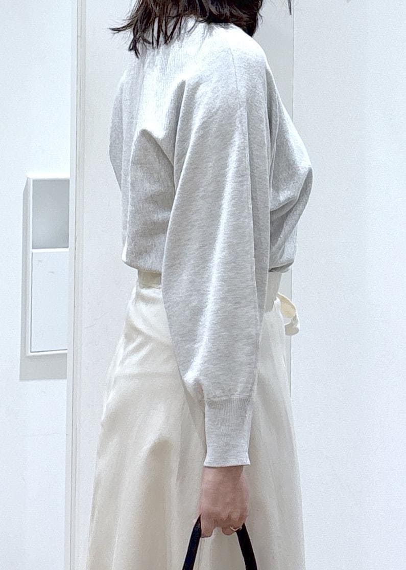 ROPÉ PICNICラメ混アイレットドルマンニットライトグレー / F¥4,994レビュードルマンスリーブが二の腕をカバーし、すっきりと見せてくれます。袖と裾はフィット感のあるリブなので、袖を捲ったりなどシルエットに動きもつけやすいです。ラメは程よいキラキラ感で自然な華やかさです。