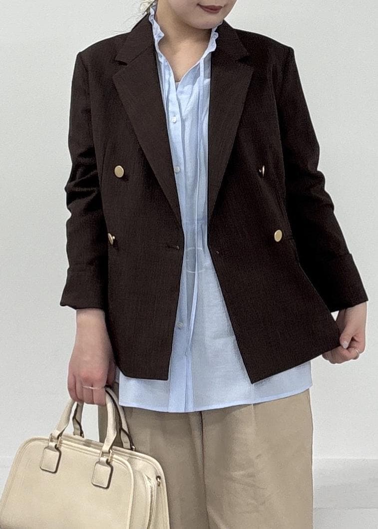 2BUY10%OFFROPÉ PICNICカナパ 金ボタンジャケット/セットアップ対応・UV・抗菌防臭・接触冷感ダークブラウン / M¥8,492レビュー161cm/Mサイズ着用で腰回りが隠れるほどの着丈です。裏地無しの肌ばなれのよい素材感でさらりと着用できました。