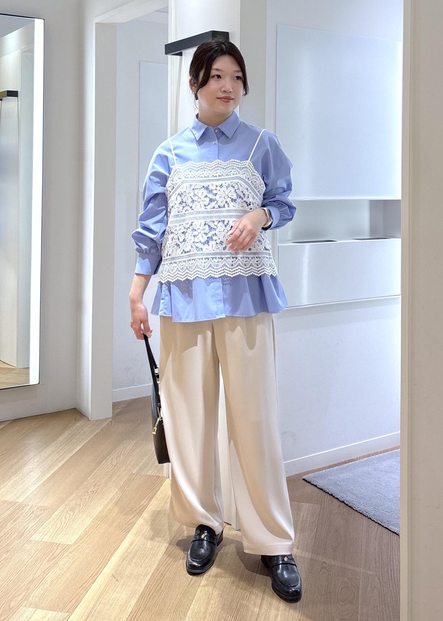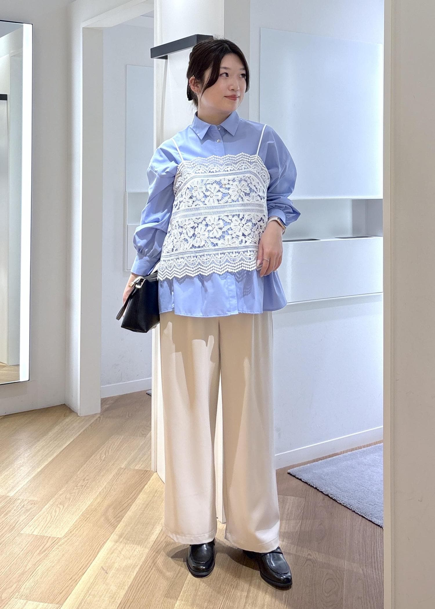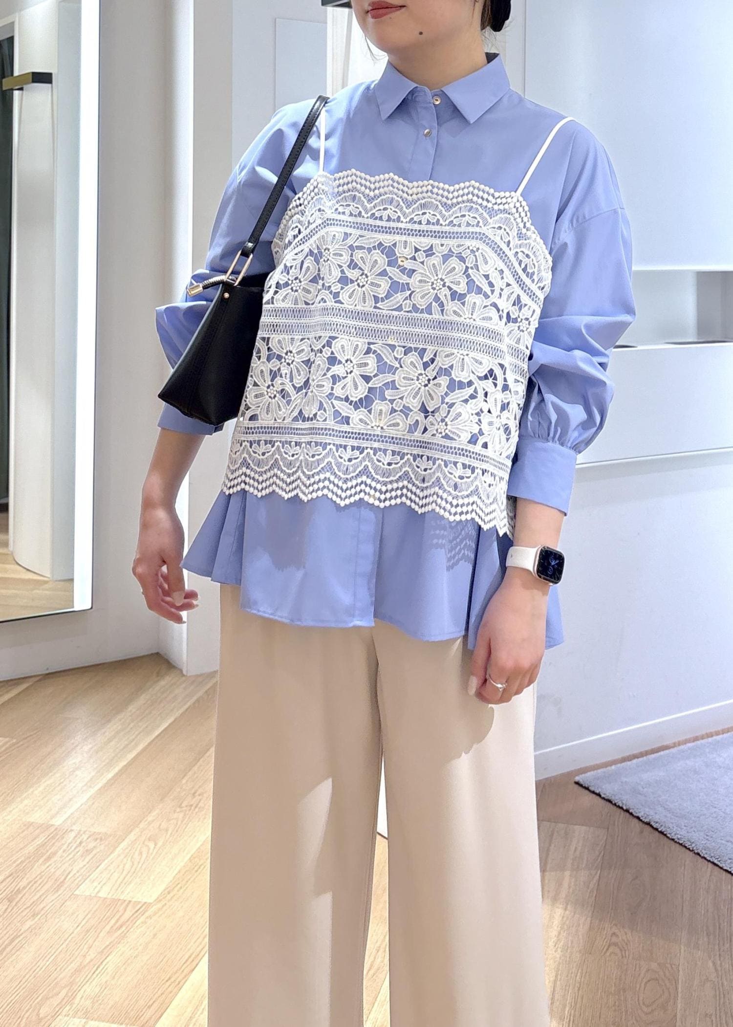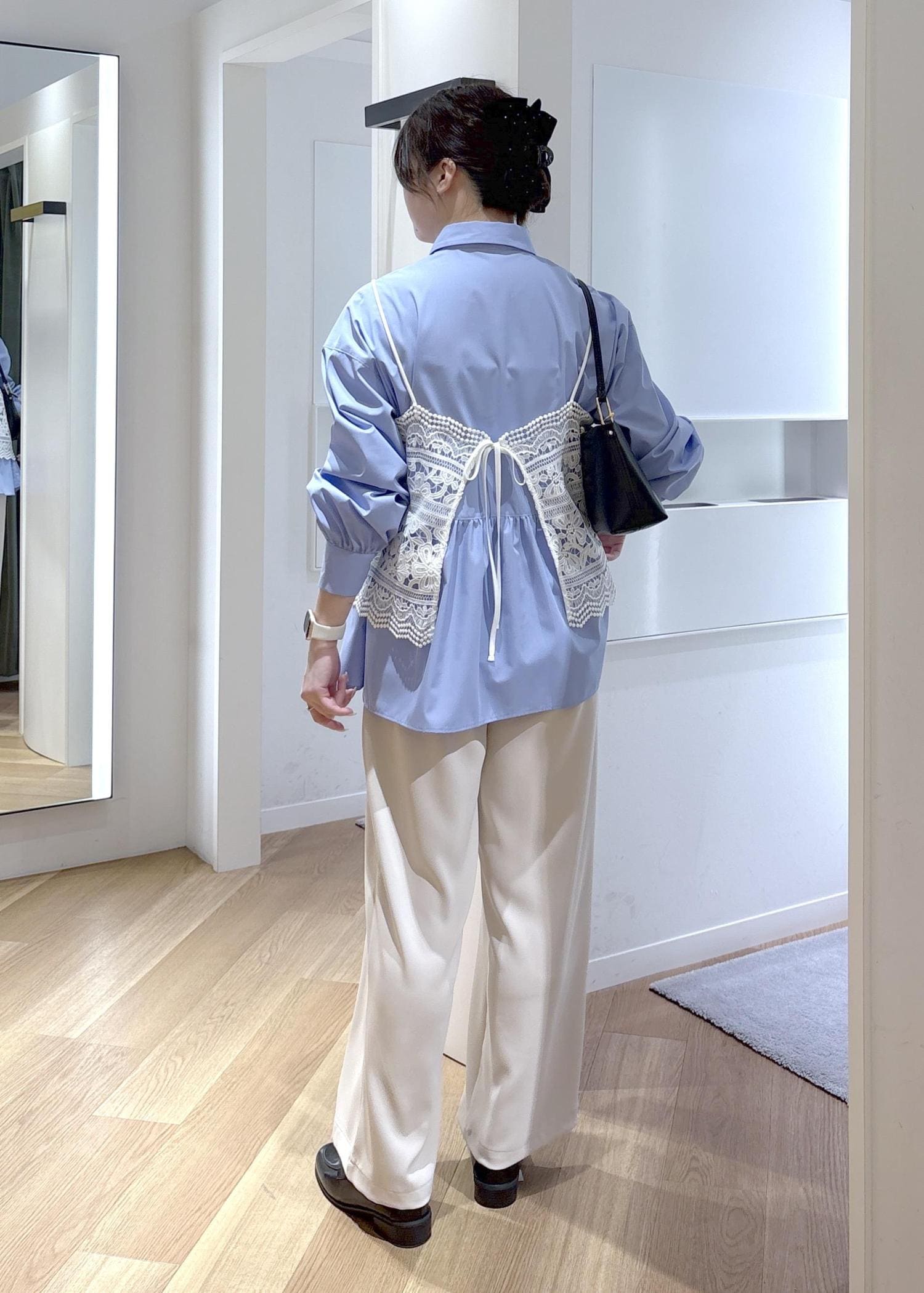 ブルーが爽やかで、レースビスチェを合わせてさらに華やかに合わせてみました◎
