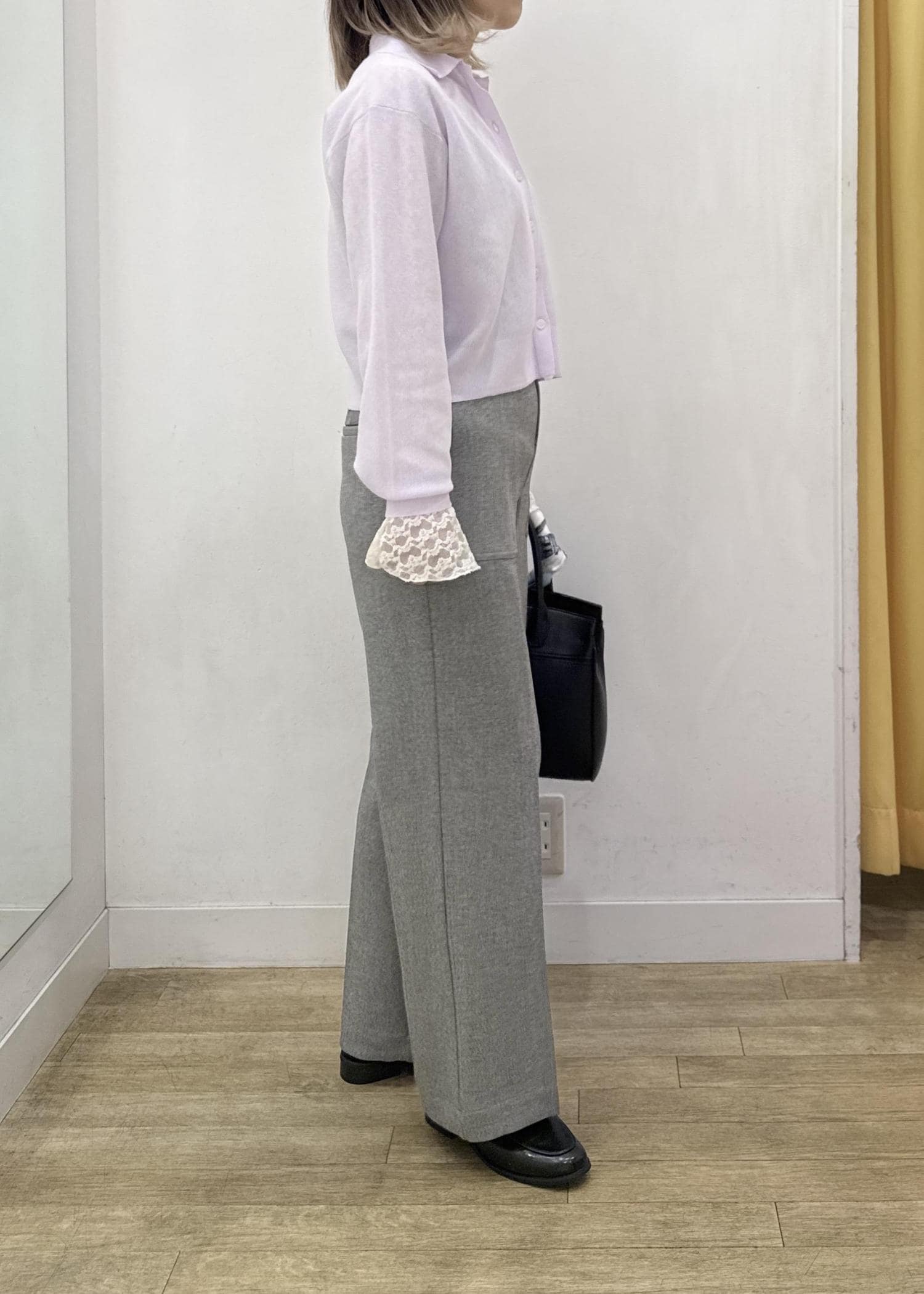 ローヒールでも穿けるジャストな着丈。