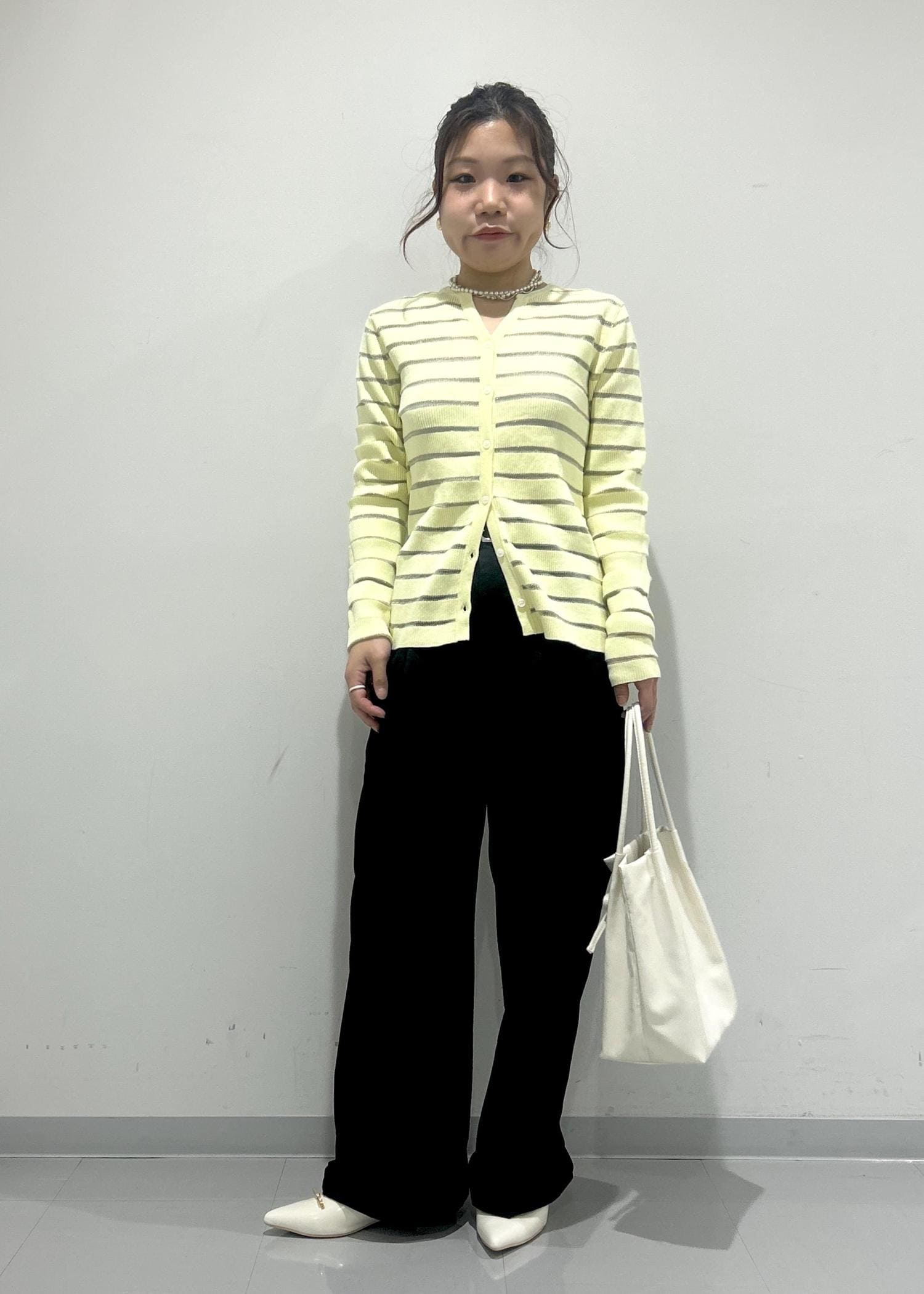 ROPÉ PICNICシアーボーダーニットカーディガンクリーム / F¥5,489レビューコンパクトなサイズ感ですが伸縮性があり着やすく、程よいフィット感なので、ボタンを閉じてトップスとしても着やすいです。
