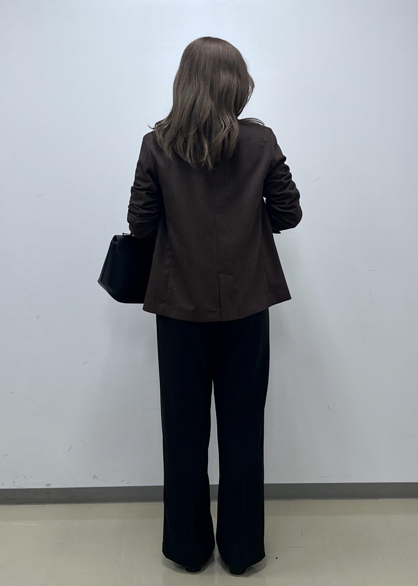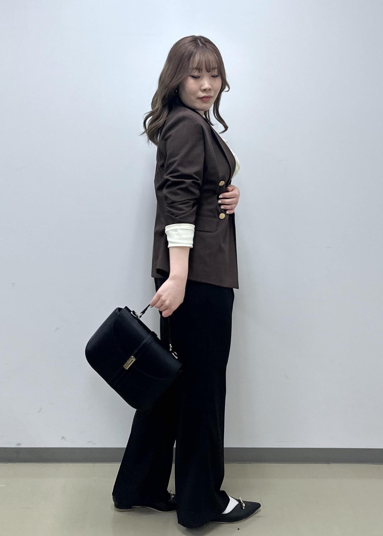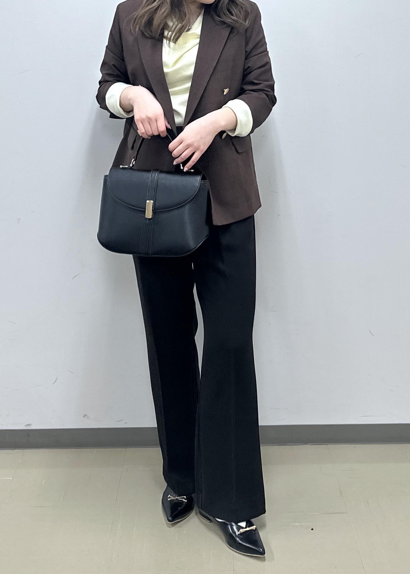 ワイドパンツではなくフレアのデザインなので重たくならすまジャケット合わせすると韓国風なコーデになります!