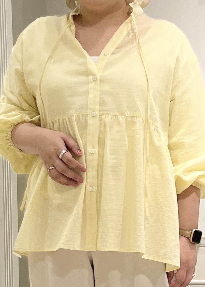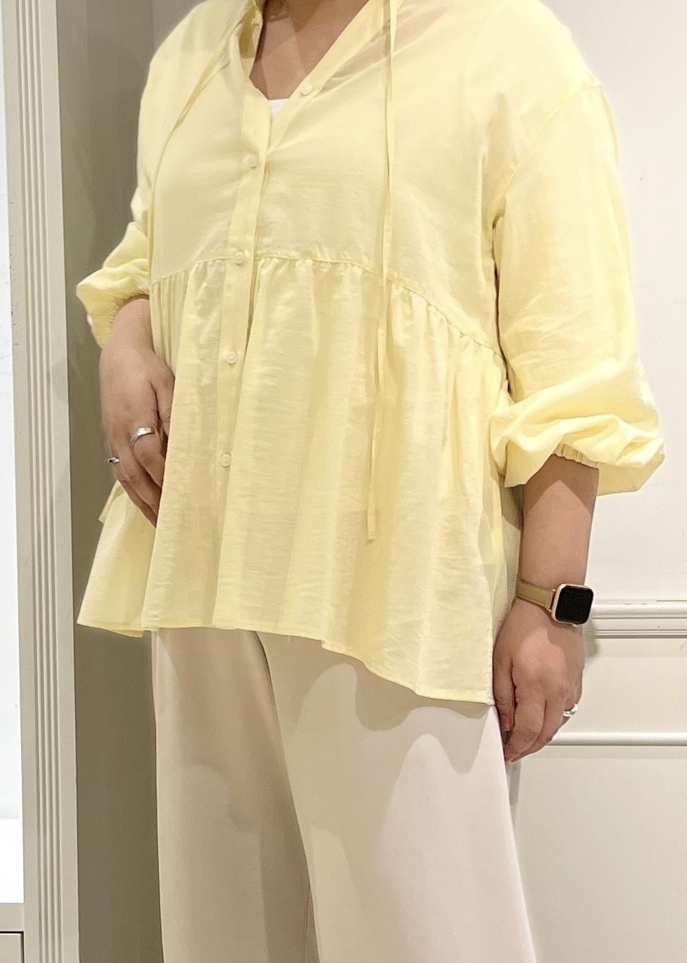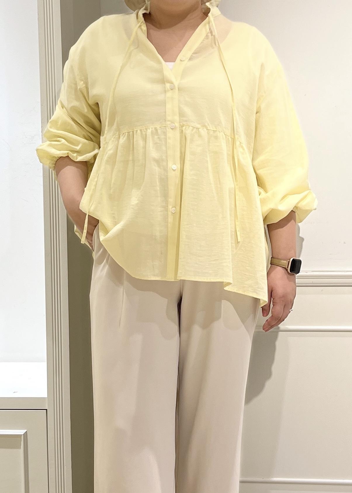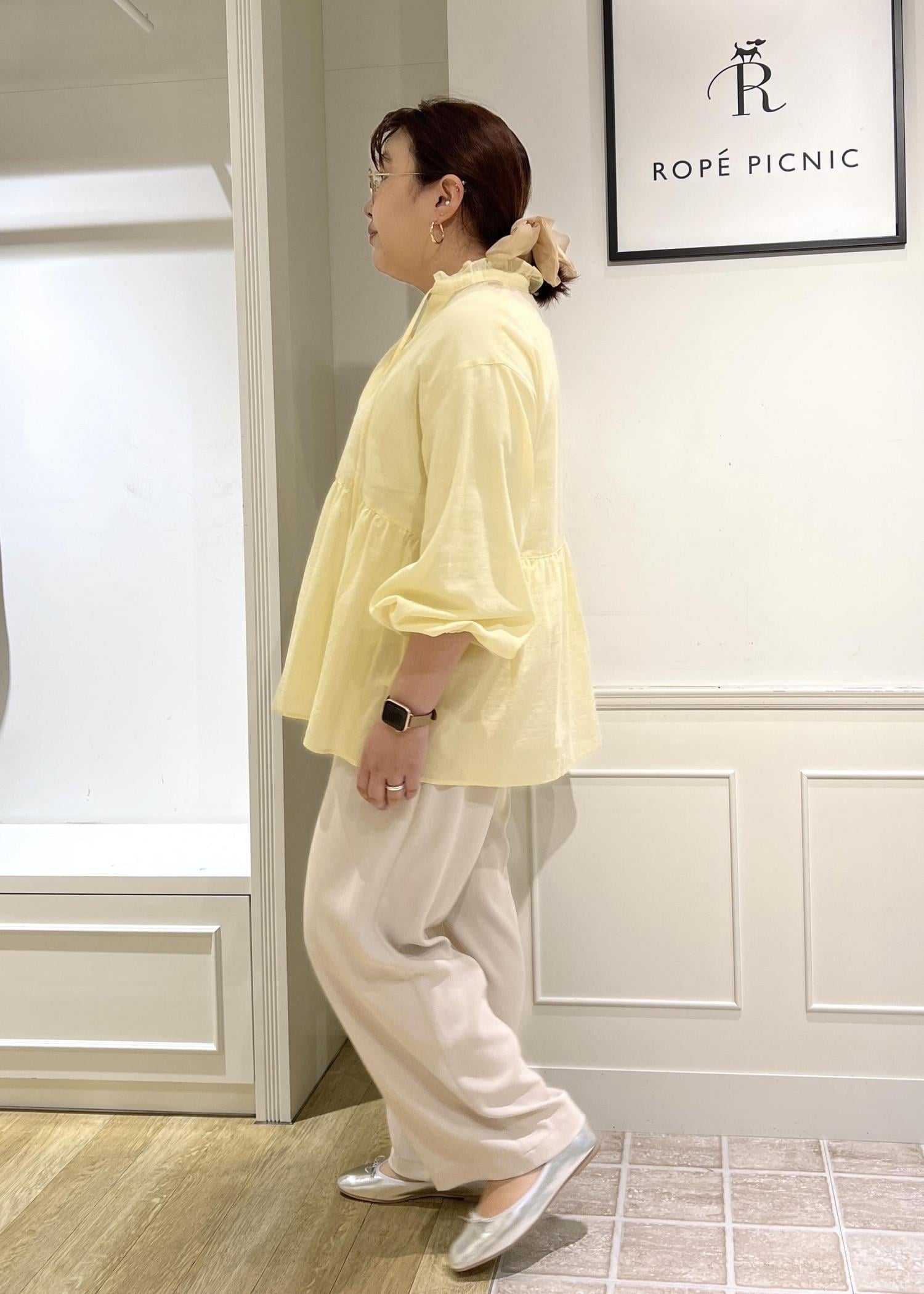 予約ROPÉ PICNICお着軽シャツシリーズ コットンボイルスタンドフリルシャツ/接触冷感・通気性イエロー / F¥4,994レビューペプラムの広がりで体型カバー力◎