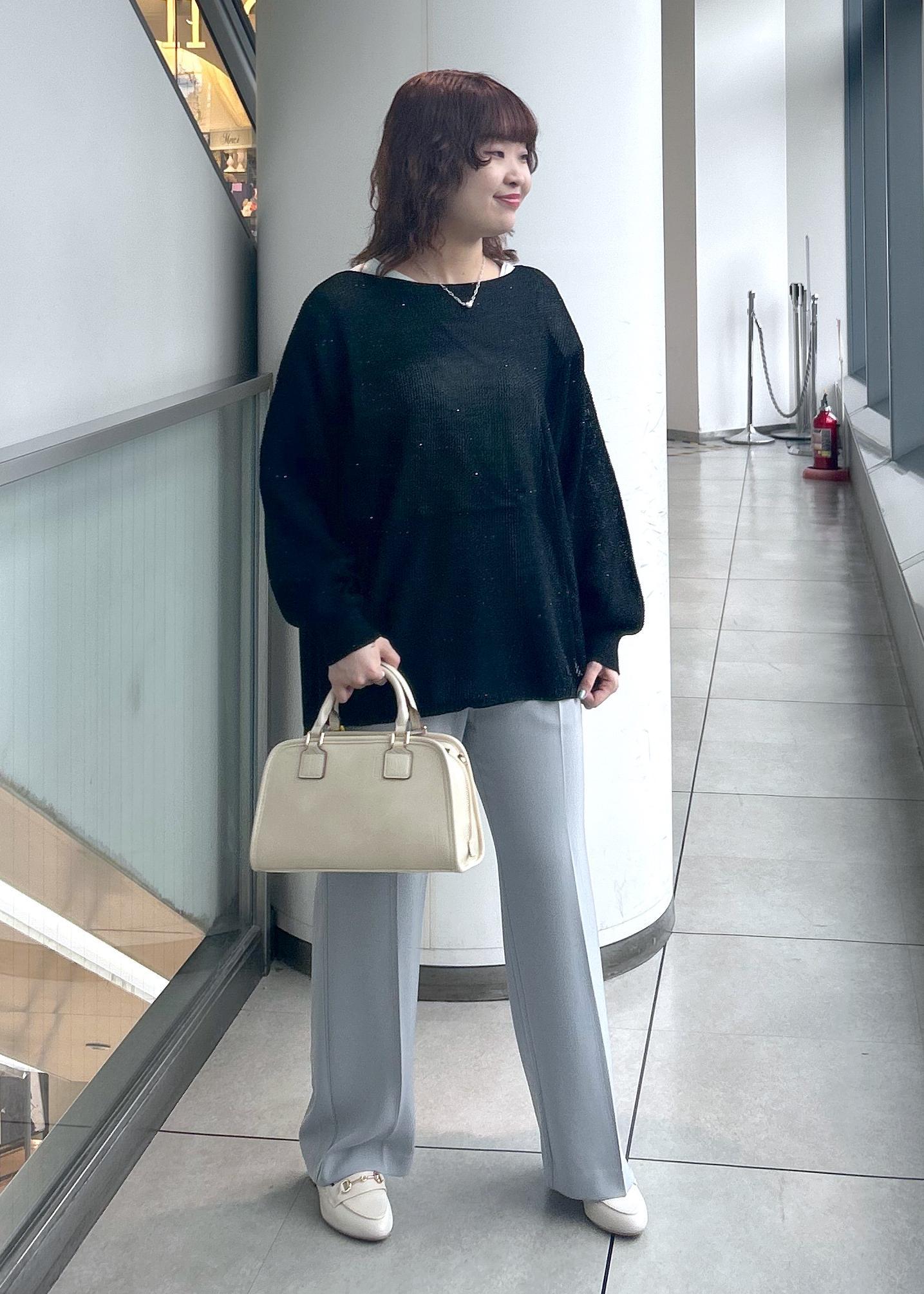 トップスの首元が広めですが中にインナーを合わすとちら見えしアクセントになります。