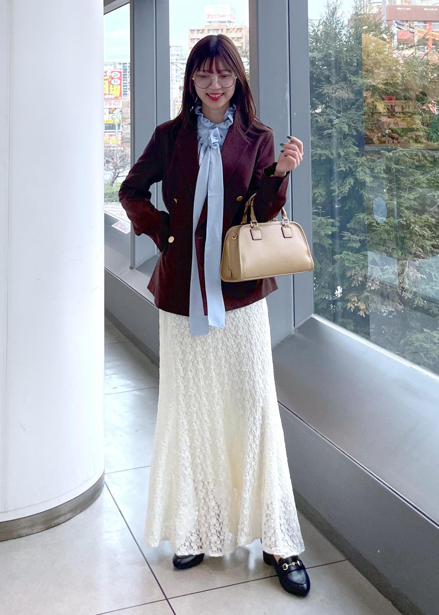 ペプラムでトップスを合わせたコーデです!