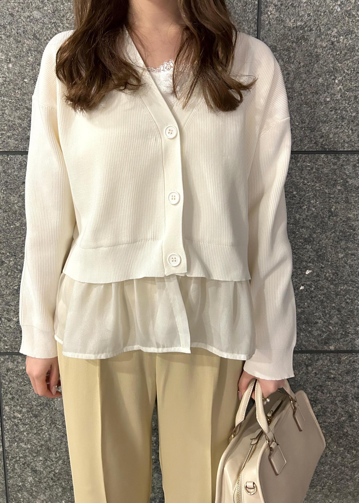 ROPÉ PICNIC異素材ドッキングニットカーディガン/イージーケアオフホワイト / F¥5,489レビューレイヤード風のデザインなので1枚で着映えします!