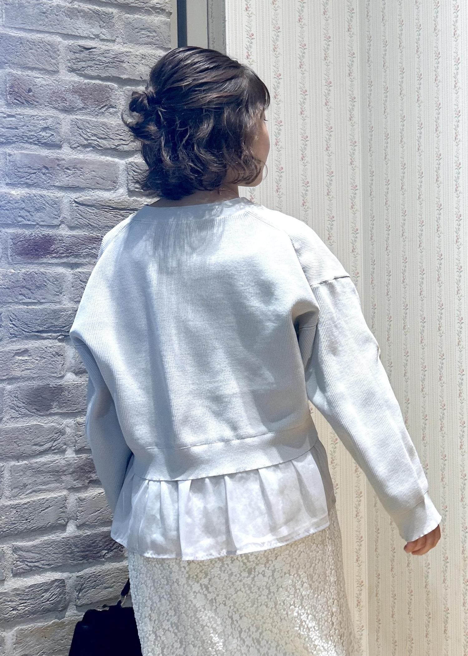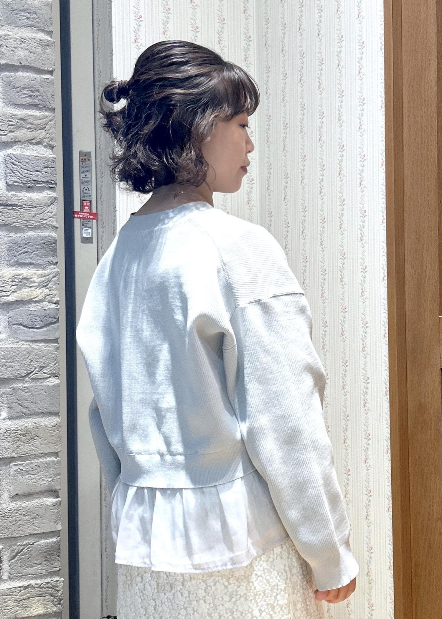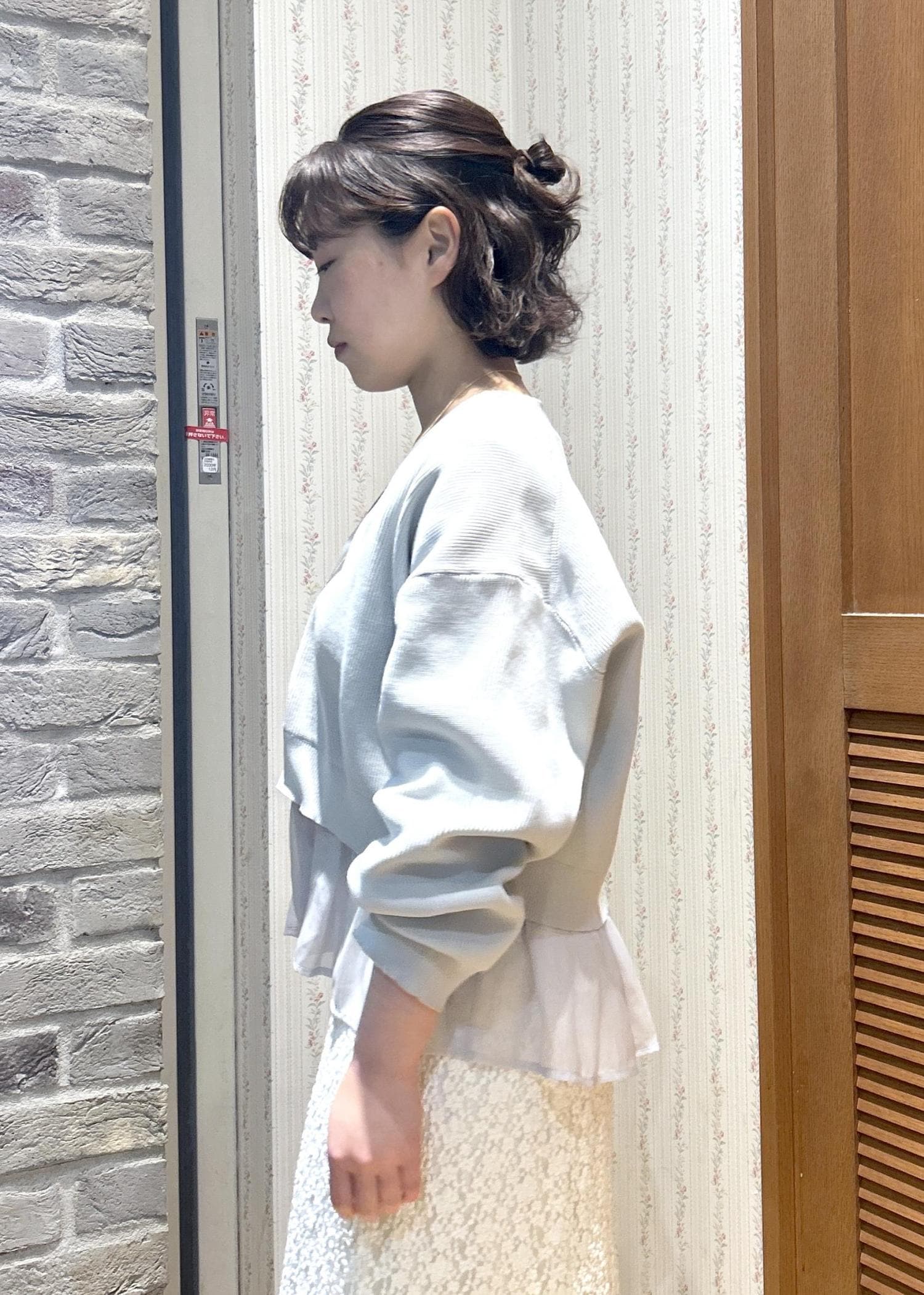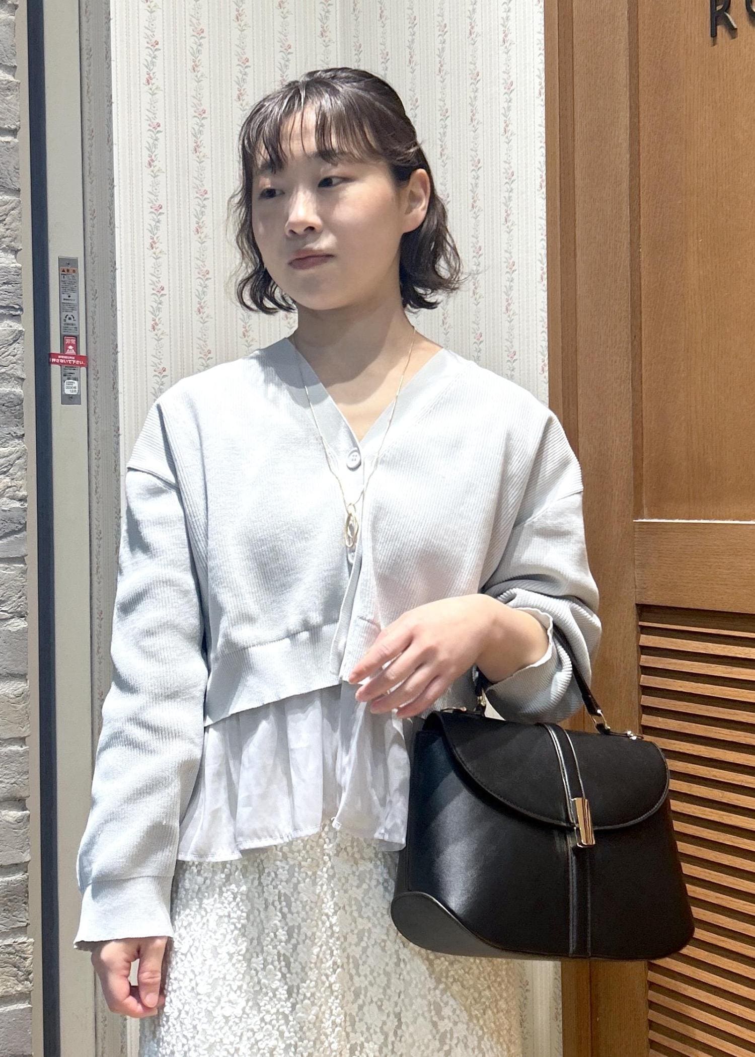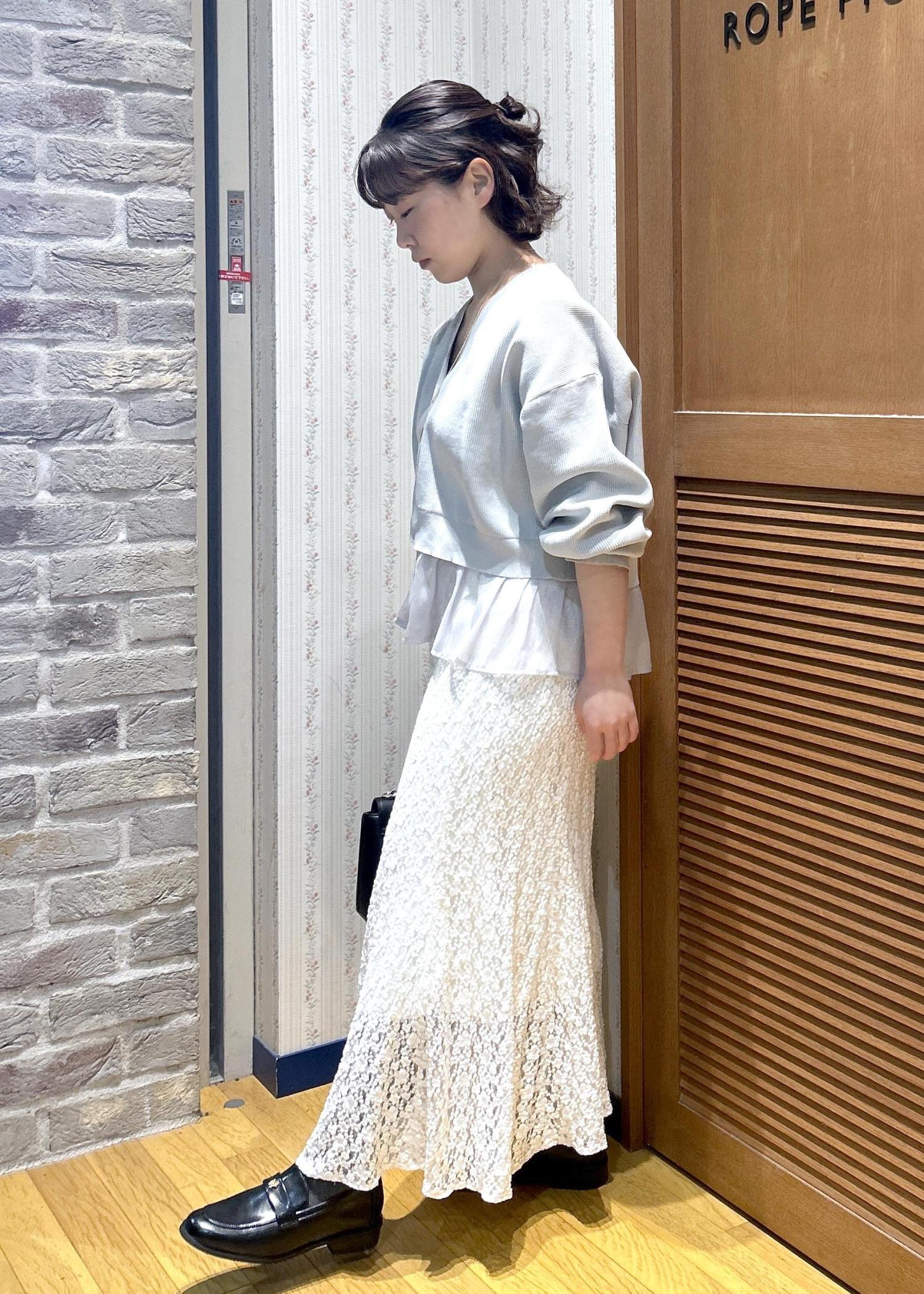 ドッキングのデザインが可愛いカーディガンを、レースのスカートと合わせました!やや短めな丈感のカーディガンなので、小柄さんもぜひ◎