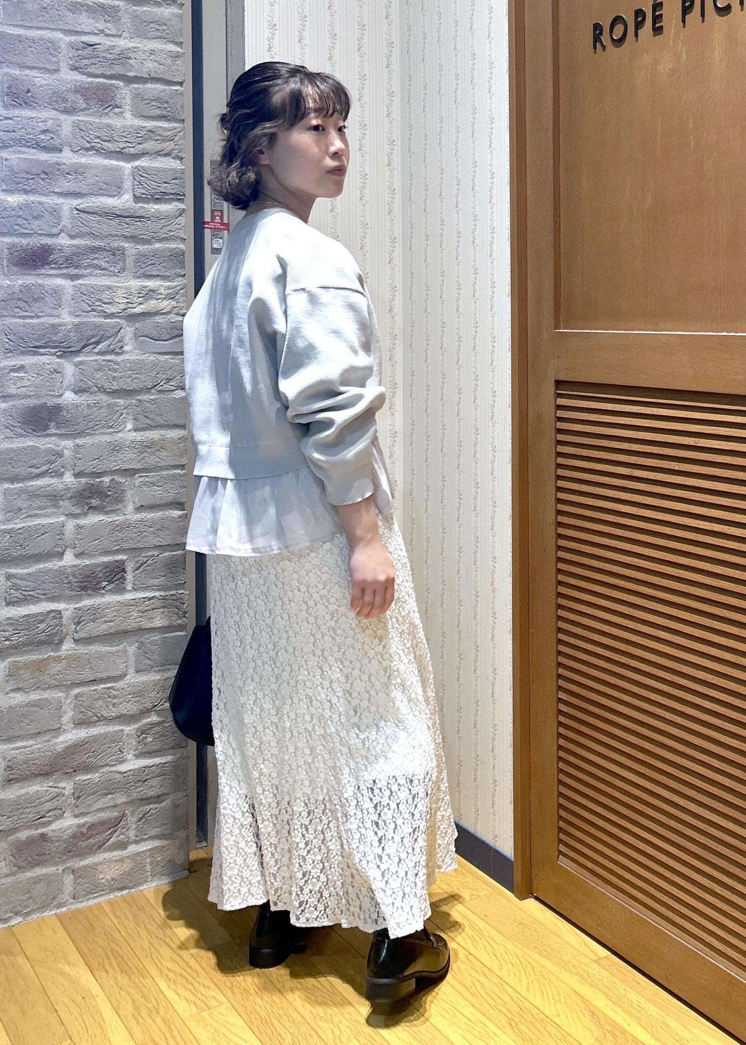ROPÉ PICNICレースマーメイドスカートキナリ / F¥6,490レビュー身長147センチで、1回ウエストを折って着用しています。裏地がひざ下まであり透け感は気になりません。腰まわりをスッキリ見せてくれるシルエットです。