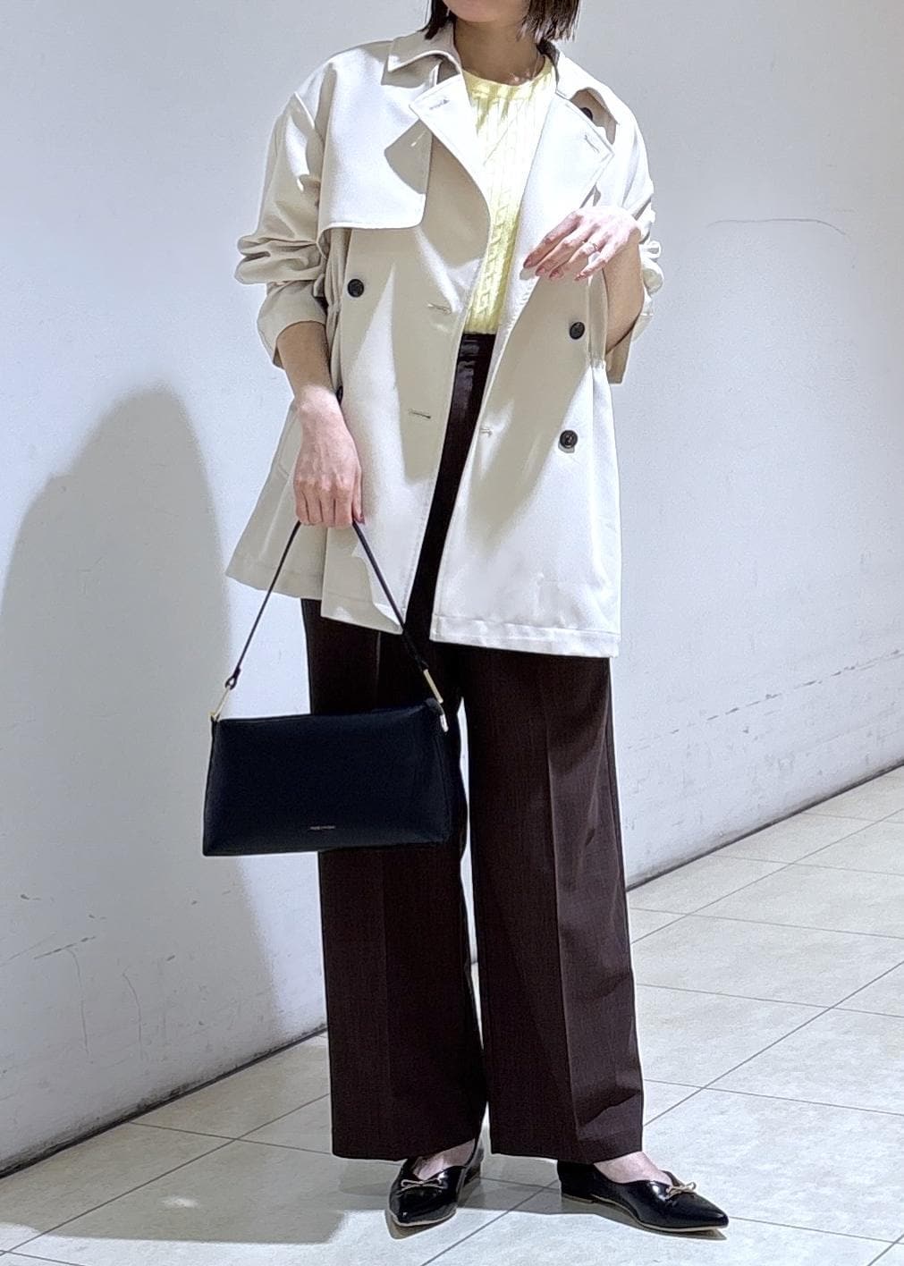 ミドル丈トレンチを羽織って