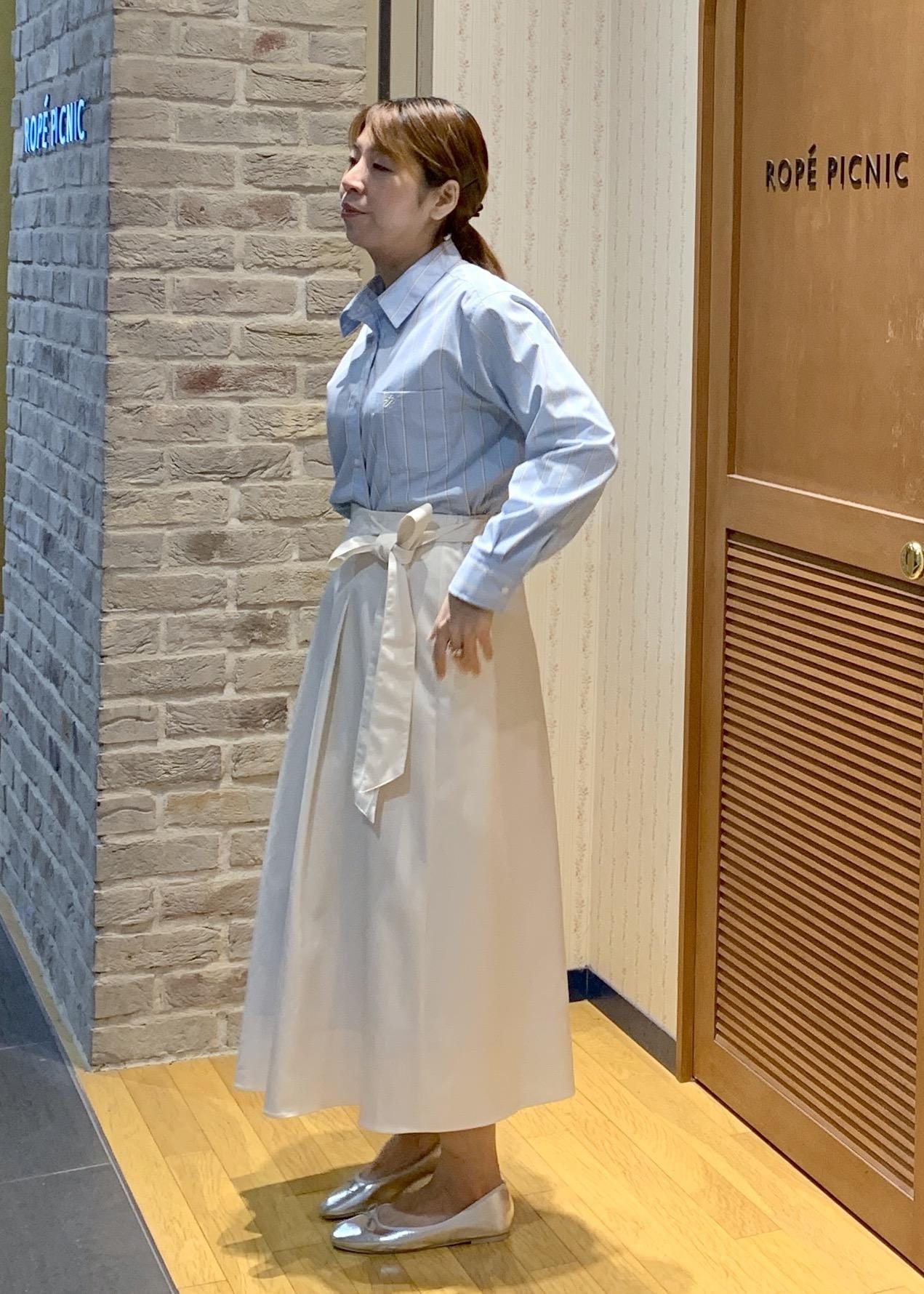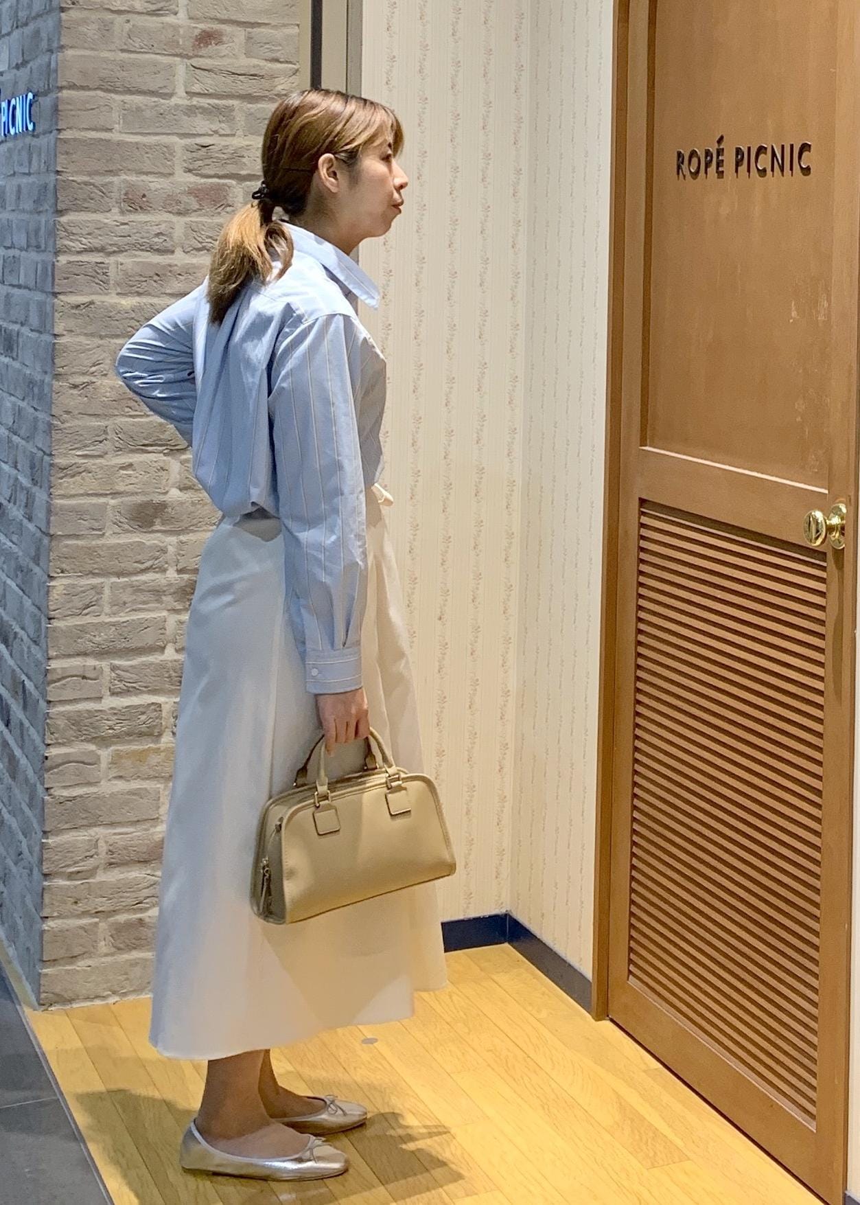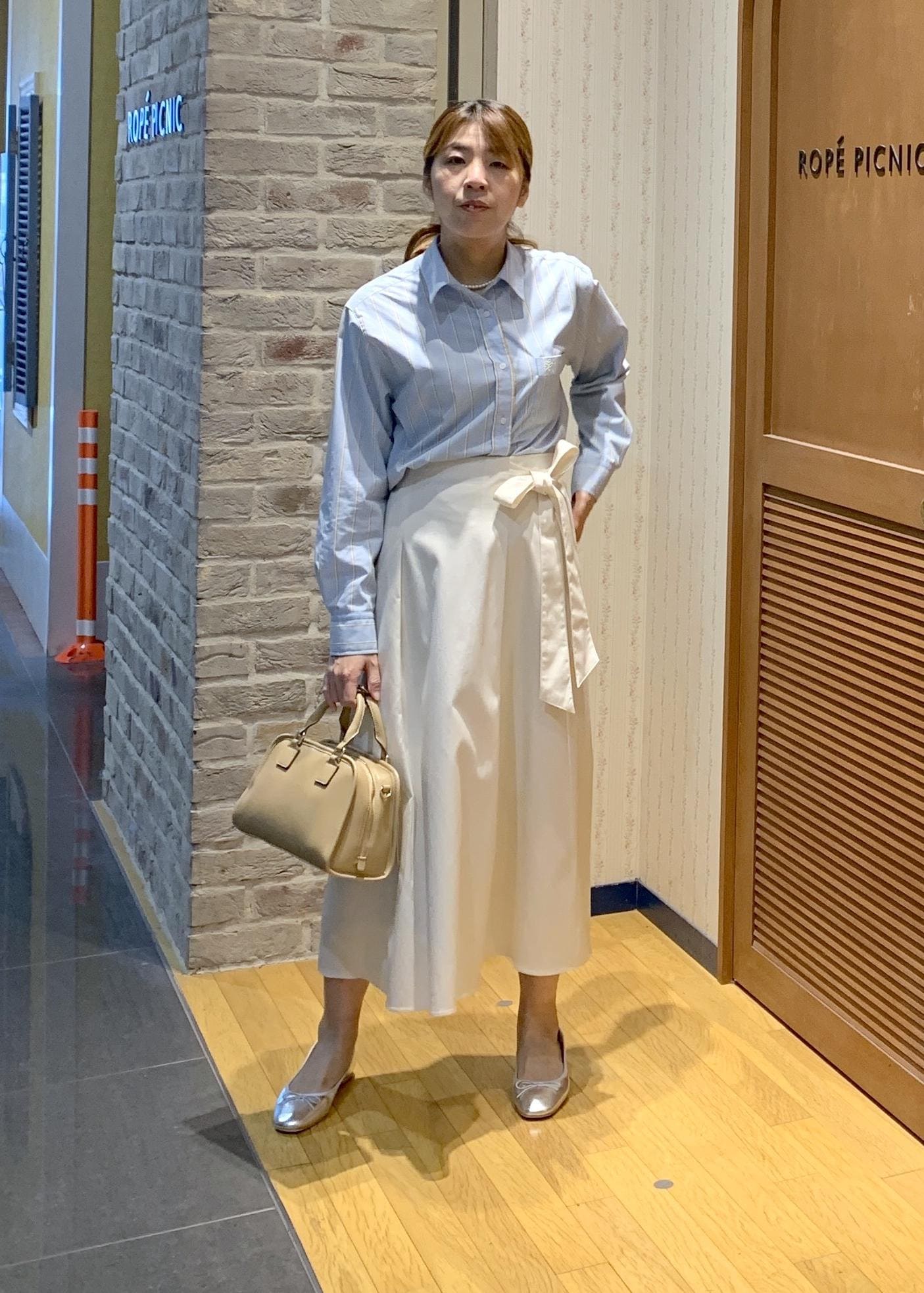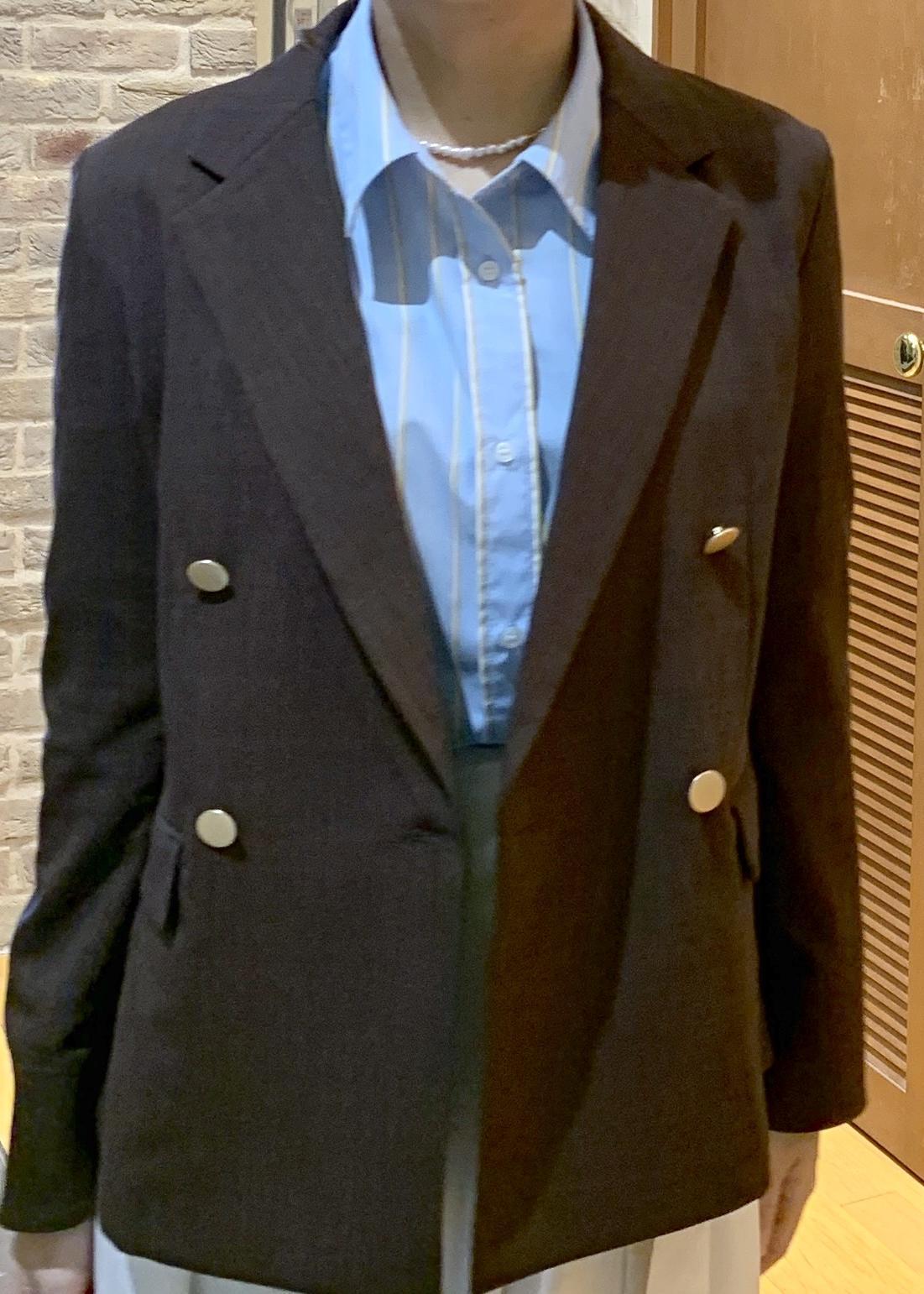 インナーをストライプのシャツにしてお仕事ぽくなりすぎないようにしています。