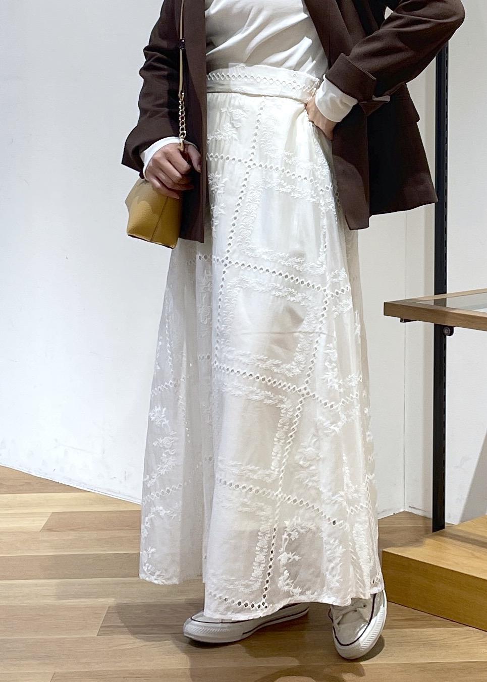 ROPÉ PICNIC刺繍レースフレアスカートホワイト / F¥7,491レビュースクエアの刺繍が女性らしく、可愛くなりすぎず大人っぽく着用して頂けます。