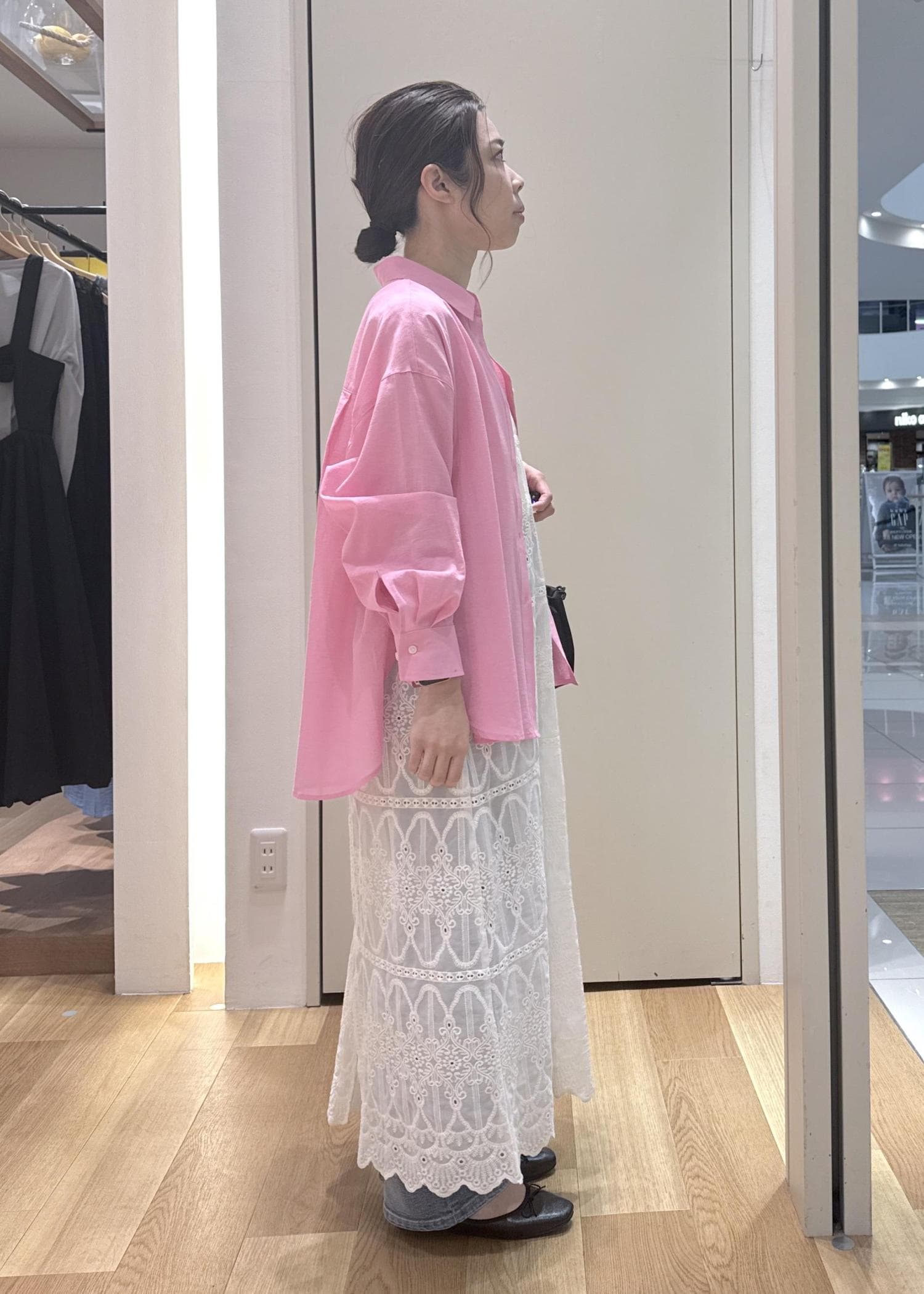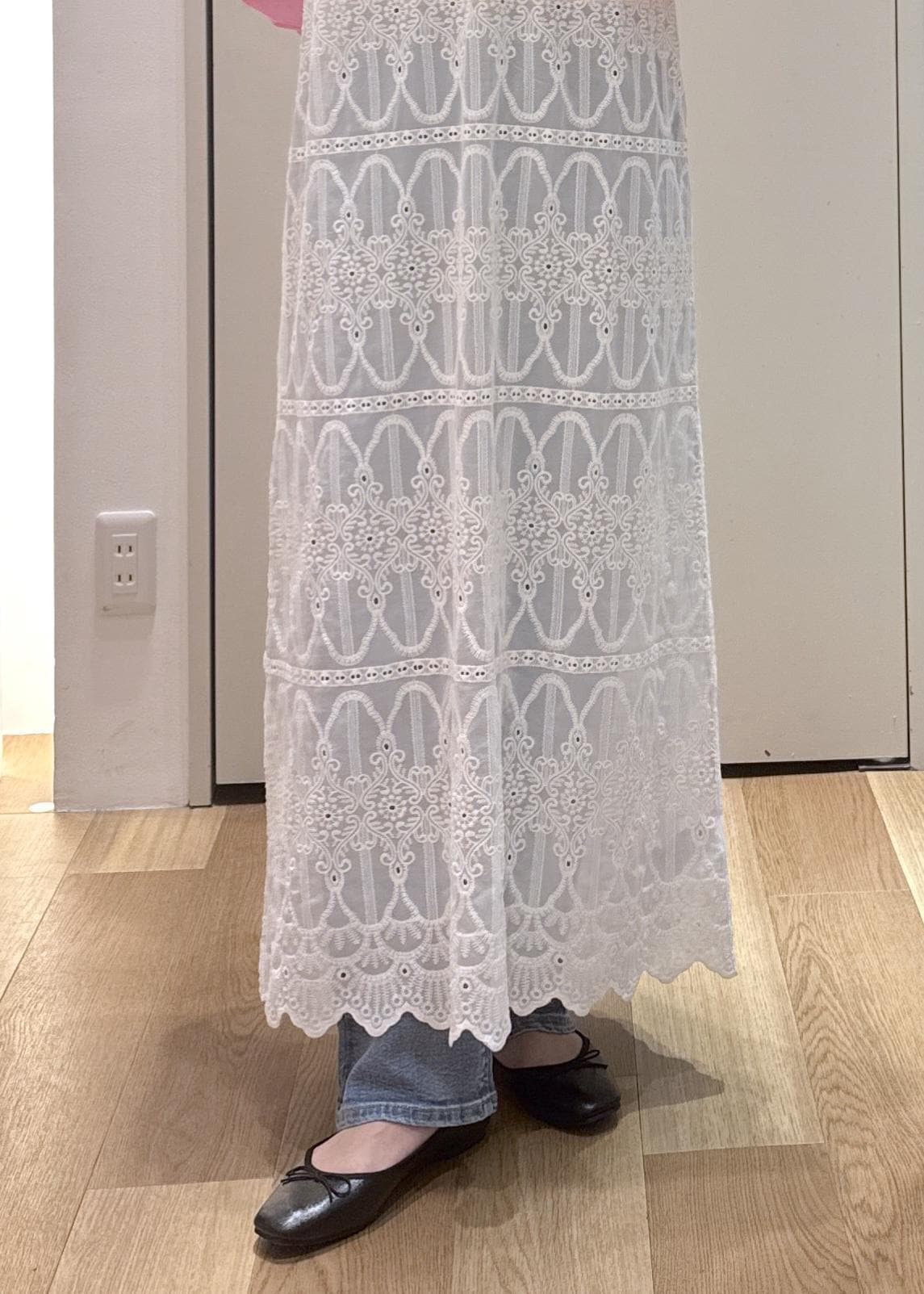 丈はくるぶしより5㎝くらい上で、インナーに着たボトムが少し見えるくらいです。 -