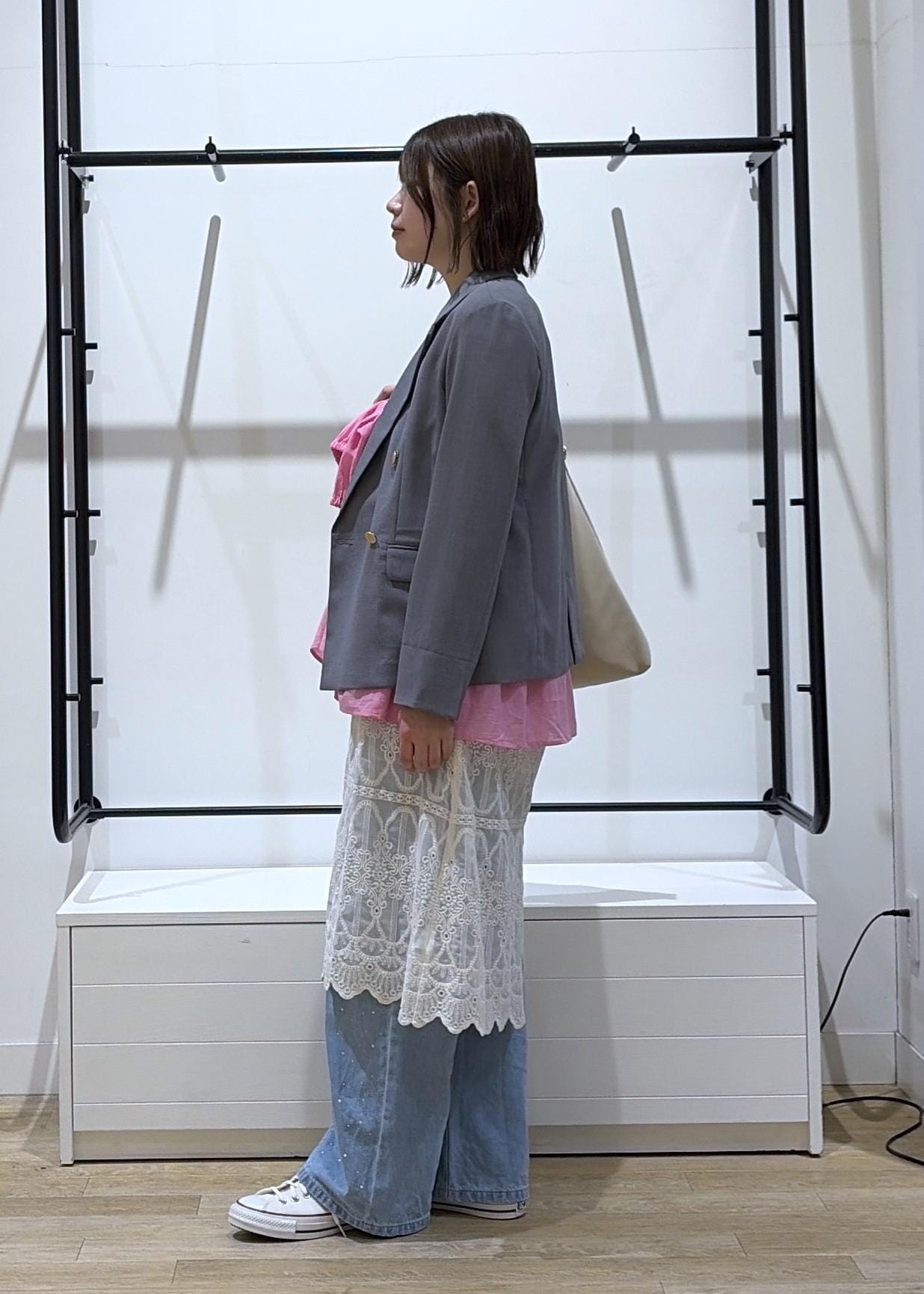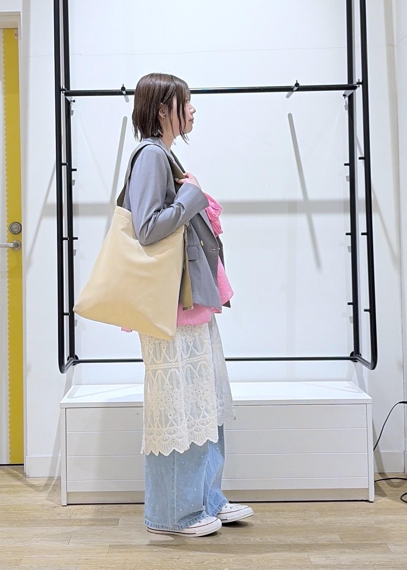 今回は、お花見やピクニックに行くコーディネートを組みました♩ハッキリにとたカラーシャツにはレースやジャケットできちんと感とトレンドを組み込みました◎