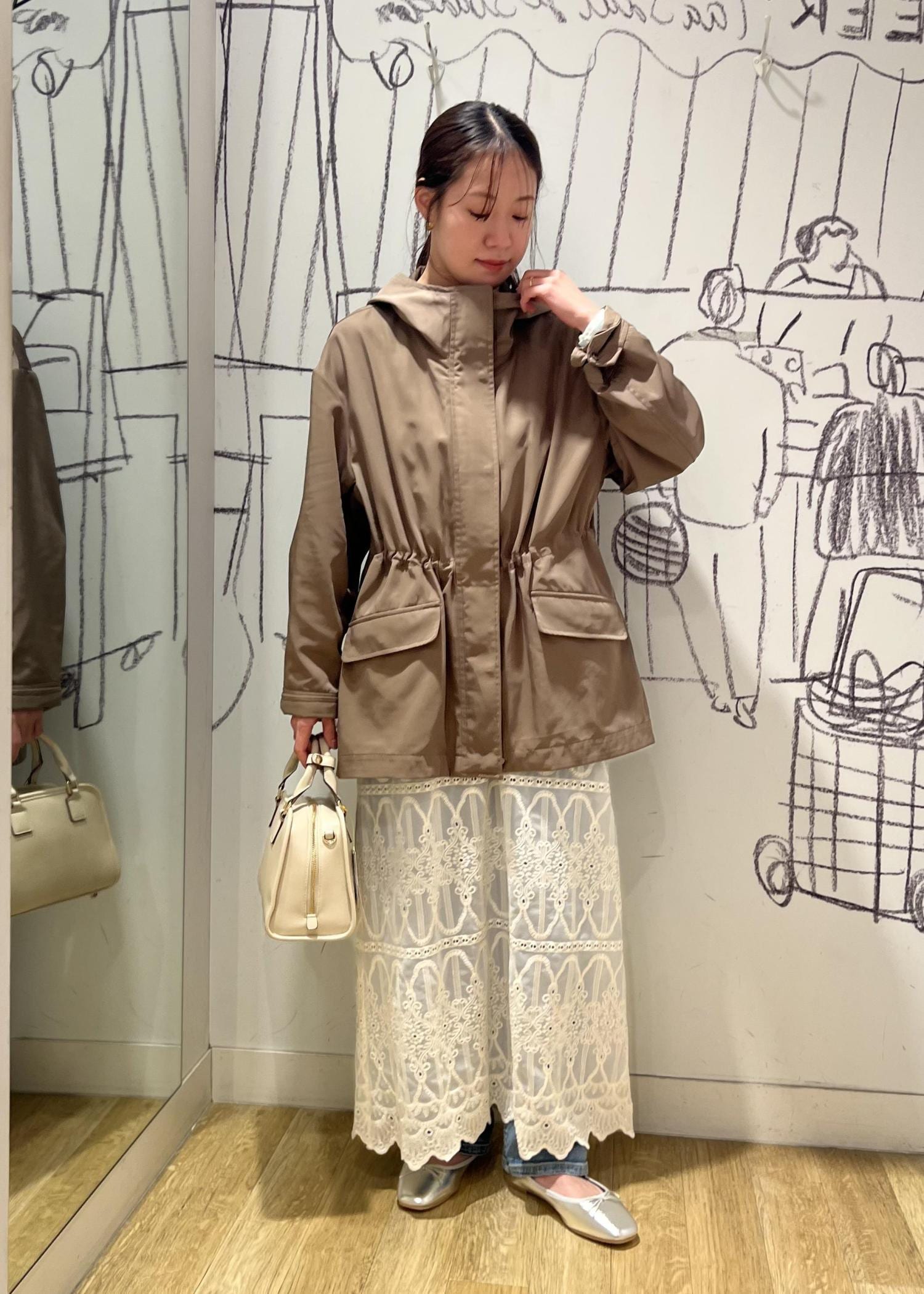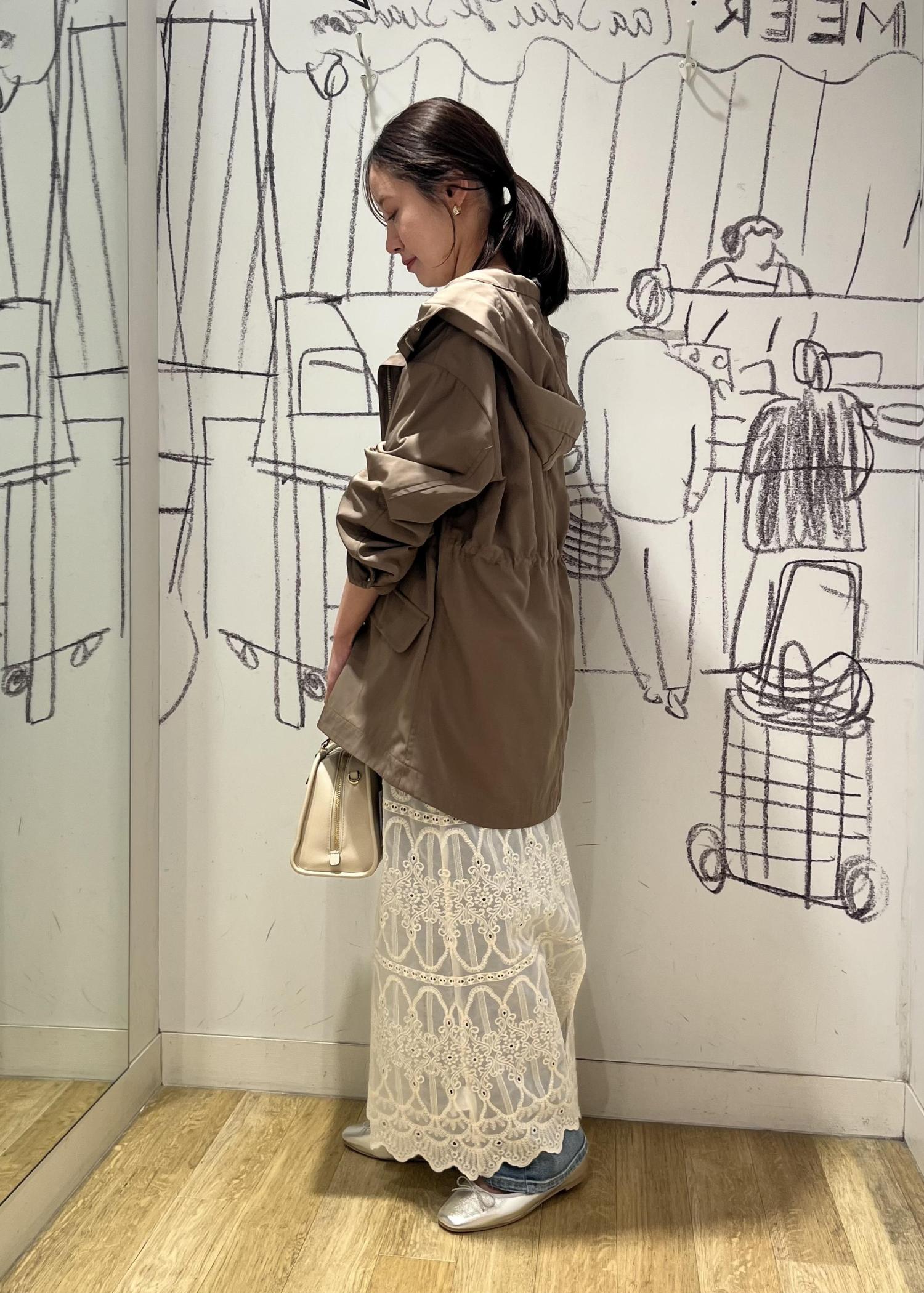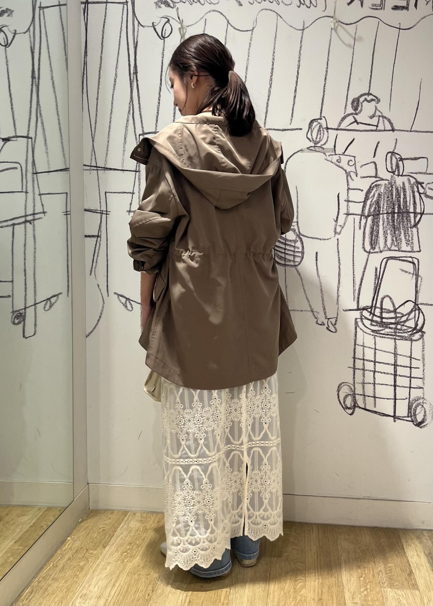 インナーはグリーン、アウターはブラウンで柔らかい印象に!