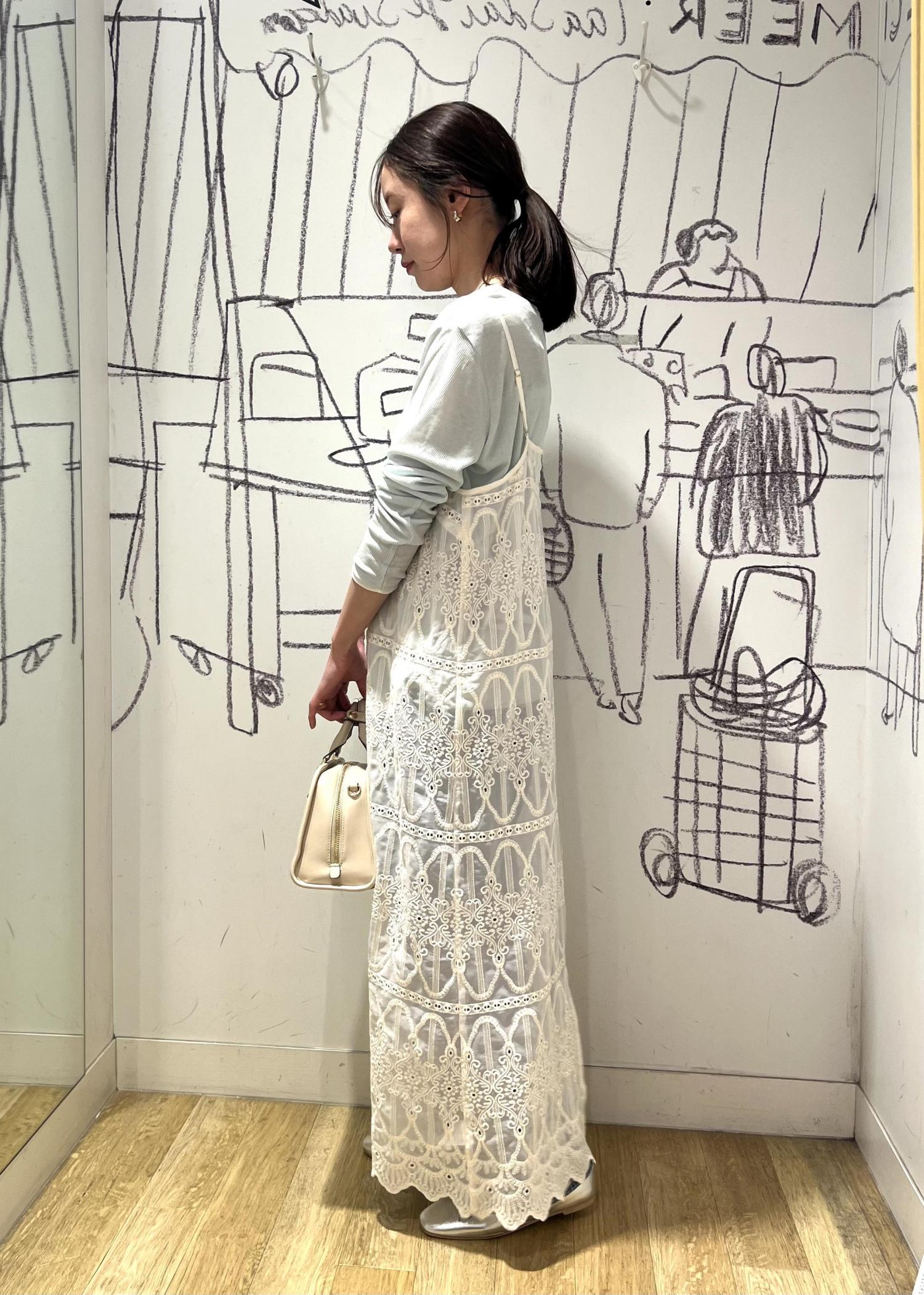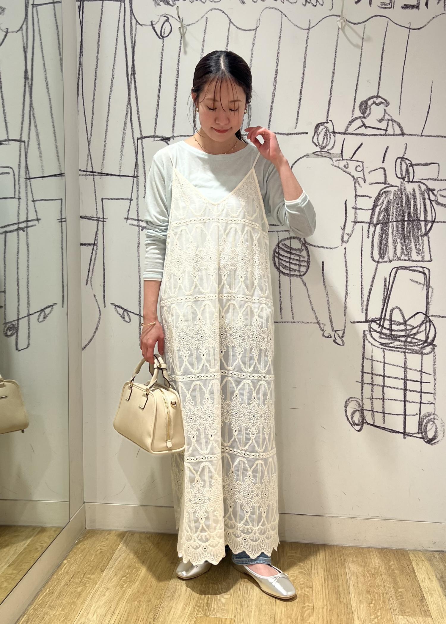 レースキャミワンピを春カラーで仕上げたコーディネートです!
