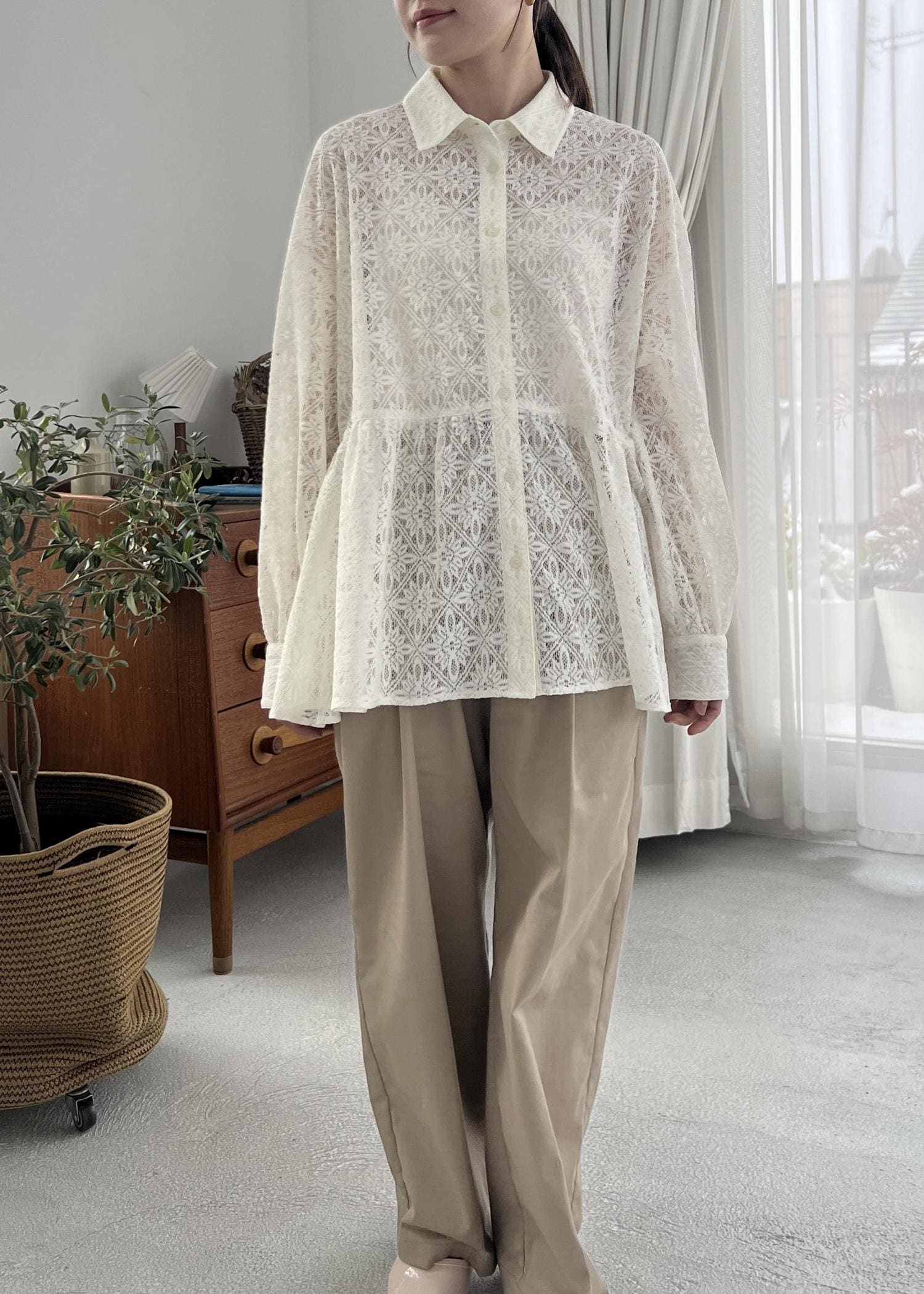 ROPÉ PICNICレースペプラムシャツブラウスキナリ / F¥6,490レビューやわらかいレース素材で、ペプラムのゆったりしたシルエットです。