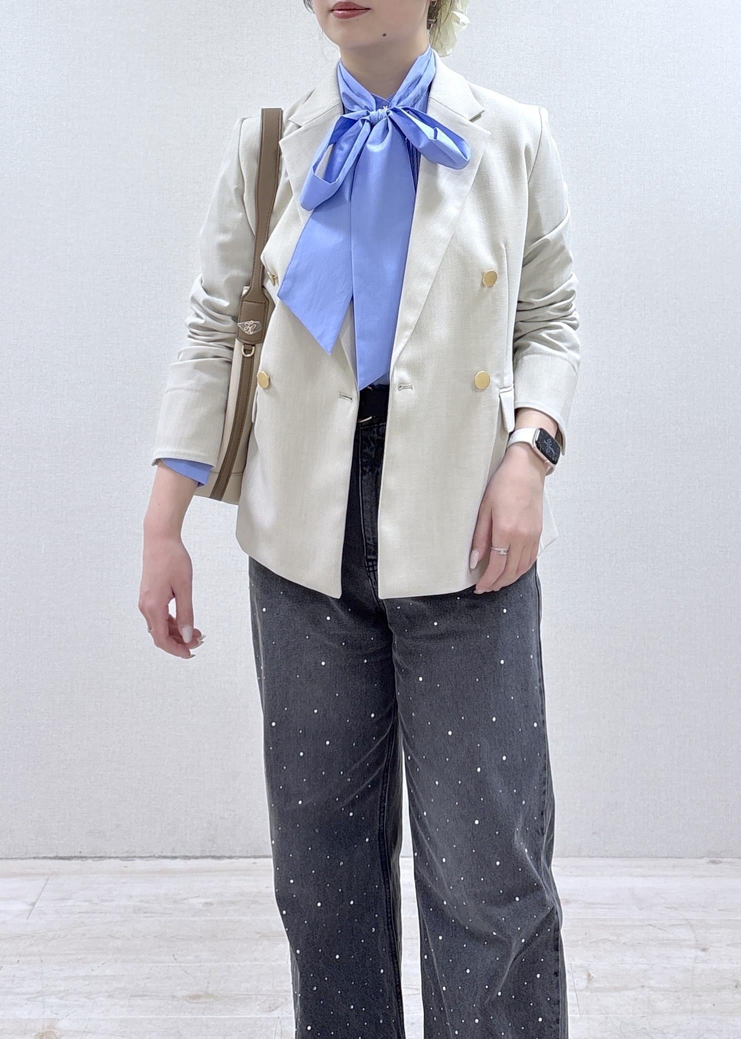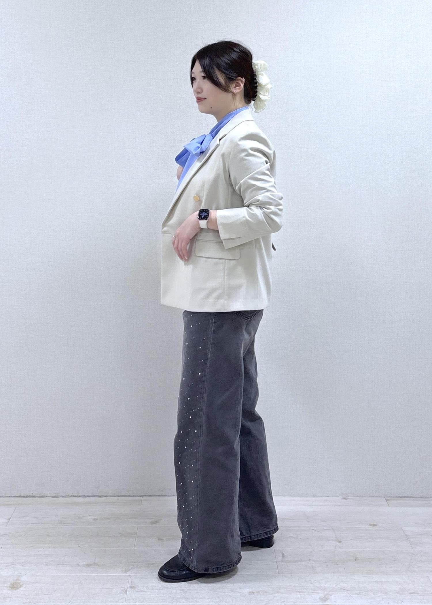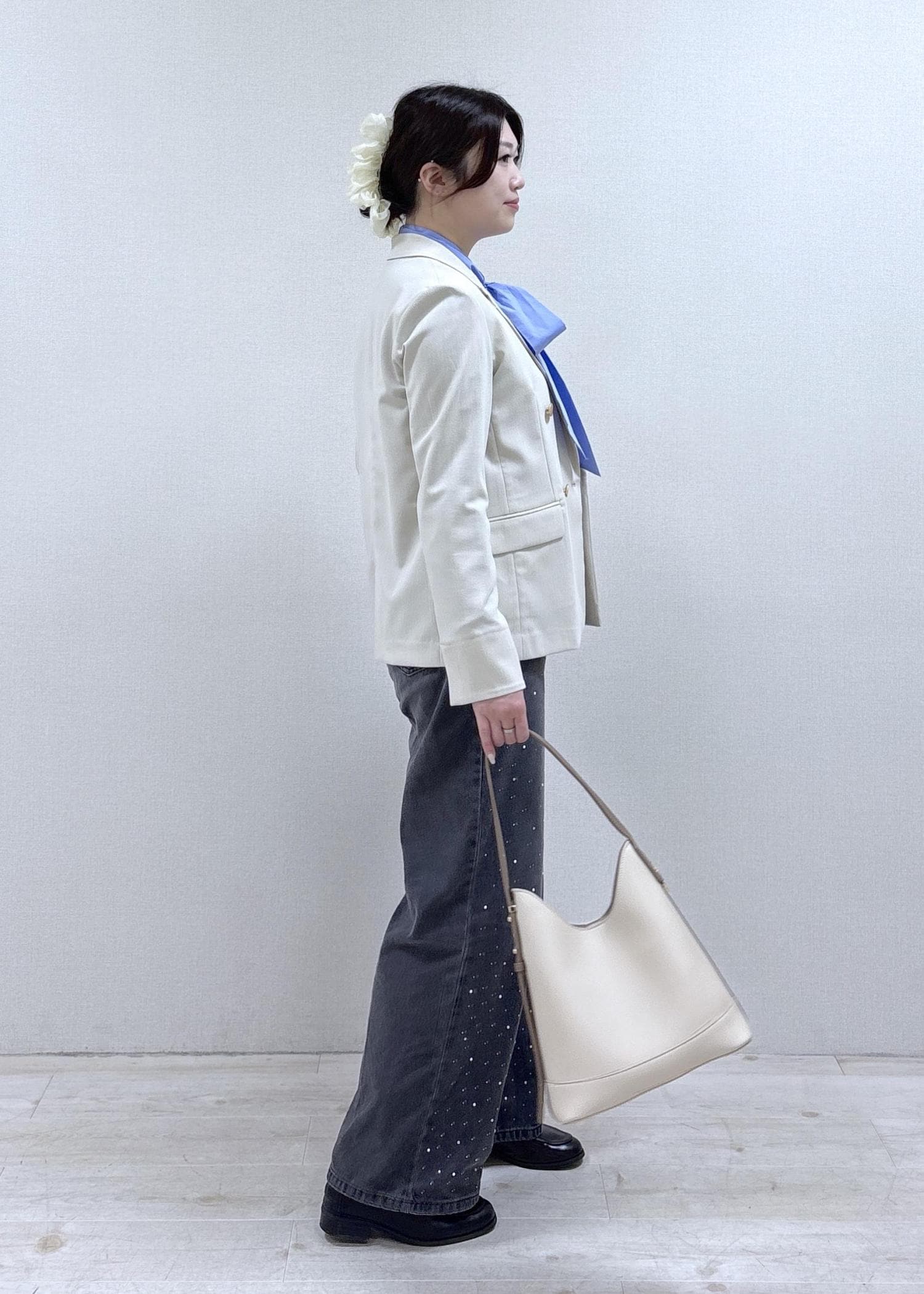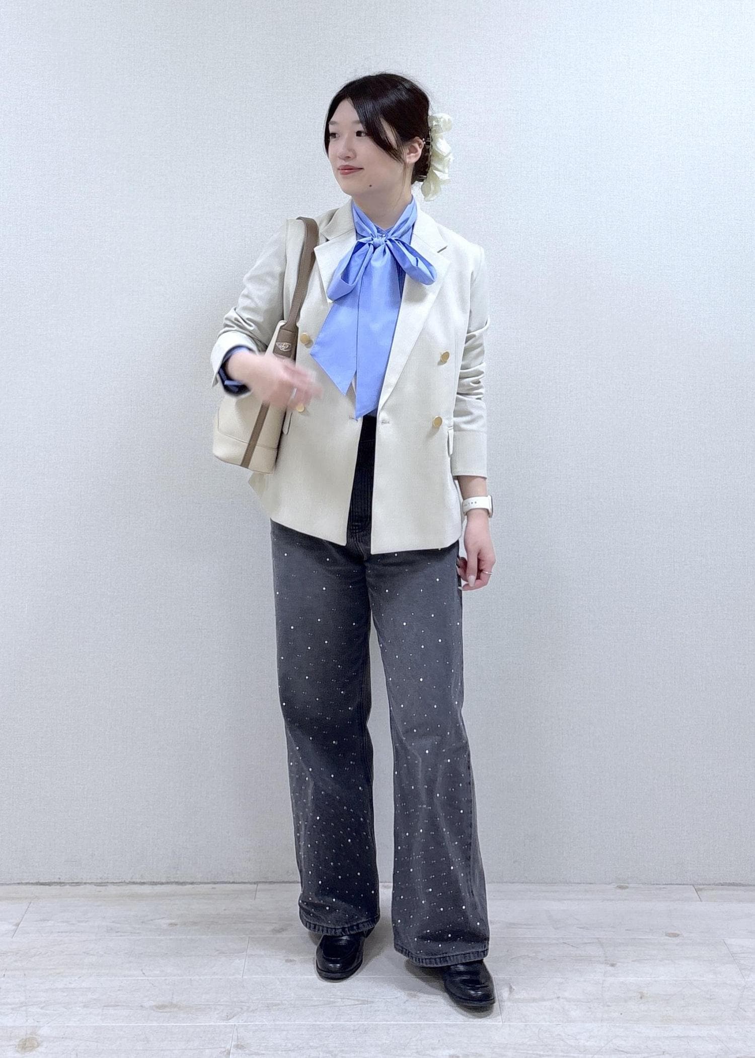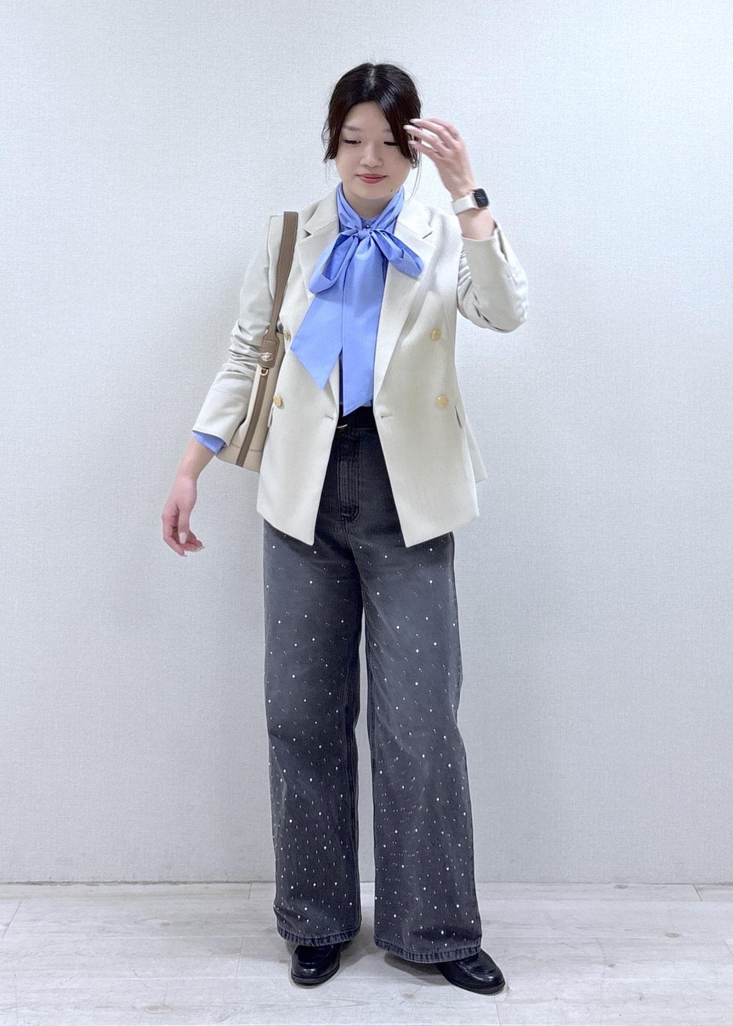 ビジューデニムはトレンド感あり、いつものコーデをより華やかに見せてくれます♪