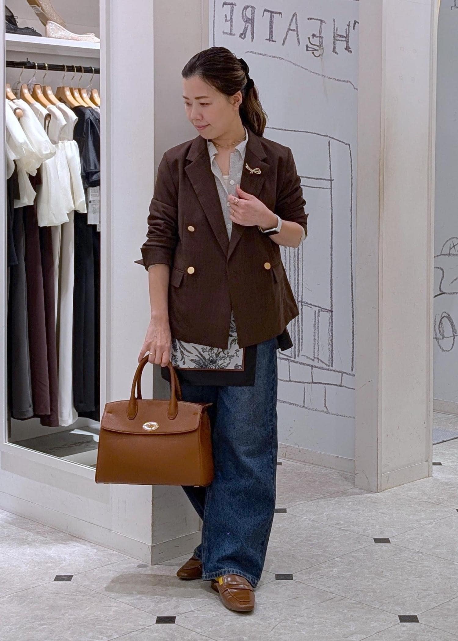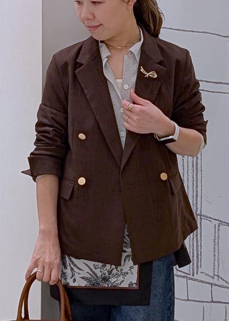 デニム×ジャケットの定番コーディネートですが、今年はブラウンのジャケットでオシャレに♪