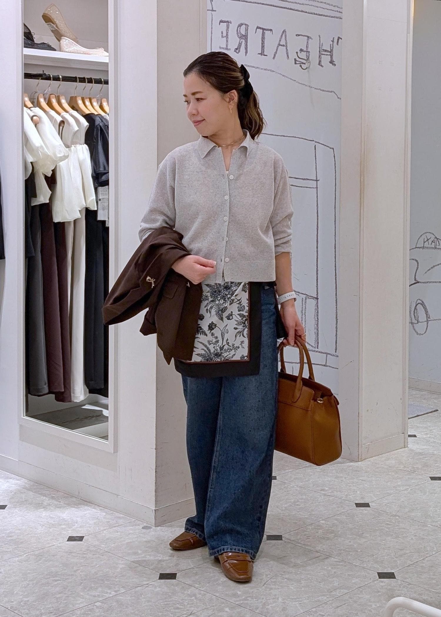 小物もブラウンでまとめることで統一感のあるスタイリングになりますよ♪