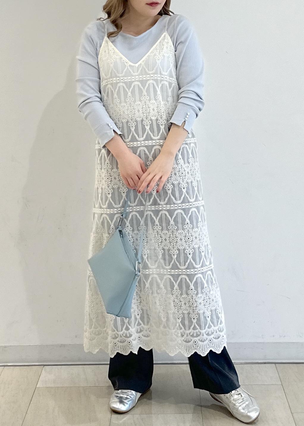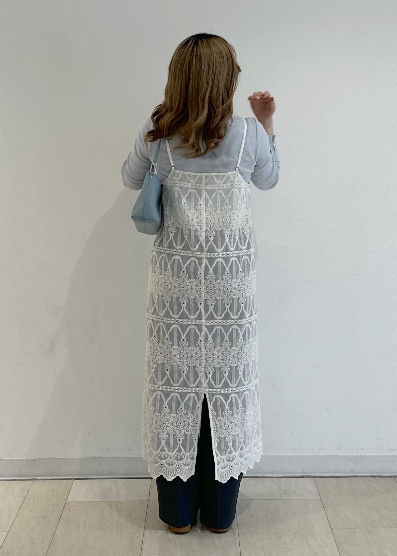 ROPÉ PICNICレースキャミワンピースオフホワイト / F¥6,996レビュー長方形の大きな刺繍がアクセントになるレースのキャミワンピです!