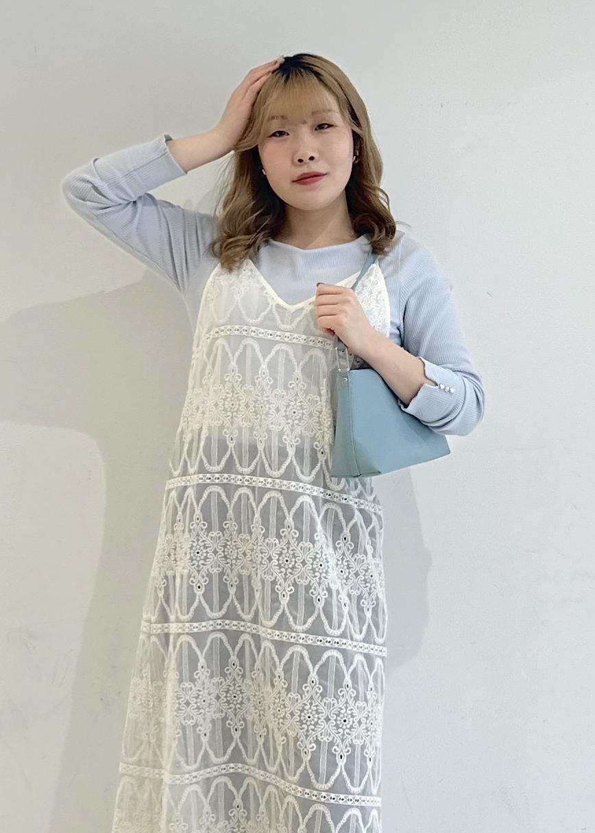 インナーとバックの色を合わせて水色にしているので春の気分を先取りできるコーデになってます!