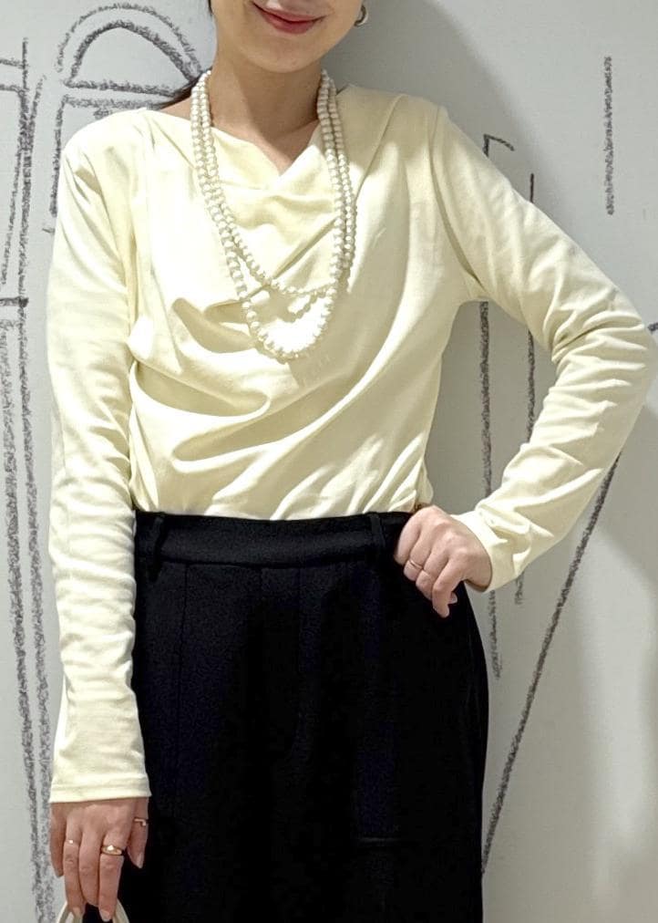 ROPÉ PICNICドレープカットトップスクリーム / F¥3,993レビュードレープが自然で着るだけで映えます!ストレッチの効いたカットソー生地で動きやすさも申し分なし。程よい厚みもありインナーも響きにくいので一枚着にもお勧めです♪