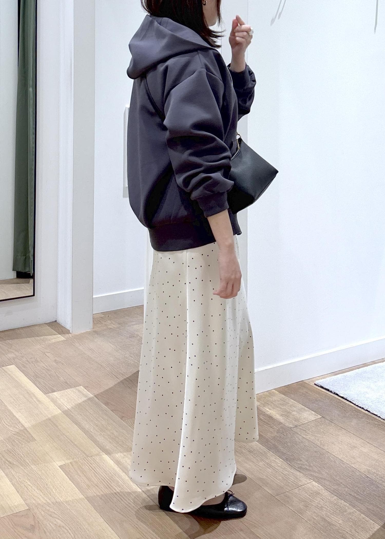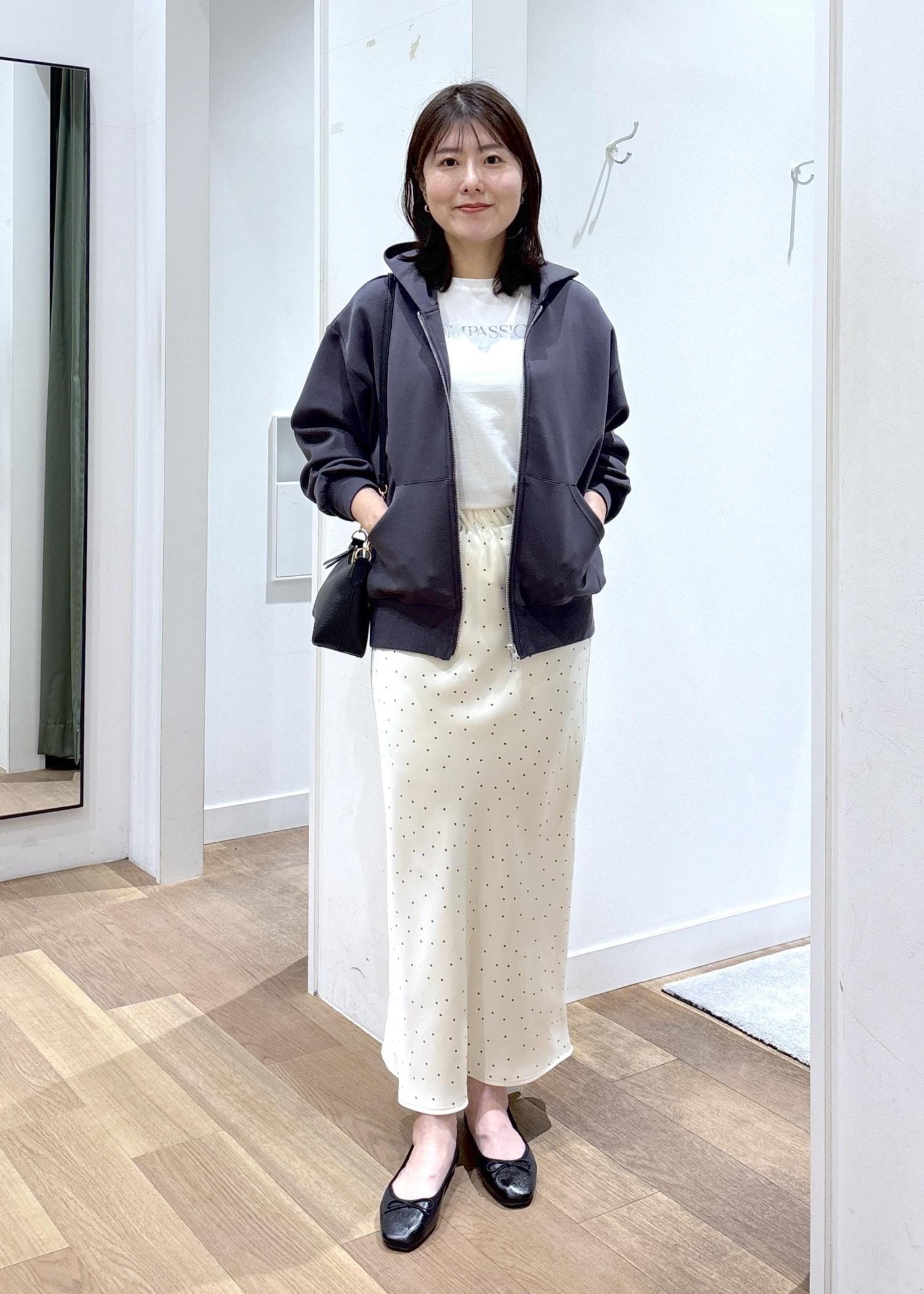 ROPÉ PICNIC細見えバイアスサテンドットスカートキナリ系 / F¥6,490レビュータイトすぎないアイラインとウエストゴムで、履き心地が楽で足さばきも◎です。腰が張っている為腰回りはフィット感がありました。162㎝で足首くらいの長さでした。