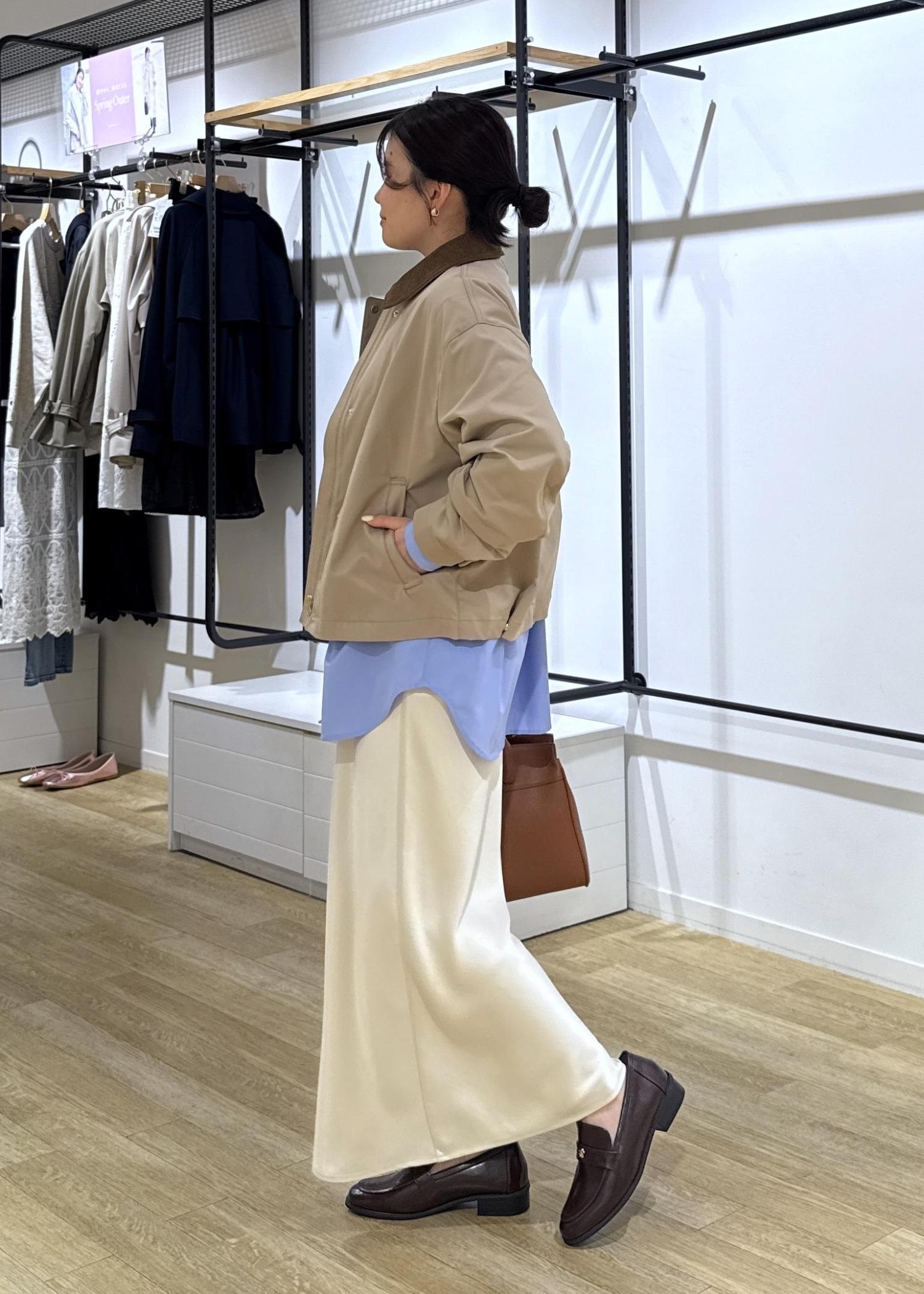 程よいハリ感のある素材と裏地がない生地感なので春秋に使いやすいです。