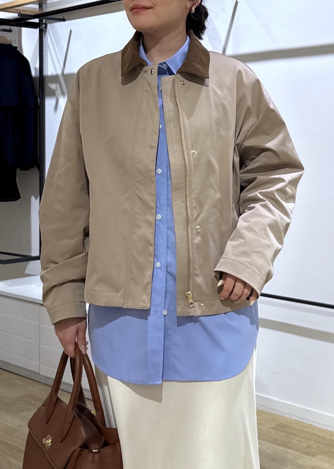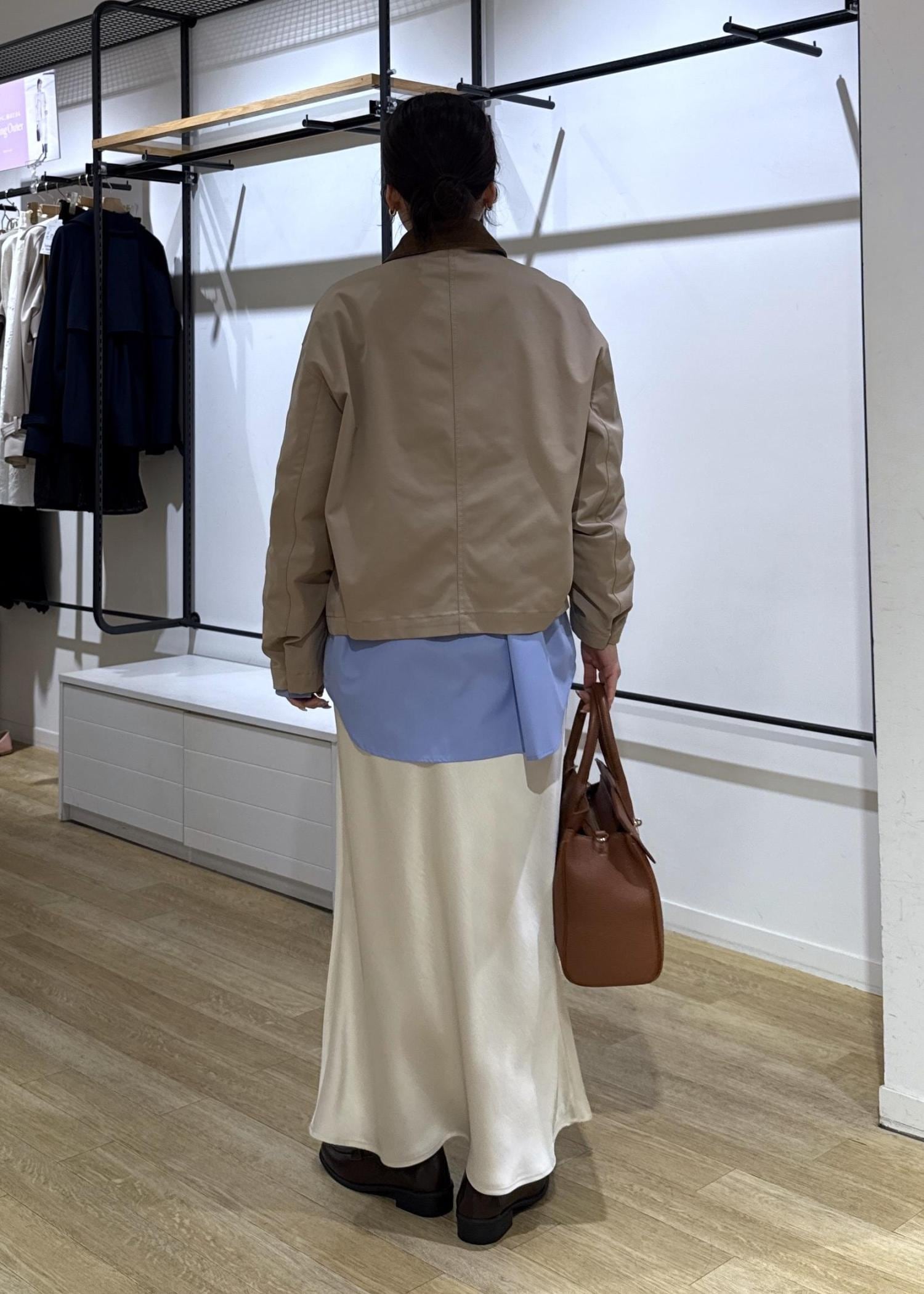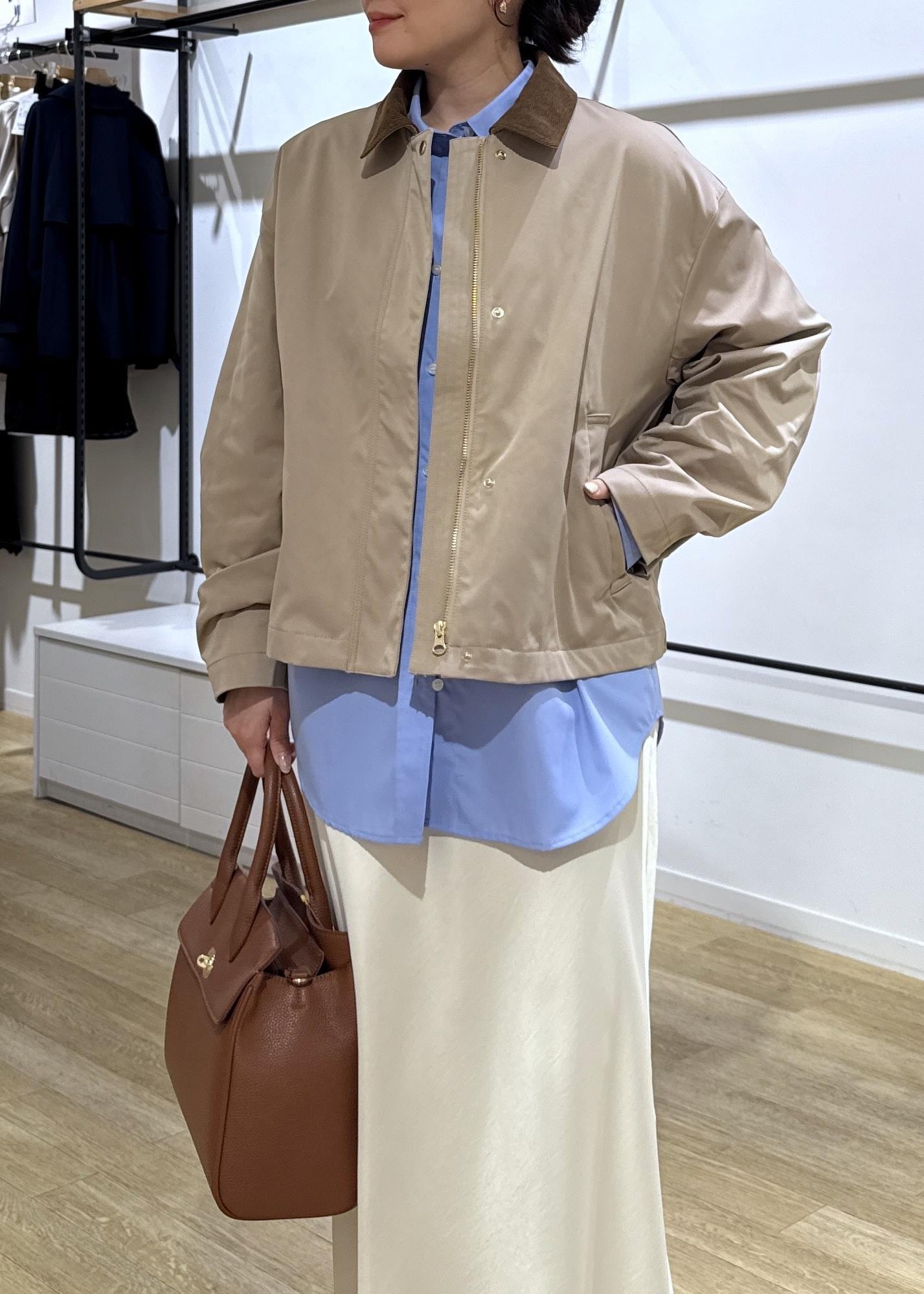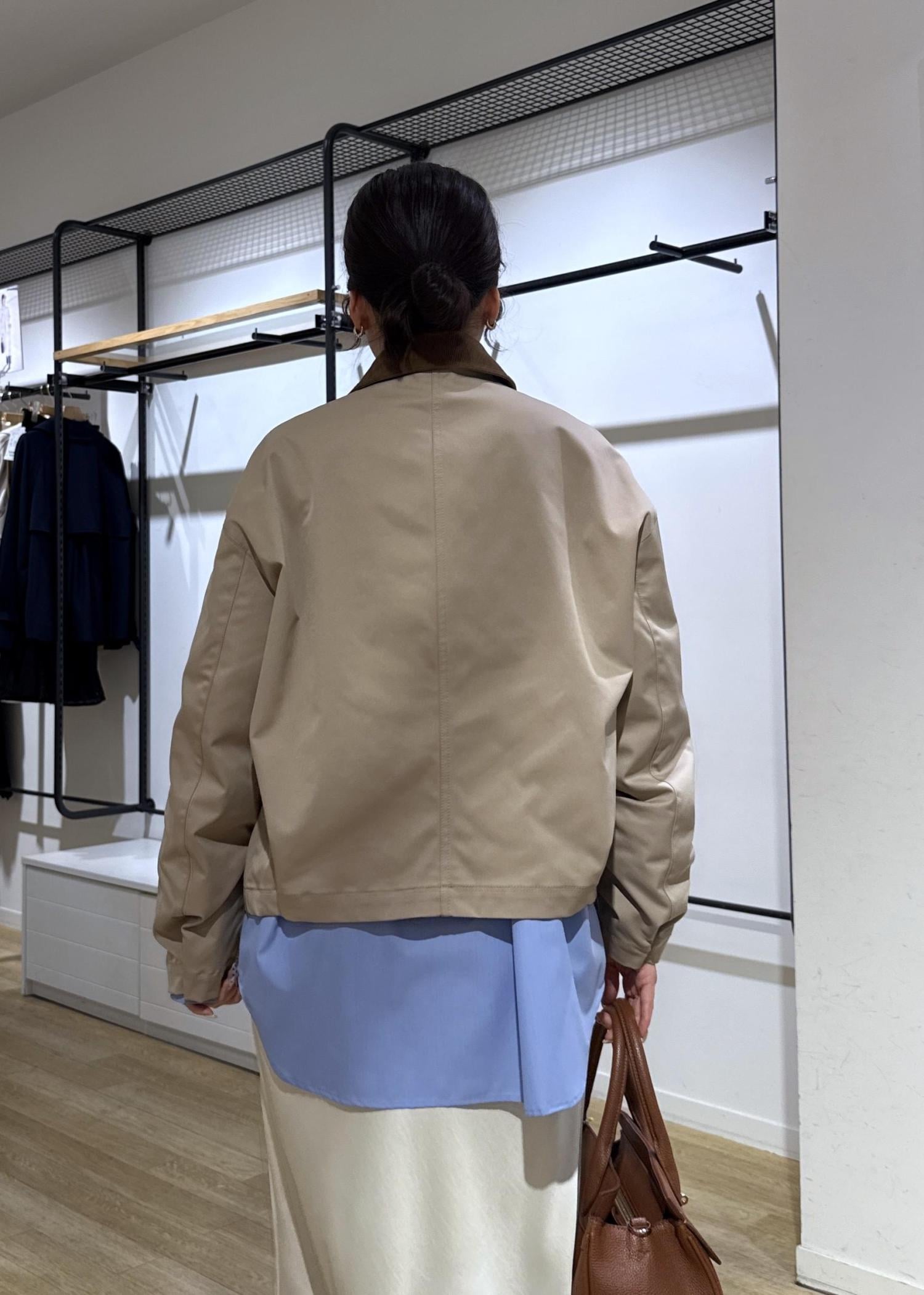 コーデュロイの襟との異素材カラーがトレンド感があり、コンパクトな着丈なので、いろんなボトムスとも合わせやすいです。 -