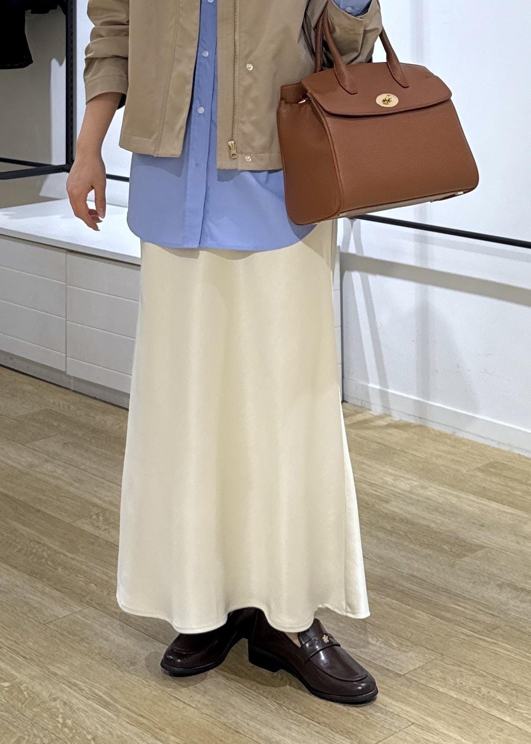 きれいめなスカートとバッグを合わせて