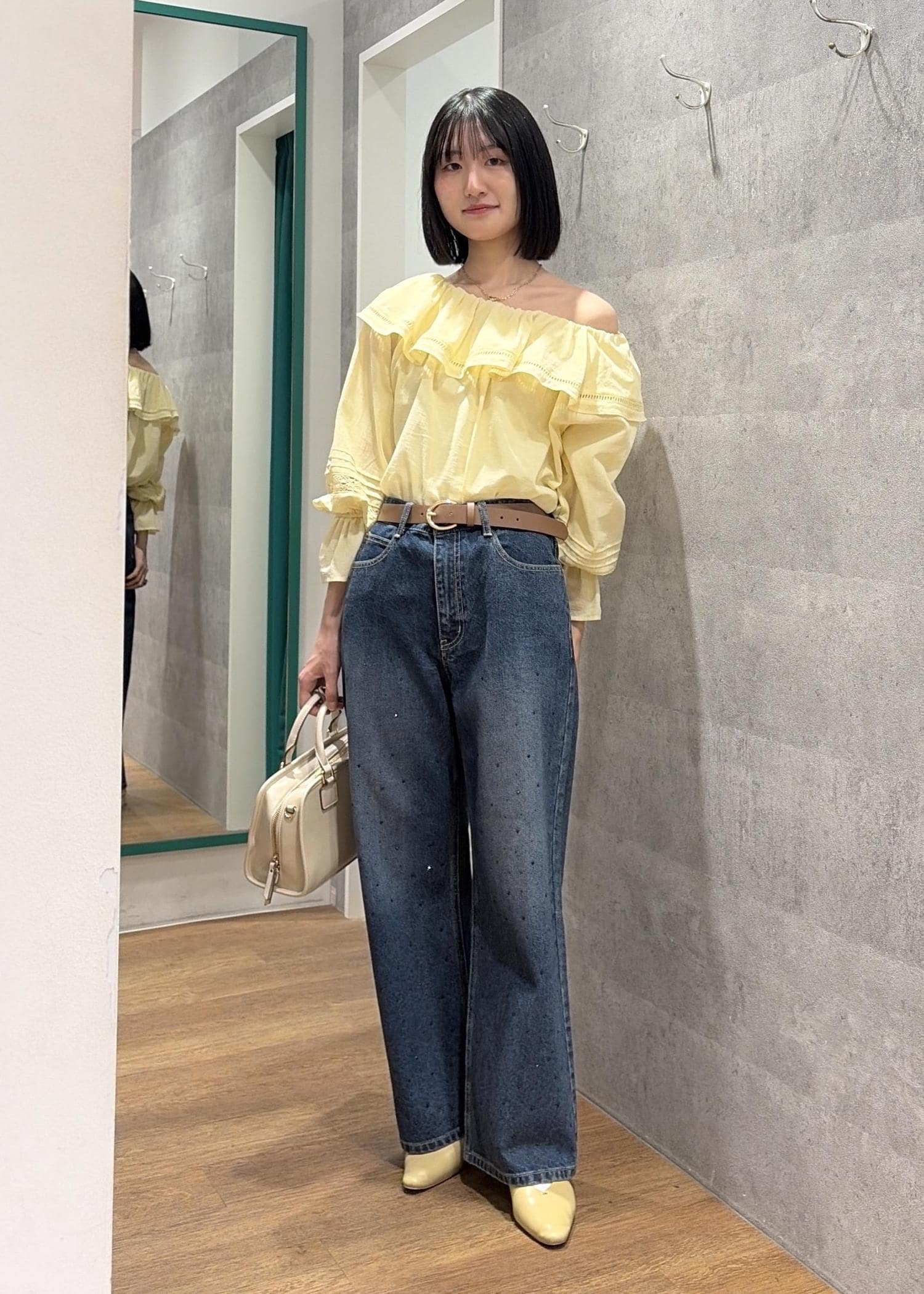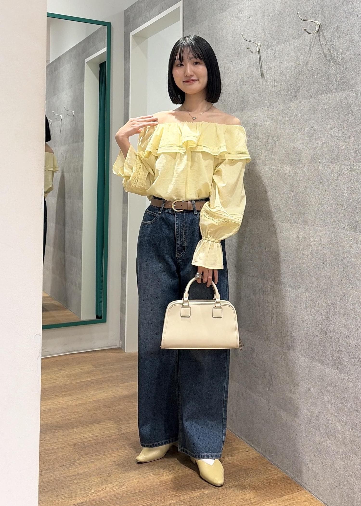 予約ROPÉ PICNICお着軽シャツシリーズ コットンボイルレース使いオフショルブラウス/接触冷感・通気性イエロー / F¥5,995レビューオフショルにもなるフリルブラウス。