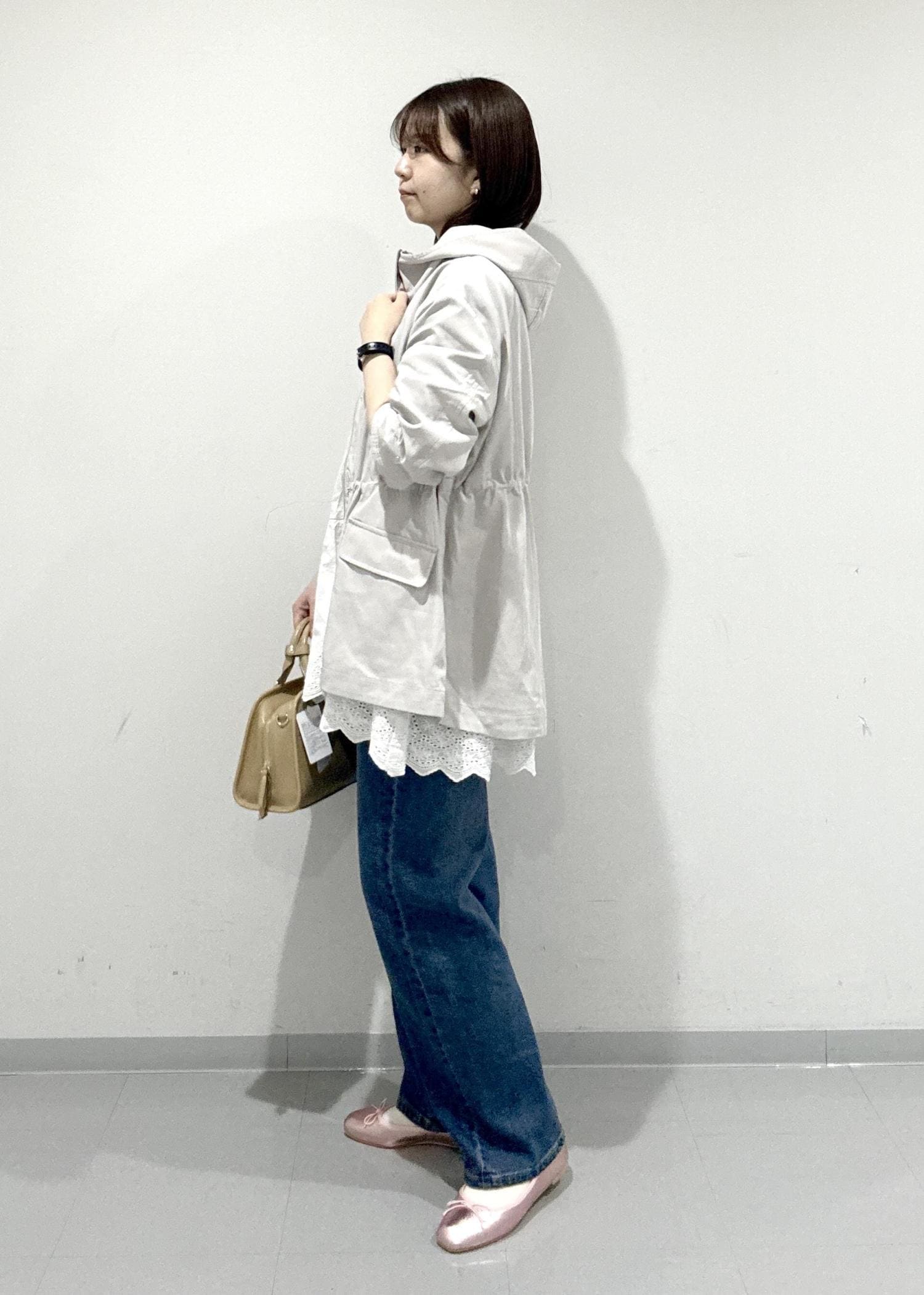 ピンクのバレエシューズで春らしさも意識しました。