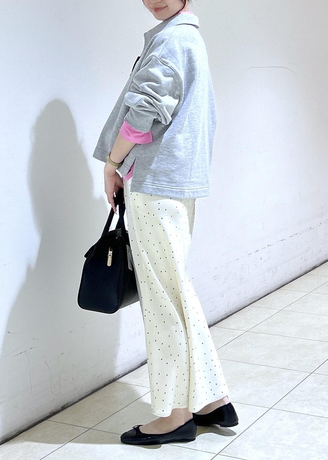 ピンク×グレーで春らしさを取り入れたお出かけスタイリングにしました。