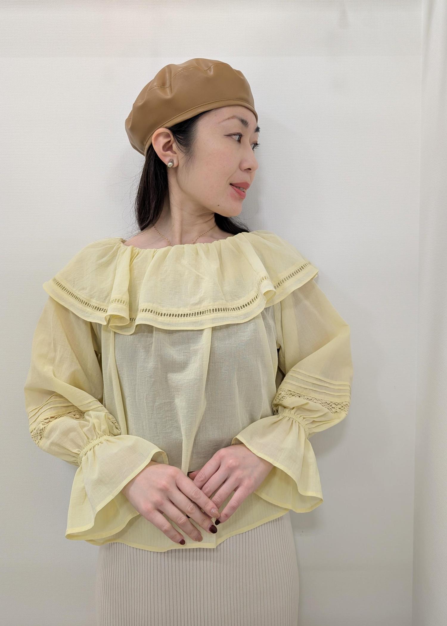 ROPÉ PICNICお着軽シャツシリーズ コットンボイルレース使いオフショルブラウス/接触冷感・通気性イエロー / F¥5,995レビューアームホール、身幅ともにゆったりめです。