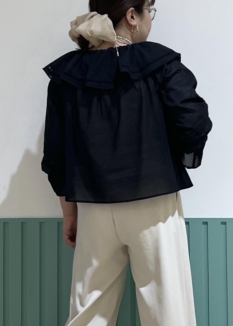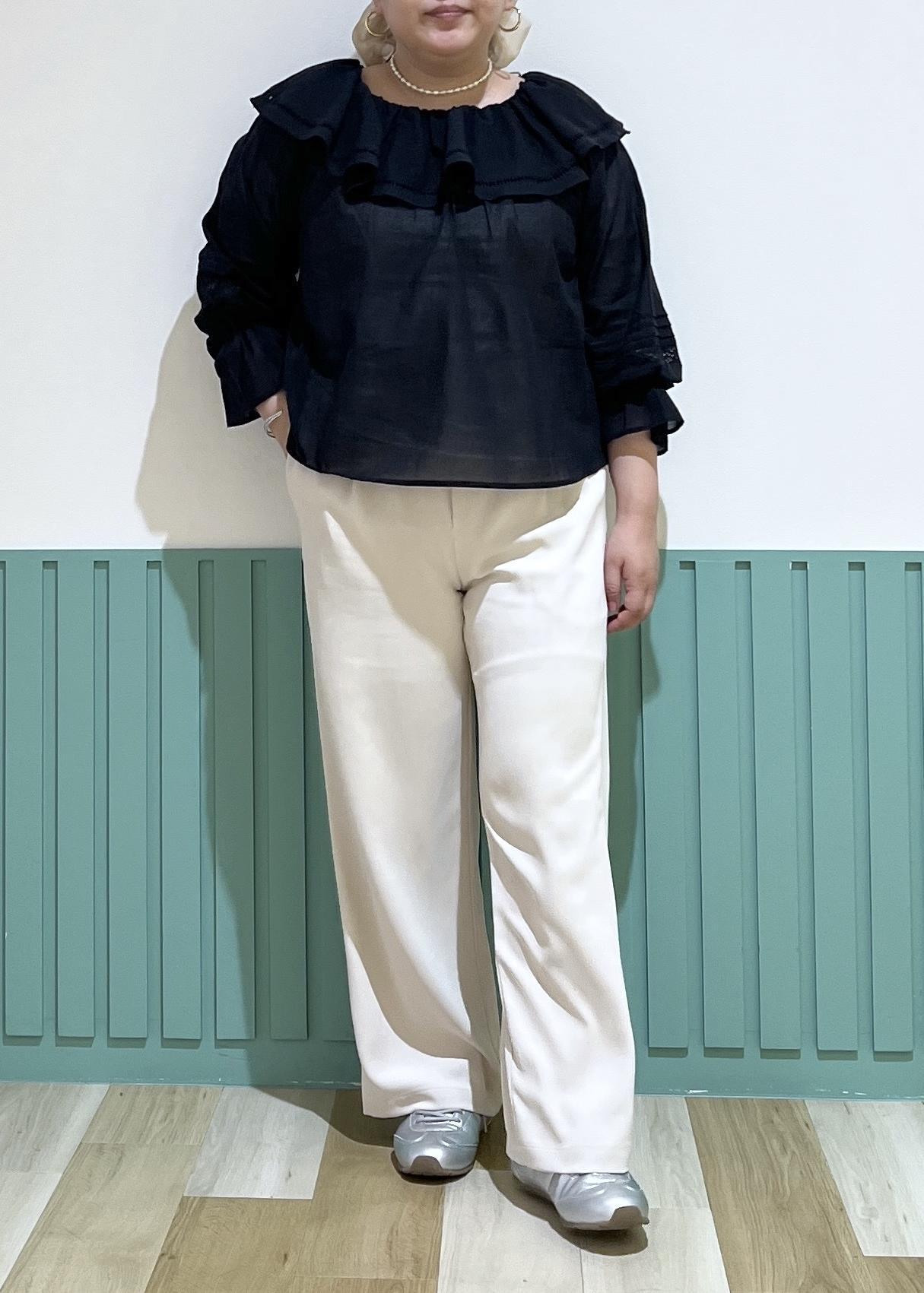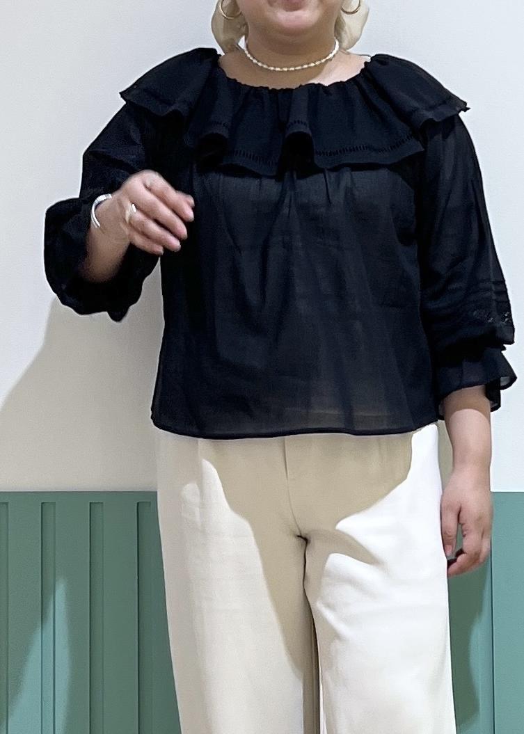 フェミニンなフリルのブラウスを