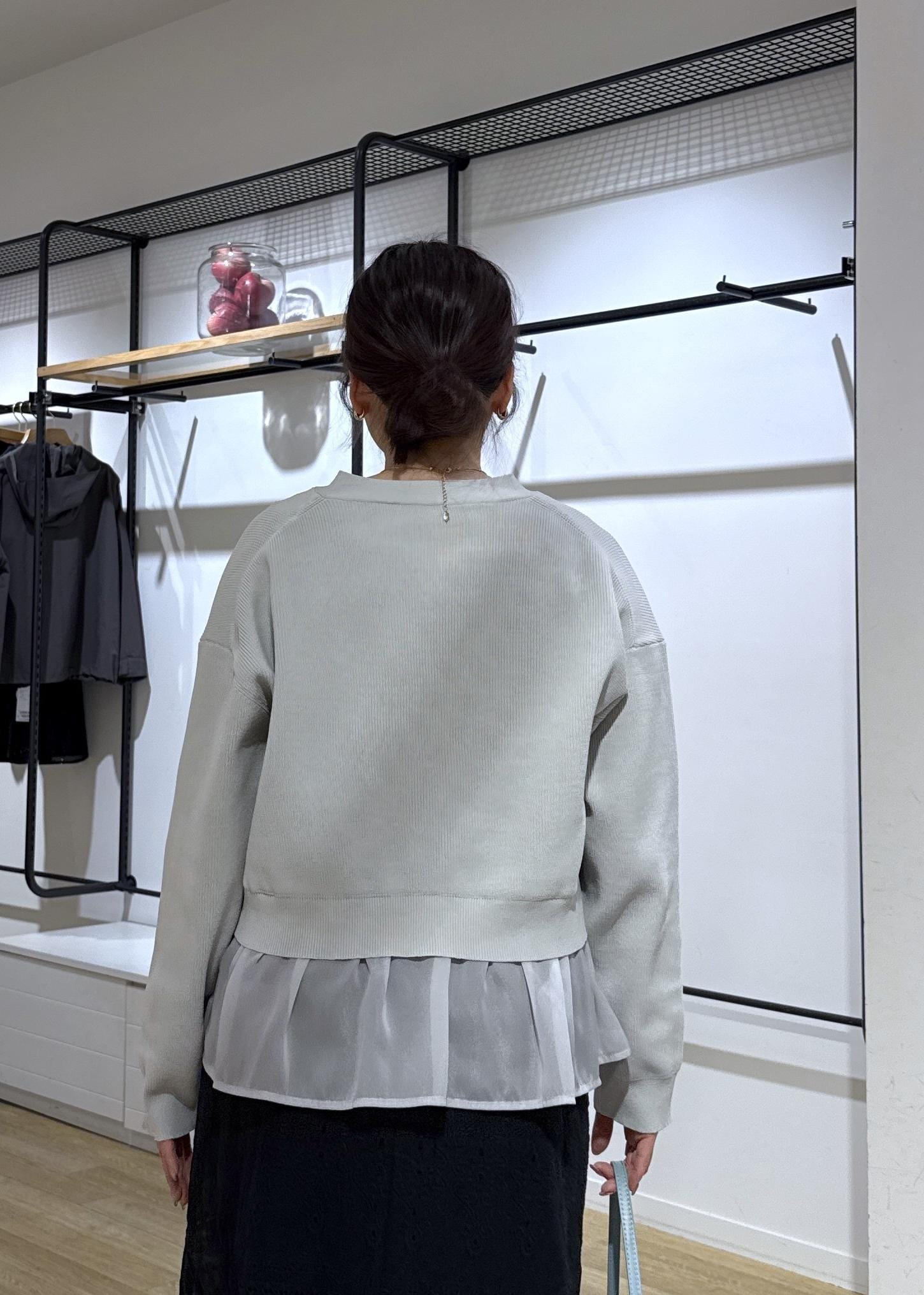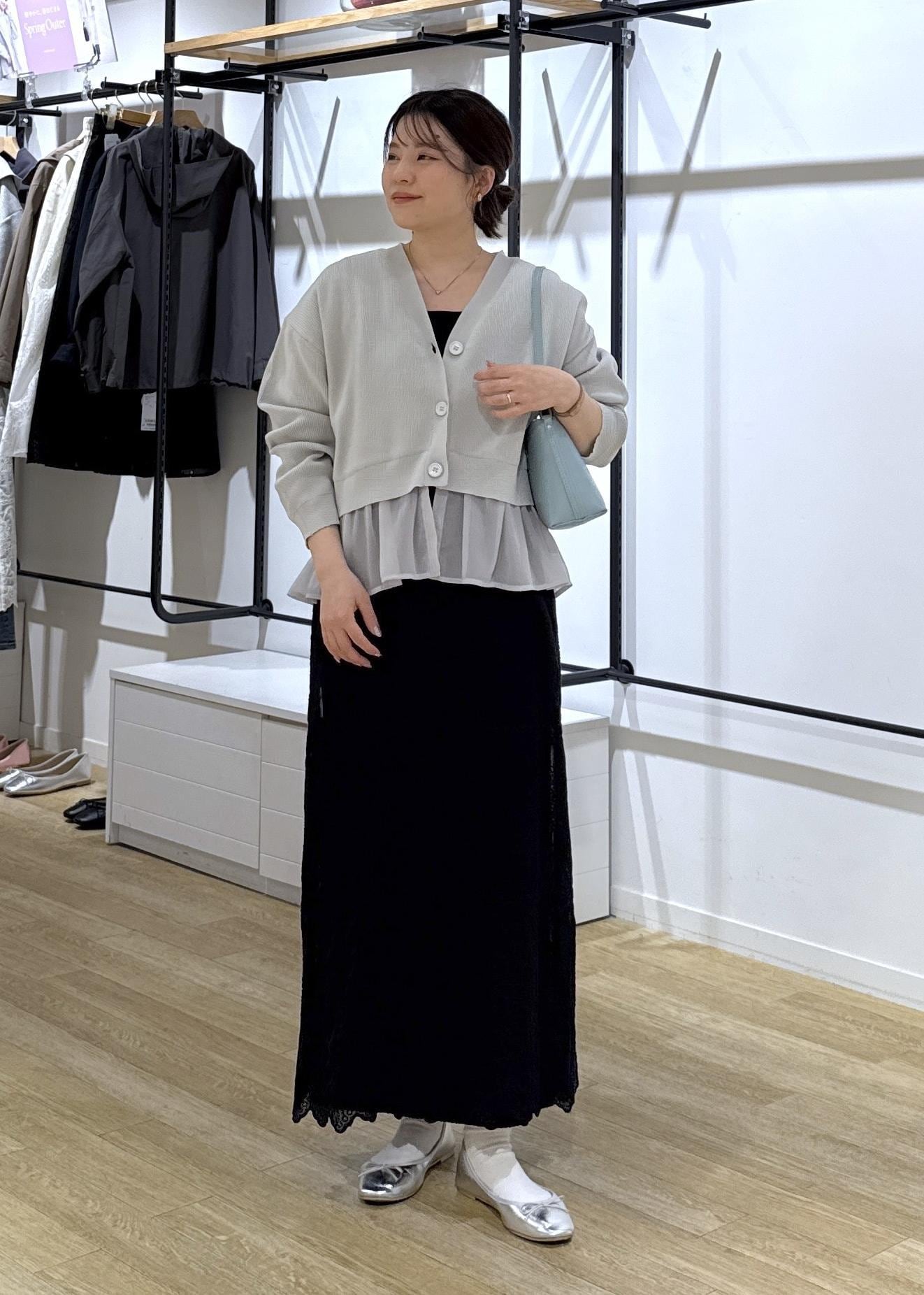 着丈コンパクトですがシフォン生地のペプラムドッキングデザインなので腰回りも印象は軽くカバーしてくれます◎
